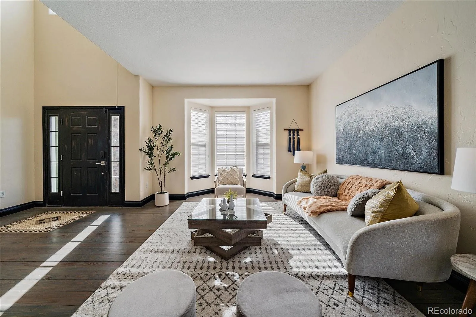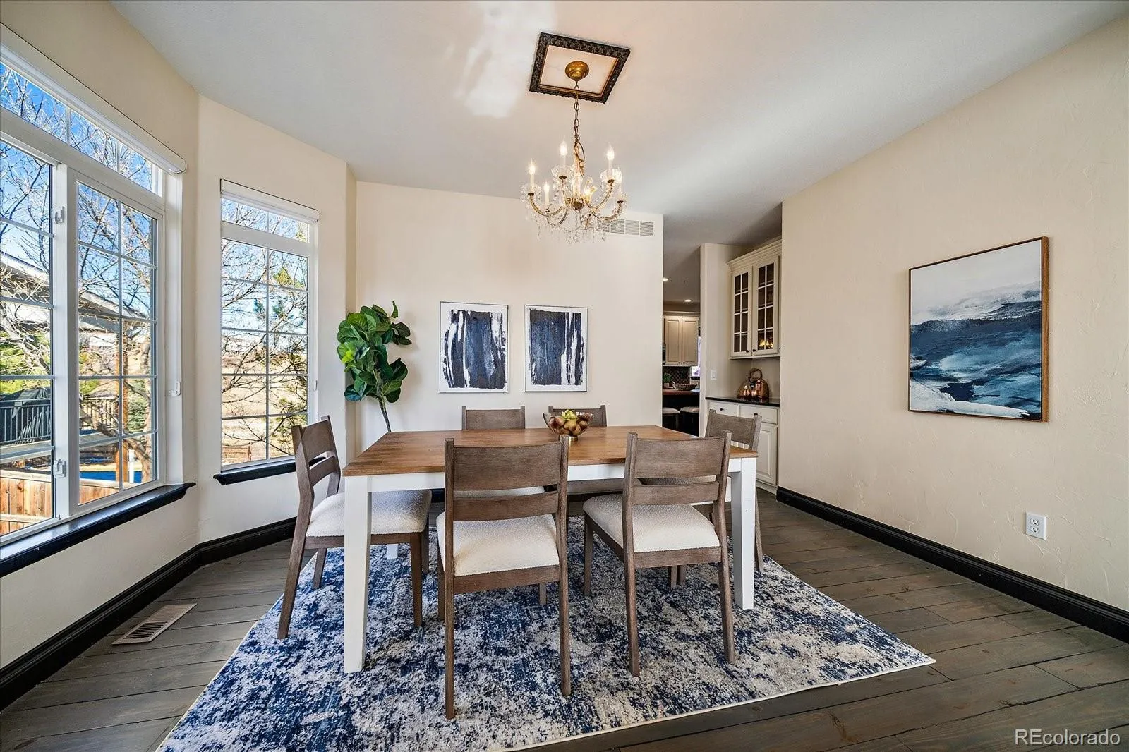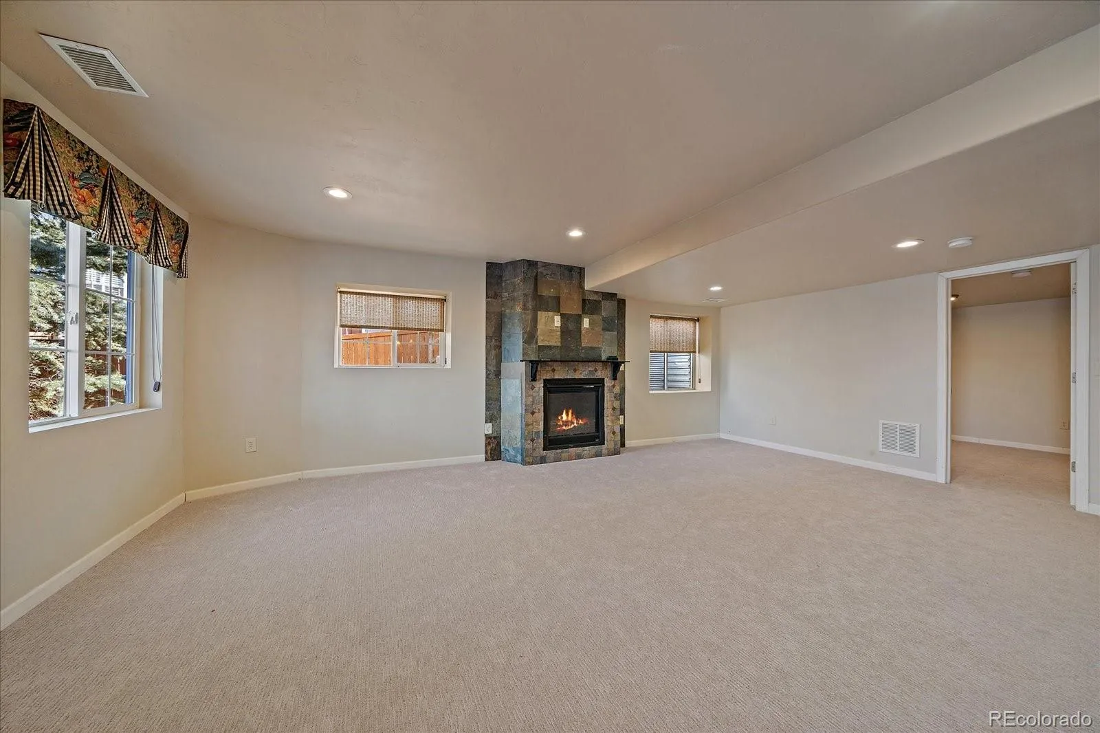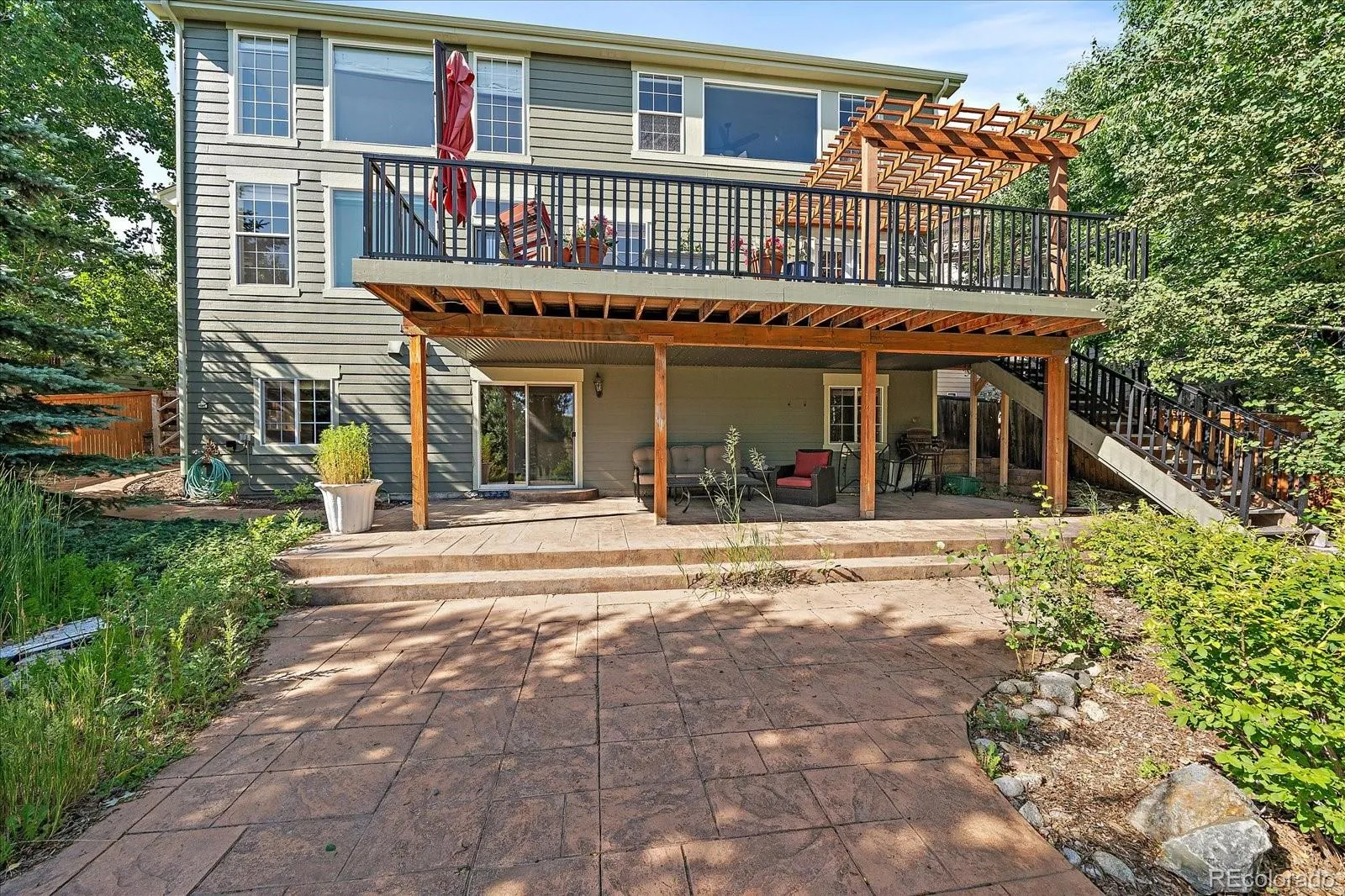 Designed for space, flexibility, and connection to the outdoors, this custom Sapphire Pointe home offers scenic open space views and multiple areas to gather or unwind. Recent updates include a new roof and updated 5-inch trim, while custom skip-trowel wall texture throughout adds warmth and character. The welcoming entry features a vaulted ceiling, travertine tile inlay, and a dramatic spiral staircase that sets the tone for the home’s thoughtful design. A traditional floor plan offers formal living and dining rooms filled with natural light, along with a private study behind French doors—ideal for working from home or creative pursuits. The vaulted family room is anchored by a grand fireplace and expansive windows that frame the open space beyond. At the heart of the home, the kitchen is designed for both function and entertaining, featuring granite countertops, a butcher block island, gas cooktop, double ovens, and generous cabinetry. The casual eating area includes built-in cabinetry and desk space and opens to an oversized deck with pergola—perfect for outdoor dining and summer gatherings overlooking open space. The upper level is highlighted by a spacious primary suite overlooking open space, complete with a sitting area, three-sided fireplace, and a well-appointed five-piece bath with granite counters and inlaid travertine tile flooring. A large walk-in closet with center island adds to the suite’s comfort. Three additional bedrooms complete the upper level, including one with an ensuite bath and two connected by a shared bathroom. The fully finished walk-out basement adds exceptional versatility, offering a second kitchen, family room with fireplace, bedroom with sink, laundry hookups, and flexible living areas well-suited for multiple living situations or extended guest stays. With new carpet, fresh paint, and open space views, this home offers a distinctive opportunity in a desirable Castle Rock setting.