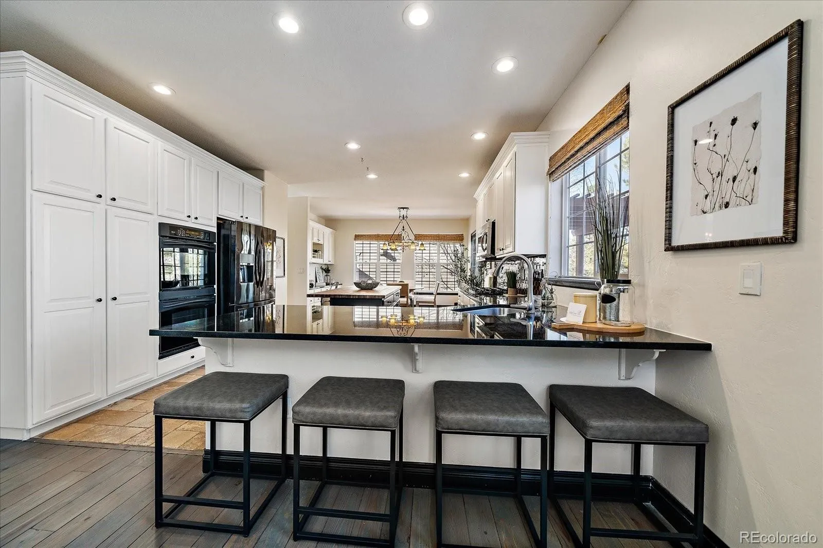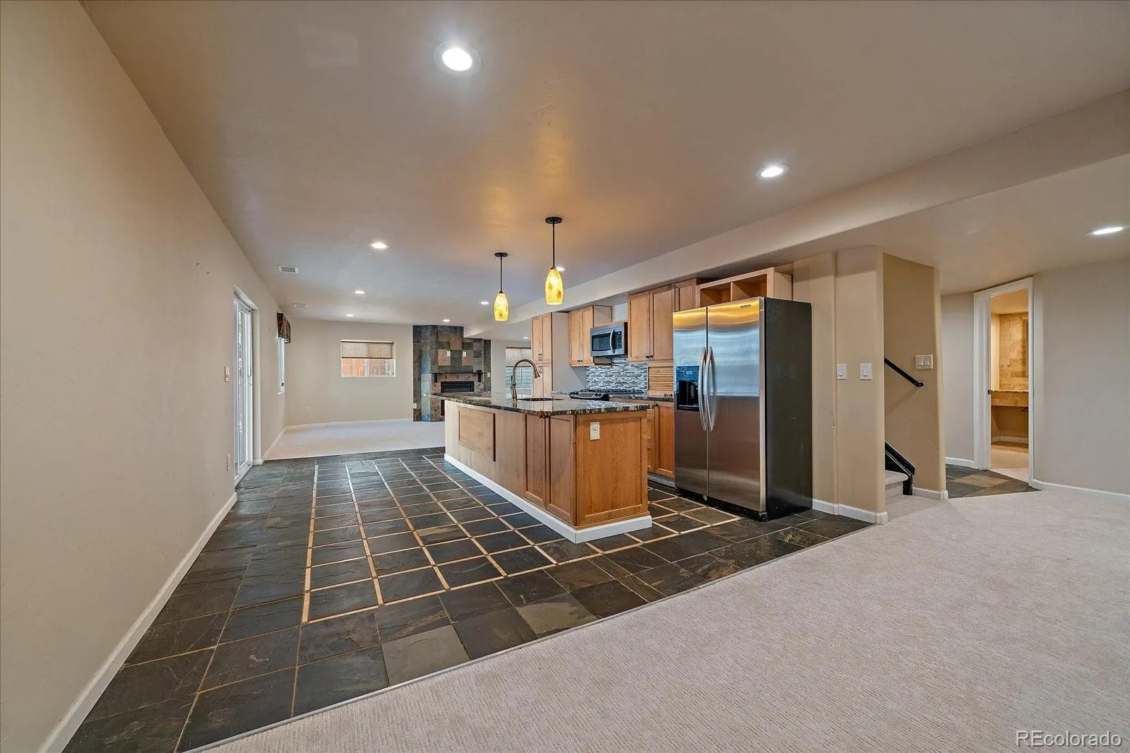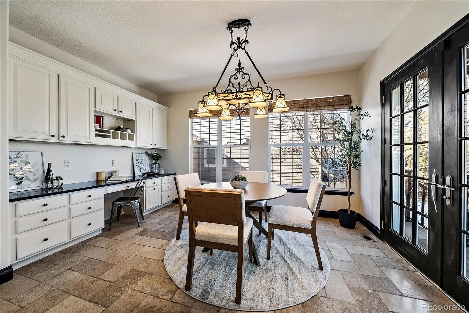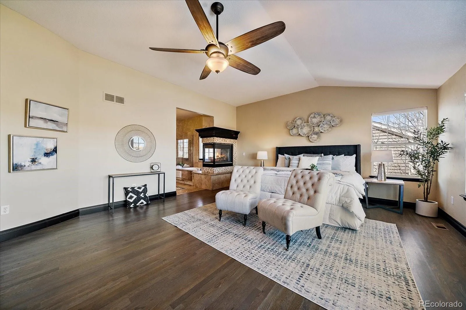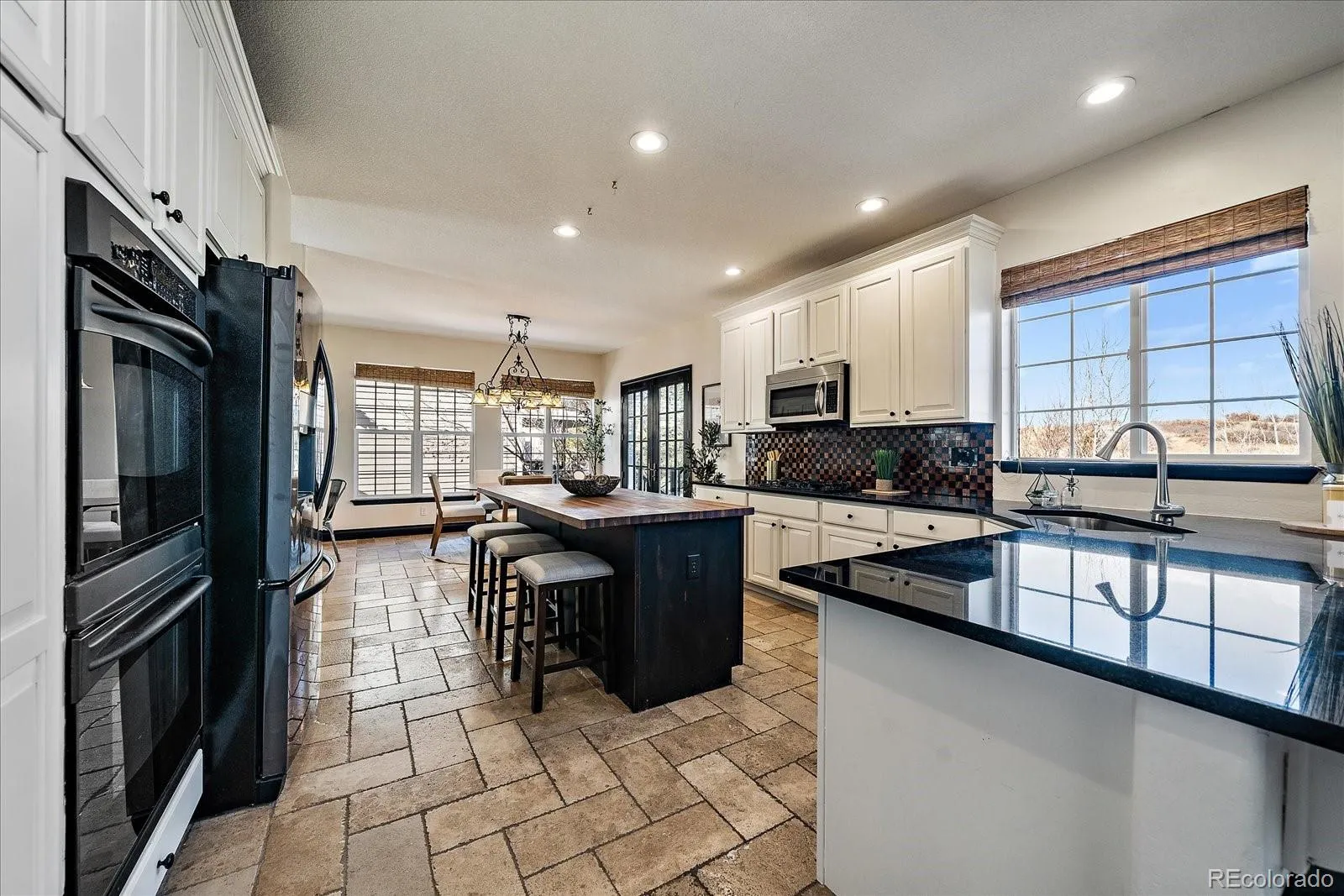 Designed for space, flexibility, and connection to the outdoors, this custom Sapphire Pointe home offers scenic open space views and multiple areas to gather or unwind. Recent updates include a new roof and elegant 5-inch trim, while custom skip-trowel wall texture throughout adds warmth and character. The welcoming entry features a vaulted ceiling, travertine tile inlay, and a dramatic spiral staircase that sets the tone for the home’s thoughtful design. A classic floor plan offers formal living and dining rooms filled with natural light, along with a private study behind French doors—ideal for working from home or creative pursuits. The vaulted family room is anchored by a grand fireplace and expansive windows that frame the open space beyond. At the heart of the home, the kitchen is designed for both function and entertaining, featuring granite countertops, a butcher block island, gas cooktop, double ovens, and generous cabinetry. The casual eating area includes plenty of cabinets, desk space and opens to an oversized deck with pergola—perfect for outdoor dining and summer gatherings. The upper level is highlighted by a spacious primary suite overlooking open space, complete with a sitting area, three-sided fireplace, and a well-appointed five-piece bath with granite counters and inlaid travertine tile flooring. A large walk-in closet with center island and custom built-in adds a touch of luxury. Three additional bedrooms complete the upper level, including one with an ensuite bath and two connected by a shared bathroom. The fully finished walk-out basement adds exceptional versatility, offering a second full kitchen, family room with fireplace, two additional bedrooms, each with a sink, laundry hookups, and flexible living areas well-suited for multigenerational living or extended guest stays. With new carpet, fresh paint, open space views, and room to live and grow, this home offers a distinctive opportunity in a desirable Castle Rock setting.