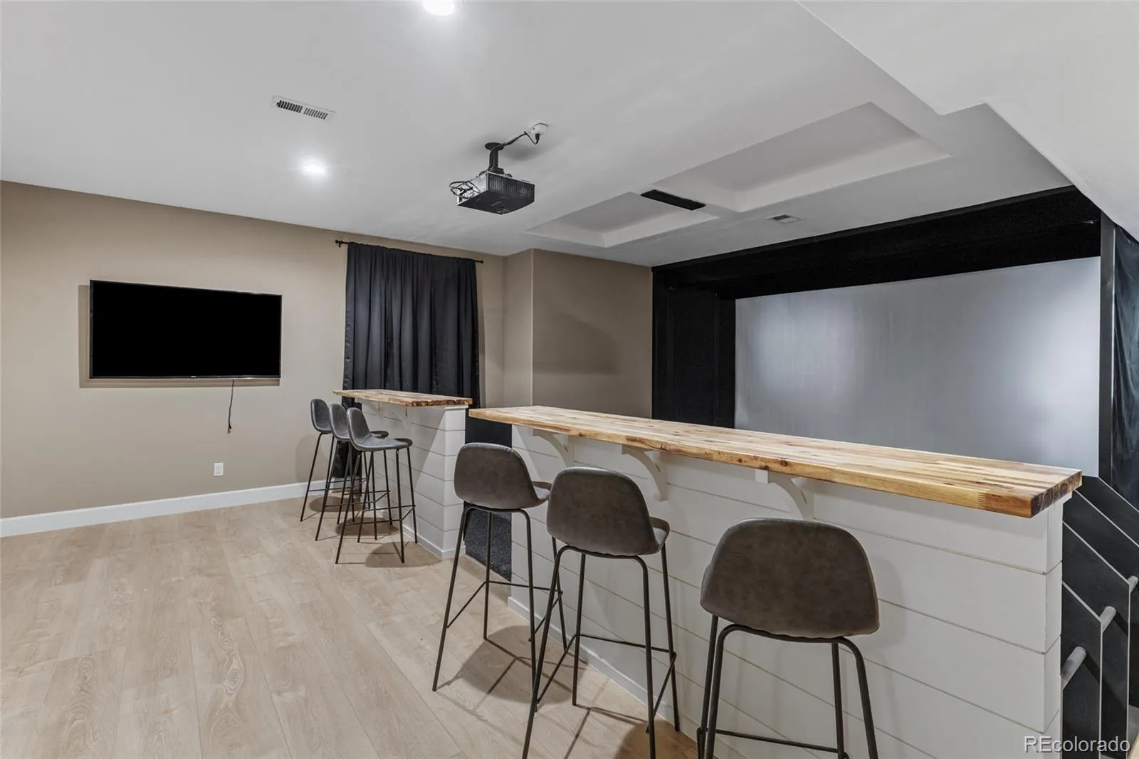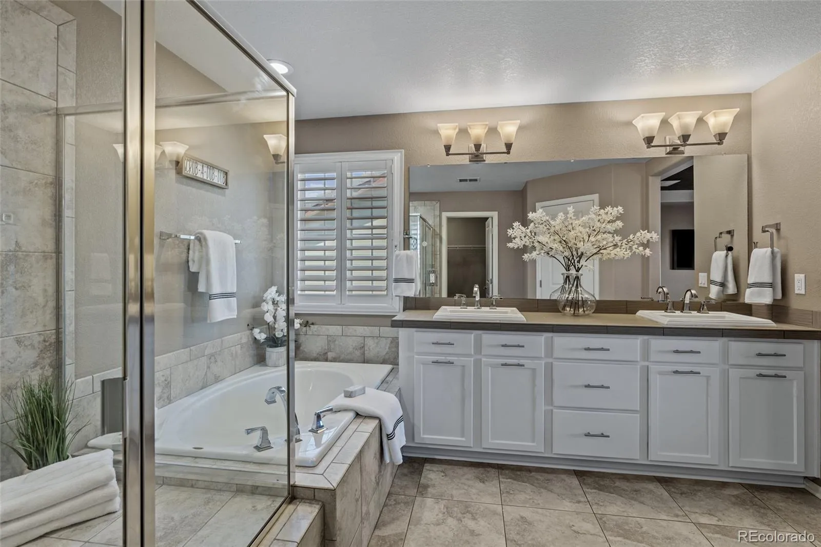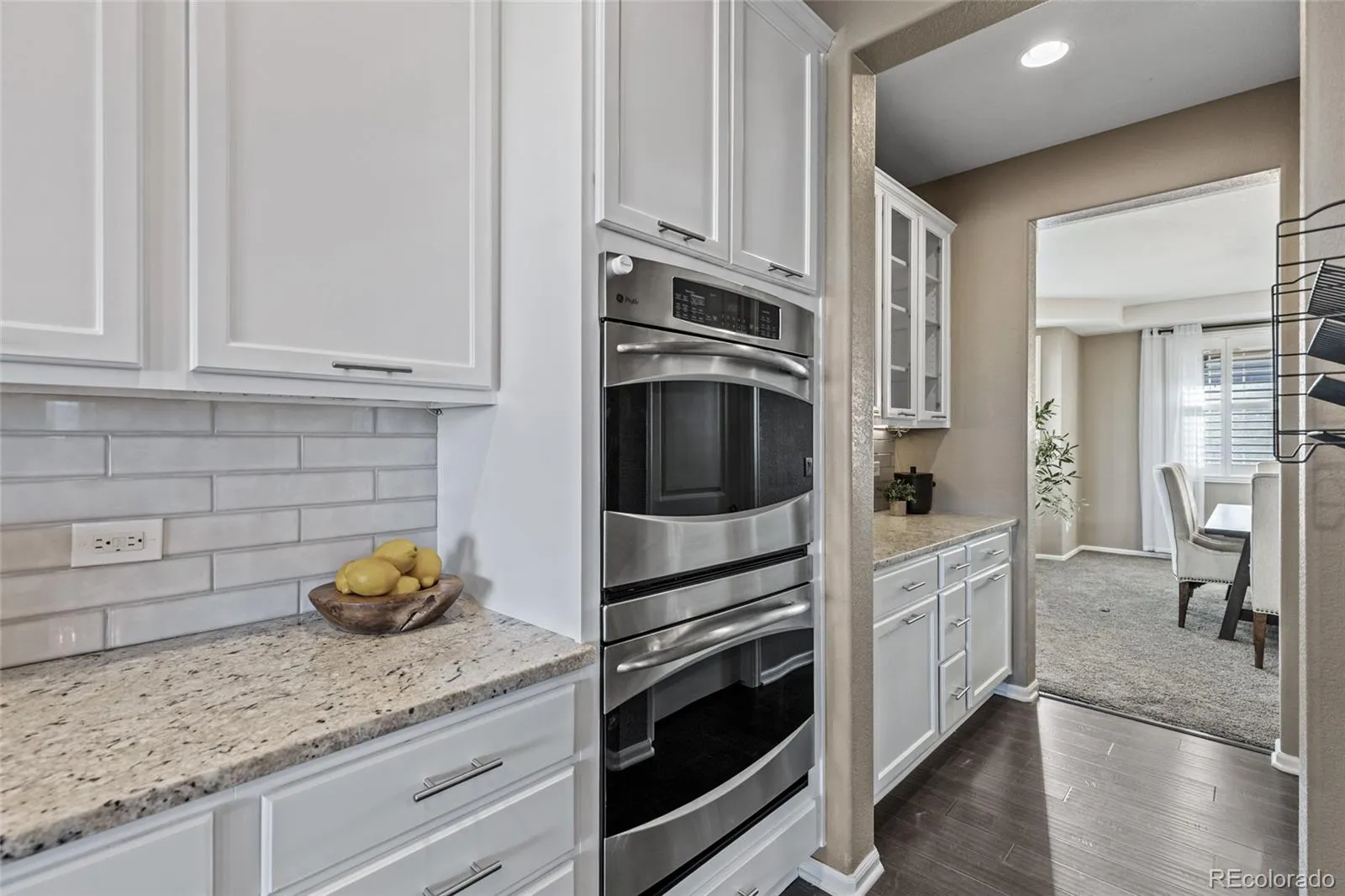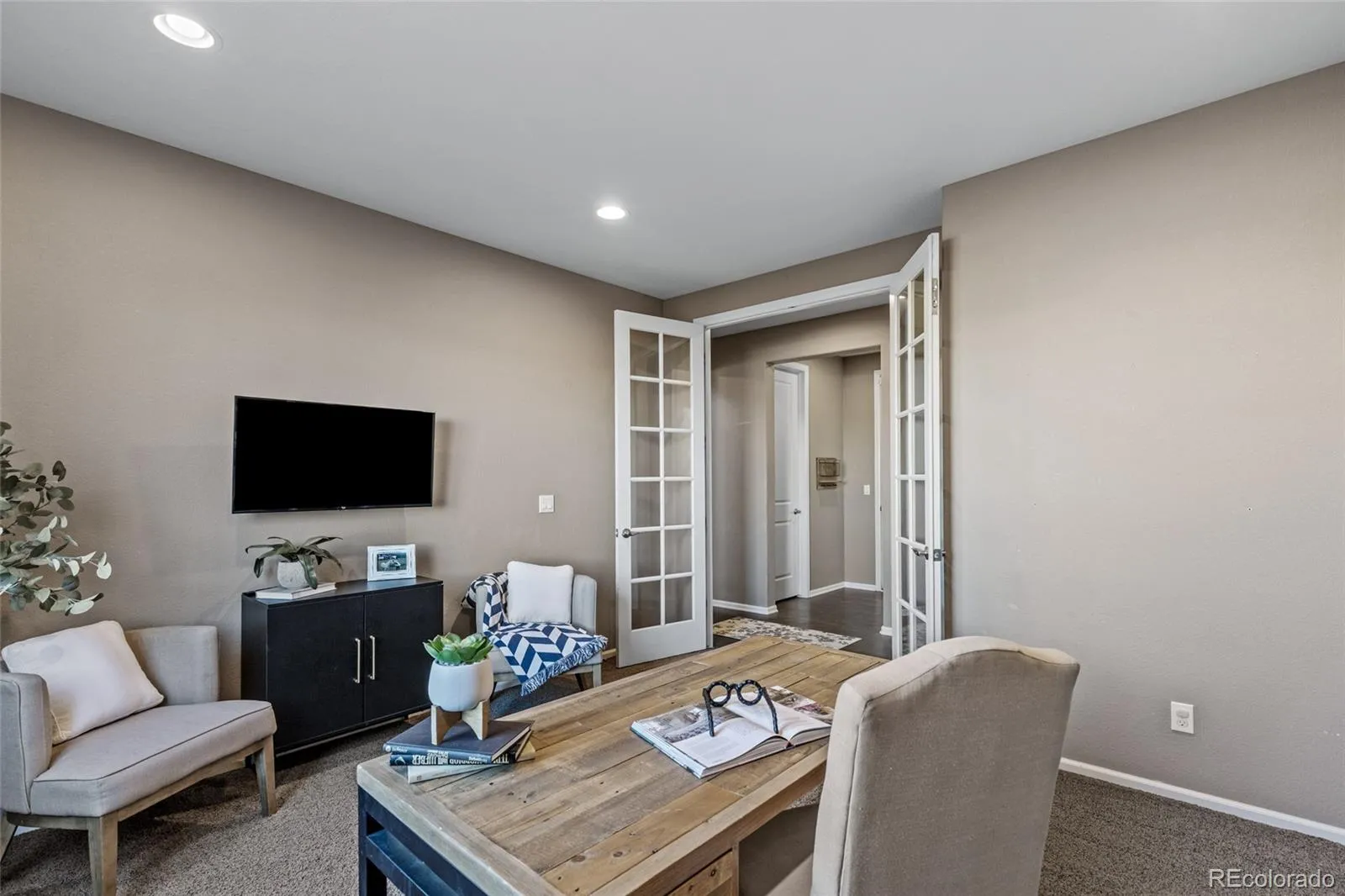 Stunning 5-bedroom, 4-bathroom, 3-car garage home in the highly coveted Cobblestone Ranch community of Castle Rock. Perfectly positioned on expansive open space, this home offers rare privacy, breathtaking views, and a peaceful Colorado backdrop that feels endless. From the moment you enter, you’re greeted by soaring vaulted ceilings, an open-concept layout, and an abundance of natural light that creates a bright, warm, and welcoming atmosphere throughout. Dark hardwood floors provide striking contrast against crisp white cabinetry, elegant wood trim, and clean, modern finishes. The heart of the home centers around a show-stopping fireplace adorned with white stacked stone, a down-lit mantel and rich wood beam above—an architectural focal point that blends timeless elegance with modern design. The kitchen flows seamlessly into the living and dining spaces, ideal for both everyday living and entertaining. Step outside to a covered patio and private backyard, where incredible open-space views create the perfect setting for morning coffee, evening gatherings, or quiet evenings relaxing from your busy day under the unmatched Colorado sky. The finished basement elevates this home even further, offering a versatile golf simulator space that easily converts into a private movie theater, along with a dedicated workout room, bringing luxury, recreation, and convenience together under one roof. Additional highlights include a durable concrete tile roof, brick exterior, and thoughtful design throughout. Residents of Cobblestone Ranch enjoy access to a resort-style community pool, scenic parks, walking trails, and sweeping neighborhood views. Warm, inviting, and filled with incredible energy, this home offers the perfect balance of elegance, comfort, and Colorado lifestyle. Truly a rare opportunity backing to wide-open space in one of Castle Rock’s most desirable communities.
