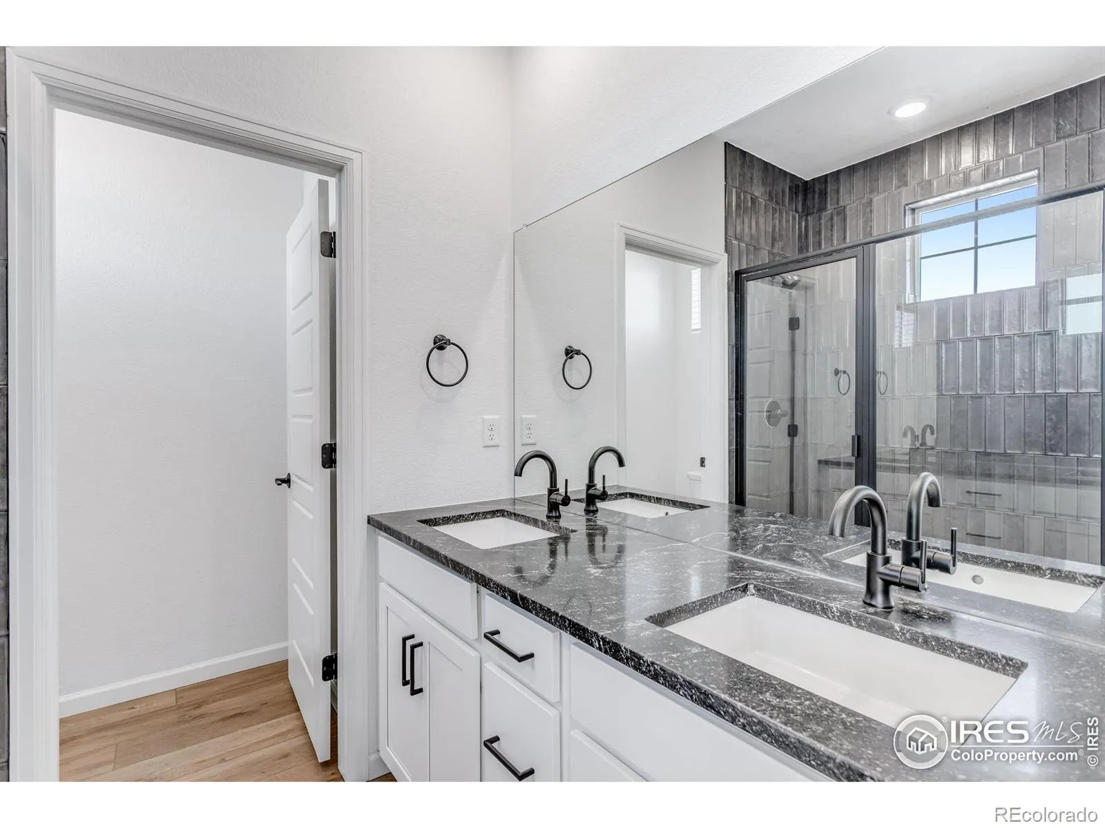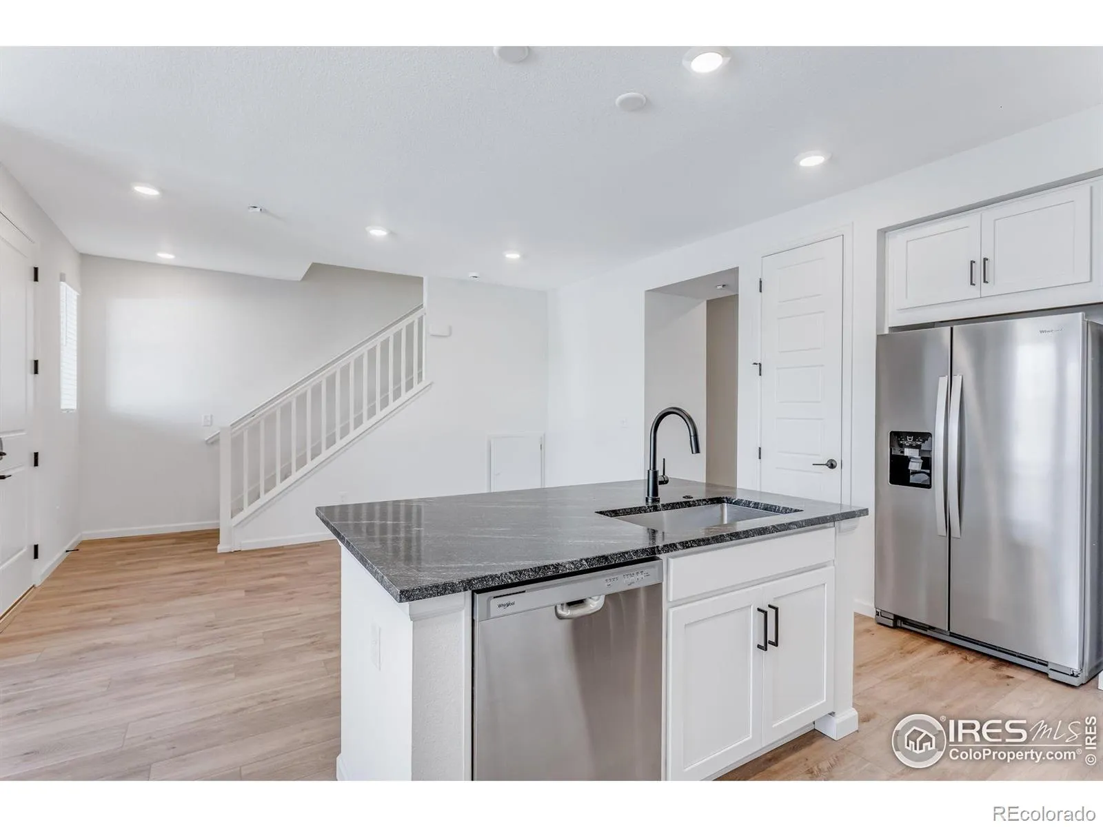 Step inside 1761 Mount Meeker and be welcomed by effortless livability in a townhome that lives like a single-family home. An open, spacious layout creates an inviting atmosphere designed for both everyday comfort and entertainment. The main level opens to a bright, expansive great room – ideal for hosting guests – and flows seamlessly into a striking kitchen featuring black granite countertops, sleek cabinetry, and a full suite of stainless Whirlpool appliances, including a refrigerator. Natural-wood WPC flooring runs throughout the main floor, adding warmth, durability, and a polished finish to the space. Upstairs, the primary suite is a true retreat with a generously sized bedroom, an en-suite bath with double vanities and quartz countertops, and an oversized walk-in closet. Well-appointed secondary bedrooms also feature large windows that fill each space with natural light. This is your chance to enjoy the convenience of townhome living without giving up the space and feel of a single-family home. See it before it’s gone.