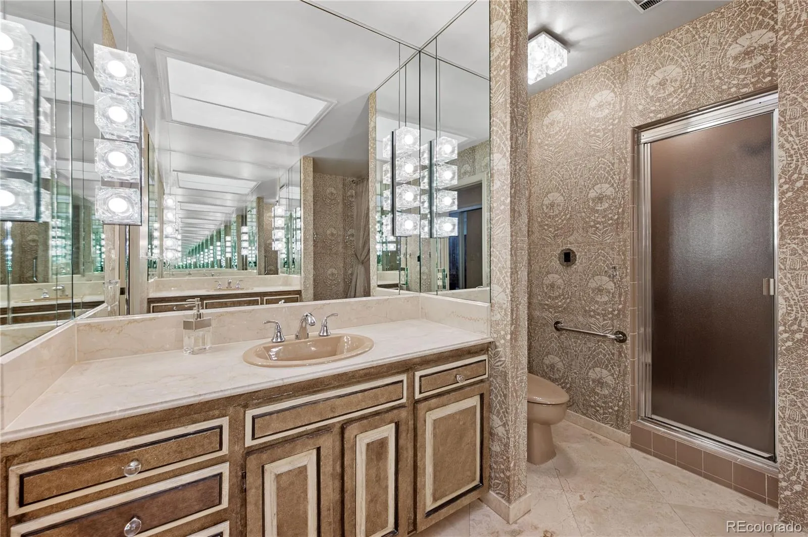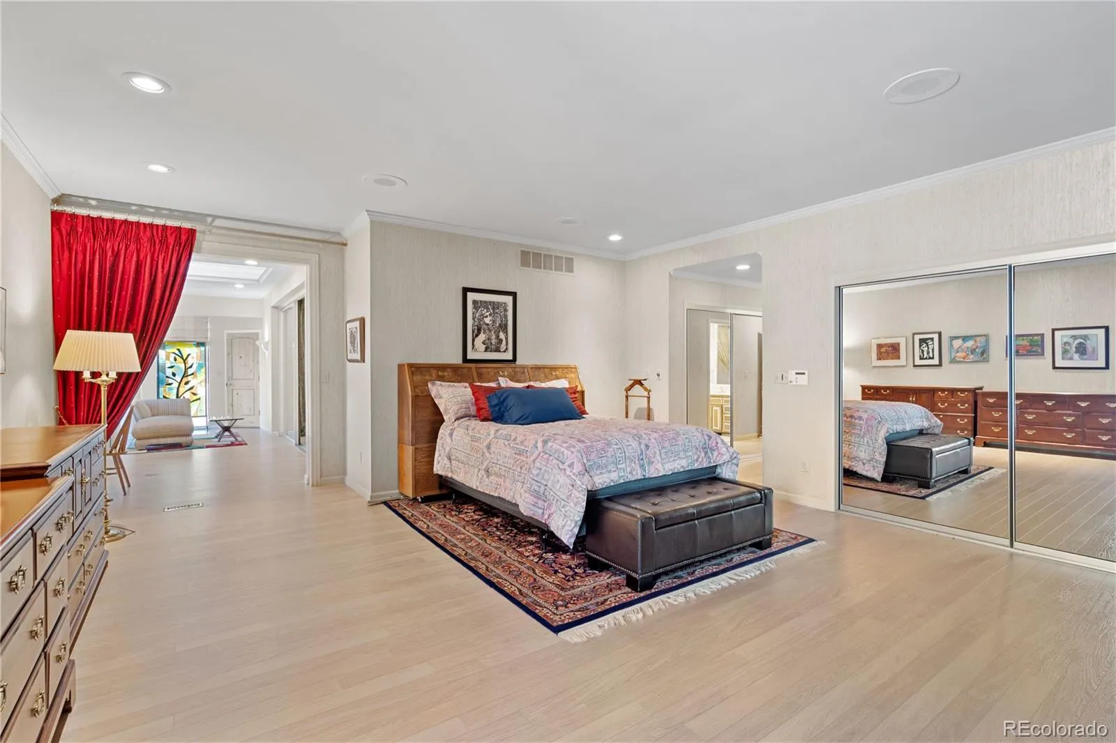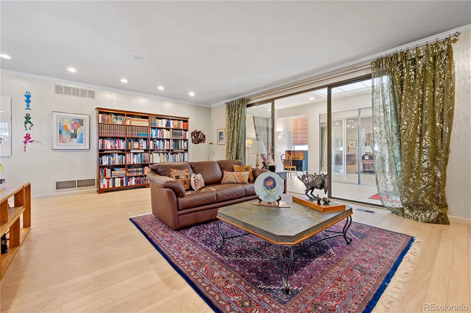 This is your opportunity to own a coveted end-unit ranch patio-home nestled in the treasured gated community of Cherry Hills III. This low-maintenance residence offers 5 bedrooms & 3 bathrooms with an exceptional layout & 5330 square ft of living space. The main level features a spacious great room w/ recessed lighting & a Belgian marble fireplace, along with a separate formal dining room, ideal for entertaining. The spacious kitchen has slab granite countertops, stainless steel appliances, a pantry, & ample cabinetry, w/ convenient flow to the main living areas. The primary suite is privately situated & includes a bright sitting room & a large six-piece bath w/ a steam shower. The 2nd main-level bedroom would also make an impressive executive office. The Main-floor laundry adds everyday convenience. The finished full basement significantly expands the home’s functionality & includes a large family room, 3 additional bedrooms, a ¾ bathroom, a working darkroom, workshop, exercise room, & abundant storage space. Closet storage throughout the home is exceptional & includes multiple walk-in/cedar closets. Outdoor living is enhanced by a private brick patio featuring mature trees & a pergola, offering a quiet & secluded setting. Additional features include a whole-house vacuum system, new furnace and water heater (2022), & a heated attached two-car garage. The south-facing driveway provides added winter convenience. The systems in this home are super-well maintained w/ a monthly preventative maintenance service. Cherry Hills III is a 38 acre secluded, scenic community w/ lush greenbelts & a wide range of community activities including private Summer concerts. The HOA includes: 24/7 secure gate guard, grounds maintenance, snow removal, water and sewer, exterior building maintenance, clubhouse facilities, an outdoor pool, tennis and pickleball courts. Conveniently located to restaurants, entertainment, shopping, transportation, DU and more. Just 10 minutes Cherry Creek N!