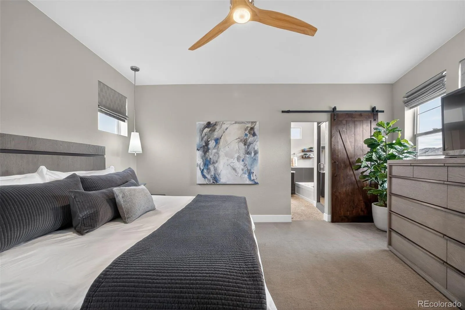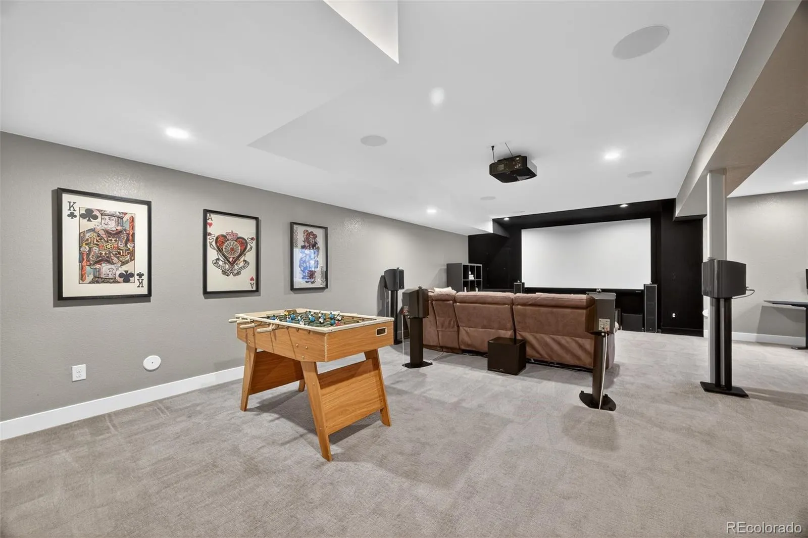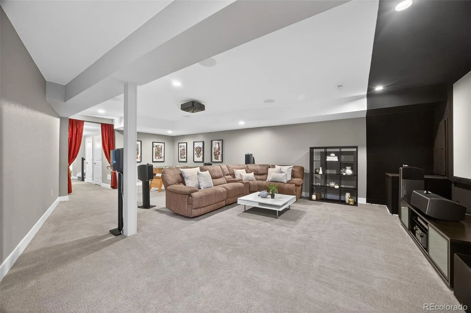 The gourmet kitchen is a true showstopper and one you won’t find often, featuring leathered granite countertops, upgraded cabinetry with custom organization, Bosch appliances, and a hidden coffee bar. Double sliding glass doors open to the oversized patio, extending the living space outdoors. The dining room flows easily into the kitchen and family room, creating an ideal setting for gatherings. Surrounded by windows and finished with Restoration Hardware drapery, the family room is equally suited for cozy evenings or game days with pre-wired surround sound. A main-floor study with patio views and a glass pocket door offers a quiet retreat, while the mudroom with walk-in pantry leads to the finished garage with custom storage. Upstairs, the primary suite is a serene retreat with mountain views, a spa-like 5-piece bath with soaking tub and walk-in shower, and a custom walk-in closet. Two additional bedrooms share a Jack-and-Jill bath and enjoy more mountain views, while the upper-level laundry, complete with a utility sink and custom storage, adds everyday convenience. The finished basement is an entertainer’s dream with a home theater featuring a 128″ screen, 4K projector, and Dolby Atmos sound, plus a game area, guest bedroom with egress window, and a beautifully updated ¾ bath. Outside, enjoy sunset views from the oversized patio and a low-maintenance grass area. Enjoy the exceptional amenities Solterra has to offer, including social clubs, resort-style pool, tennis, trails with special dog stations, and more (visit solterra-connect.com for details). Just 15 minutes from Red Rocks, minutes from biking and hiking, and with easy access to downtown or the mountains, you’ll love every minute of living here.