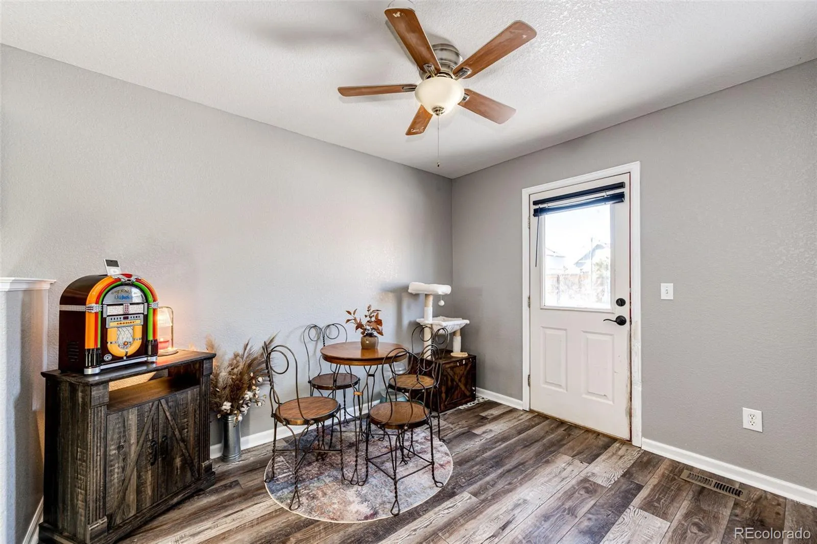 Charming 3-bedroom, 2-bath ranch-style home situated on a desirable corner lot in a quiet Strasburg neighborhood. This inviting property features a covered wraparound front porch, a spacious 3-car detached garage, and excellent curb appeal with a newer roof and exterior paint. Inside, enjoy an updated kitchen and new flooring in the kitchen and entry, along with a new central air unit for year-round comfort. The HOA covers year-round maintenance of the front yard, alleys, and public areas. The neighborhood offers a community park and swimming pool, and is conveniently located near schools, shopping, and restaurants. Easy access to I-70 makes commuting a breeze, just 30 minutes to Downtown Denver and 30 minutes to DIA.