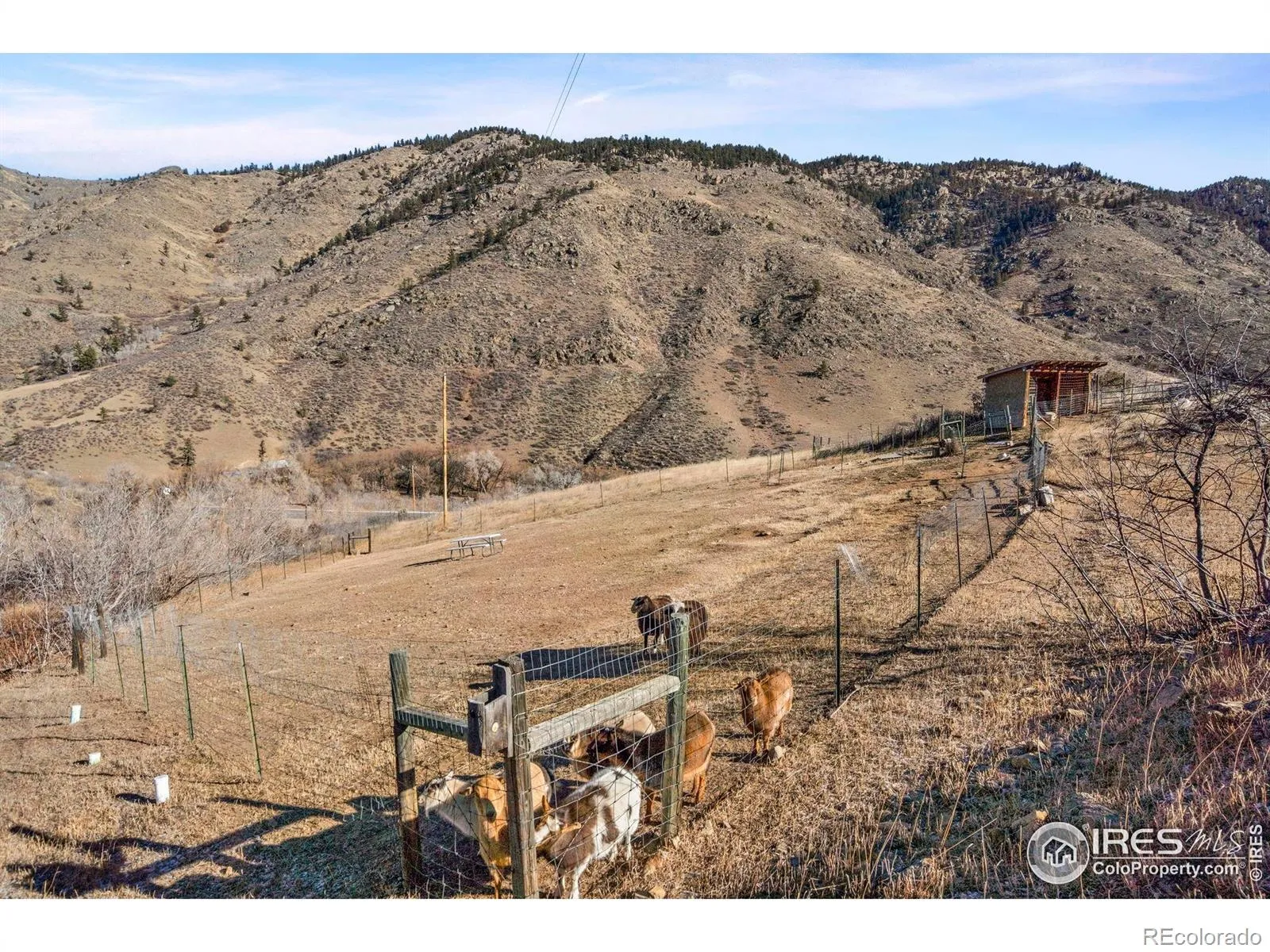 Thirty-six acres of Colorado beauty! Located inside a gated subdivision in Bellvue, this remarkable property delivers true mountain living with sweeping acreage filled with wildlife, rolling valleys, dramatic rock cliffs, and the kind of privacy that feels worlds away. The home offers single-level living that makes everyday life feel effortless featuring an easy-flow layout enhanced by recent updates, including refreshed interior paint and new LVP flooring throughout. Bright and well-defined spaces offer a natural flow while still providing pockets of privacy where it matters most. A classic wood stove in the living area provides a cozy focal point that pairs perfectly with mountain evenings. The updated kitchen features stainless steel appliances, crisp shaker cabinets, a tiled backsplash, and a center island offer plenty of prep space while keeping everything within easy reach. Three bedrooms provide flexibility and comfort, including a primary suite with its own private access to a shared bathroom. Step outside and take in the landscape from two raised decks, where the views stretch wide in every direction, offering front-row seats to wildlife sightings and changing seasons. With unobstructed views of the night sky, evenings here transform into a stargazer’s dream! A seasonal creek also winds through the property, adding natural charm. Fenced areas and a loafing shed are already set up for livestock and small-scale farming, with optional inclusion of several goats and sheep to help bring the land to life from day one. Enjoy the calm and solitude of mountain living while staying just about thirty minutes from the shops, dining, and amenities of Loveland and Fort Collins.