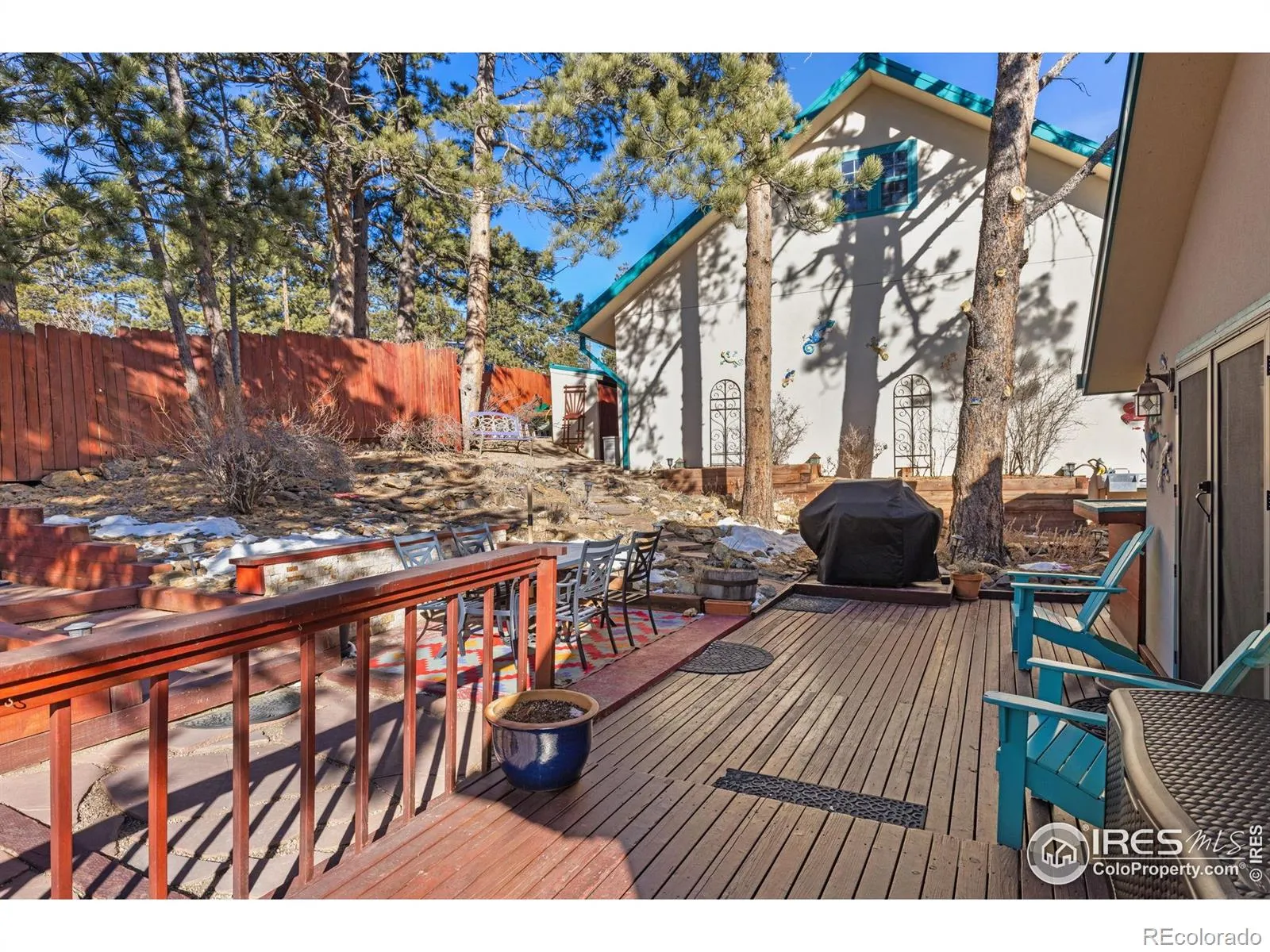 Immaculately maintained and beautifully updated, this refreshed stucco home is nestled in the charming mountain town of Nederland, CO, offering a rare balance of peaceful mountain living coupled with excellent walkability to local amenities. Set on a fully fenced .52-acre lot, this property is drenched in southern sun, surrounded by mature Ponderosa pines, sweeping mountain views and enchanting water views of Barker Reservoir. Town-maintained roads lead to this serene, tucked-away neighborhood, where a paved driveway and an impressive 870 SF detached garage welcome you. Inside, the fully remodeled residence blends modern convenience with original charm and an expanded floor plan that provides thoughtful separation of space, sun-filled rooms and a warm, inviting atmosphere. The updated kitchen features Corian countertops, custom cabinetry and SS appliances, opening to the dining area ideal for entertaining. The living room showcases a striking stone fireplace with wood floors leading to a spacious primary suite with vaulted ceilings, south-facing windows, private ensuite bath and walk-in closet. A 2nd ensuite bedroom rounds out the main level. Downstairs find another generous-sized ensuite bedroom offering exceptional privacy with an adjacent large office and laundry room that includes ample storage and walkout access to the yard. Outdoor living shines with a wraparound deck, garden spaces, landscaping, fire pit, and a dedicated dining and bar area perfect for summer gatherings and mountain evenings. Added peace of mind and insurability with fire mitigation already completed, a stucco exterior and metal roof still under warranty. Enjoy the ease of in-town living without sacrificing privacy or natural beauty, just 5 miles from Eldora Ski Resort and close to numerous nearby trailheads. Plenty of available storage including the oversized detached garage + a separate shed. Effortless mountain living in a fully turnkey home, only 15 scenic miles from Boulder!