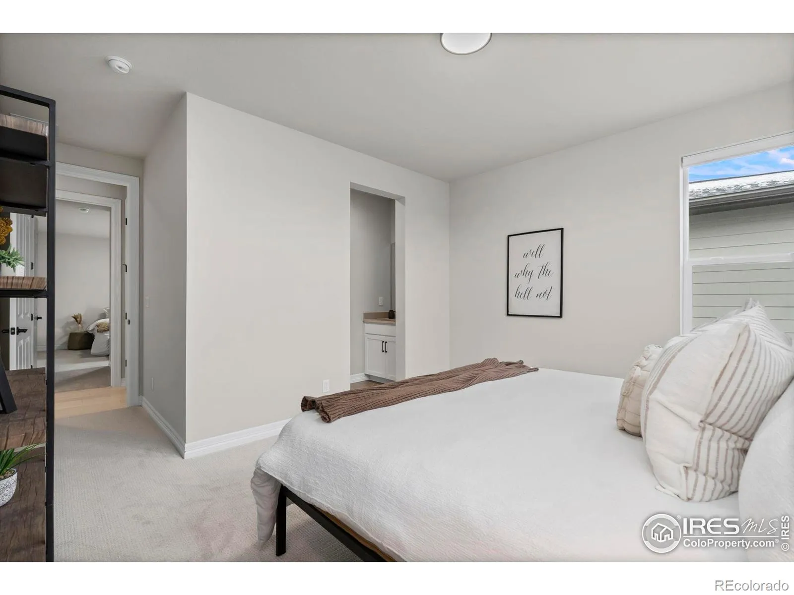 Welcome to this exceptional, better-than-new Toll Bros Summit Collection Bayfield home perfectly positioned on a premium corner homesite and loaded with high-end upgrades. With 3,936 finished square feet, this stunning residence offers 4 bedrooms, 3.5 baths, a 3-car garage, and the highly sought-after primary suite on the main level-designed for effortless luxury living. At the heart of the home, the chef’s gourmet kitchen is a showstopper, featuring a massive expanded island, quartz countertops, and top-of-the-line KitchenAid appliances, including a double oven-ideal for entertaining at any scale. A dramatic 16-foot multi stacking sliding glass door opens to the spacious covered rear patio, creating a seamless indoor-outdoor living experience. The main-level primary retreat feels like a private spa, complete with a freestanding Kohler soaking tub, luxury oversized shower, designer tile upgrades, dual vanities, and a large walk-in closet. The second floor offers three generously sized bedrooms, two full baths, abundant storage, and a spacious loft-perfect for a media room or flex space. Mountain and lake views can be seen from multiple areas upstairs. The home also features a formal dining room, an office, and a 3-car front-load garage with an added side door for convenience. Downstairs, the 1,812-square-foot unfinished basement includes rough-in plumbing and two daylight windows, providing endless opportunities to create additional living space, a home gym, or guest suite. What truly sets this home apart is its next-level efficiency and sustainability: Owned solar system, two Tesla Powerwalls, two EV chargers, two HVAC systems, tankless water heater with recirculation pump. Located in Northern Colorado’s hottest new community, this home is walkable to charming downtown Timnath and offers easy access to trails, boating, fishing, and outdoor recreation. Finished, move-in ready, and far exceeding new construction – this is a rare opportunity you don’t want to miss!