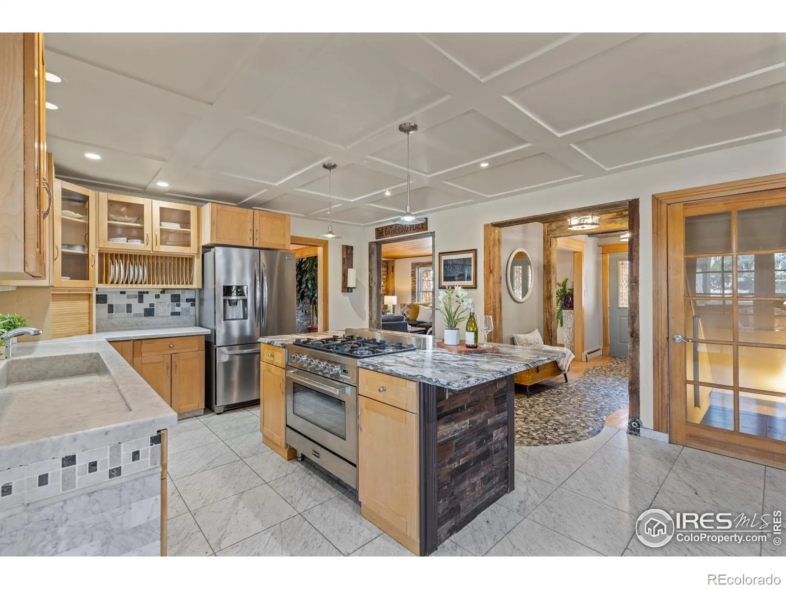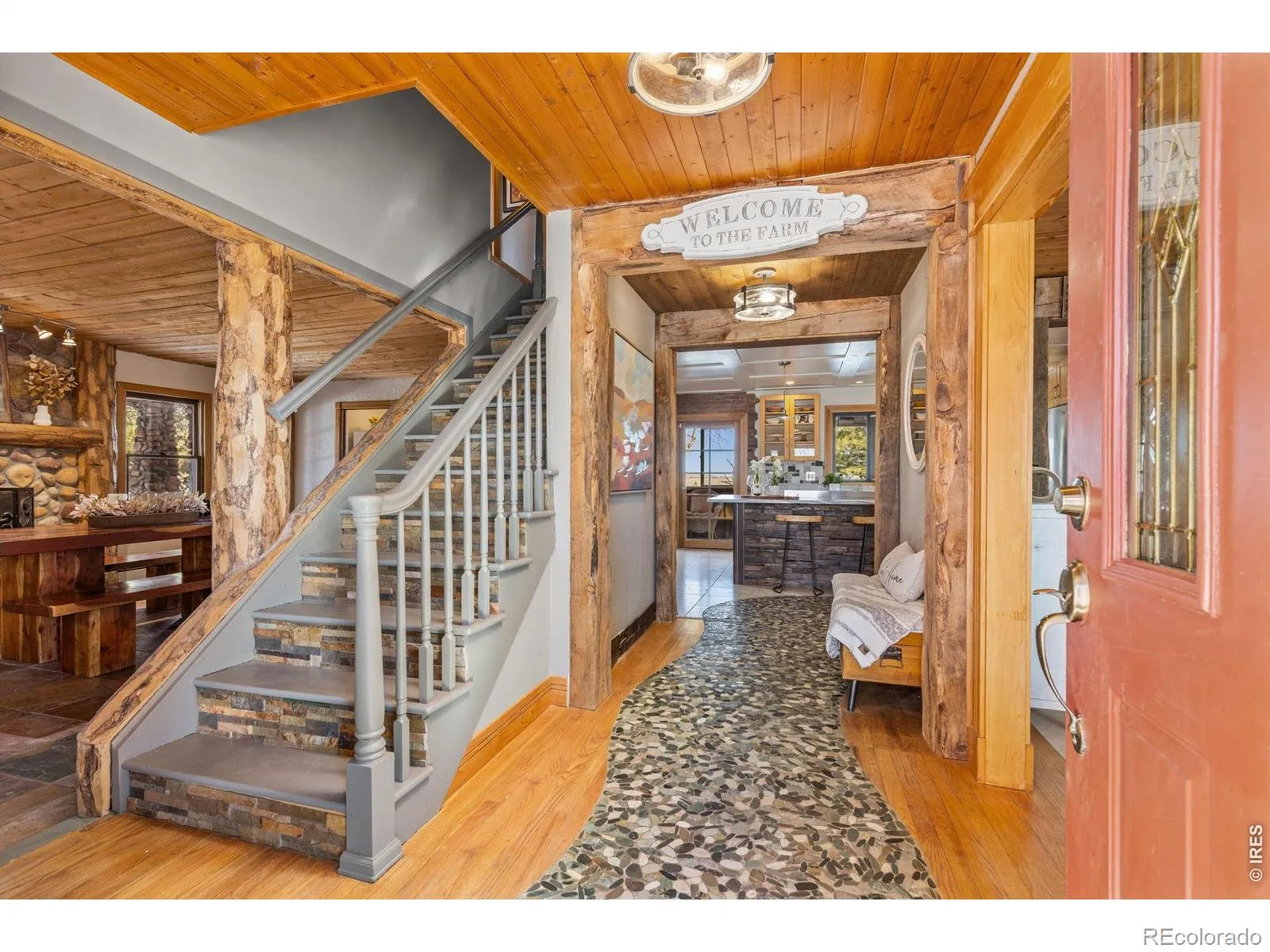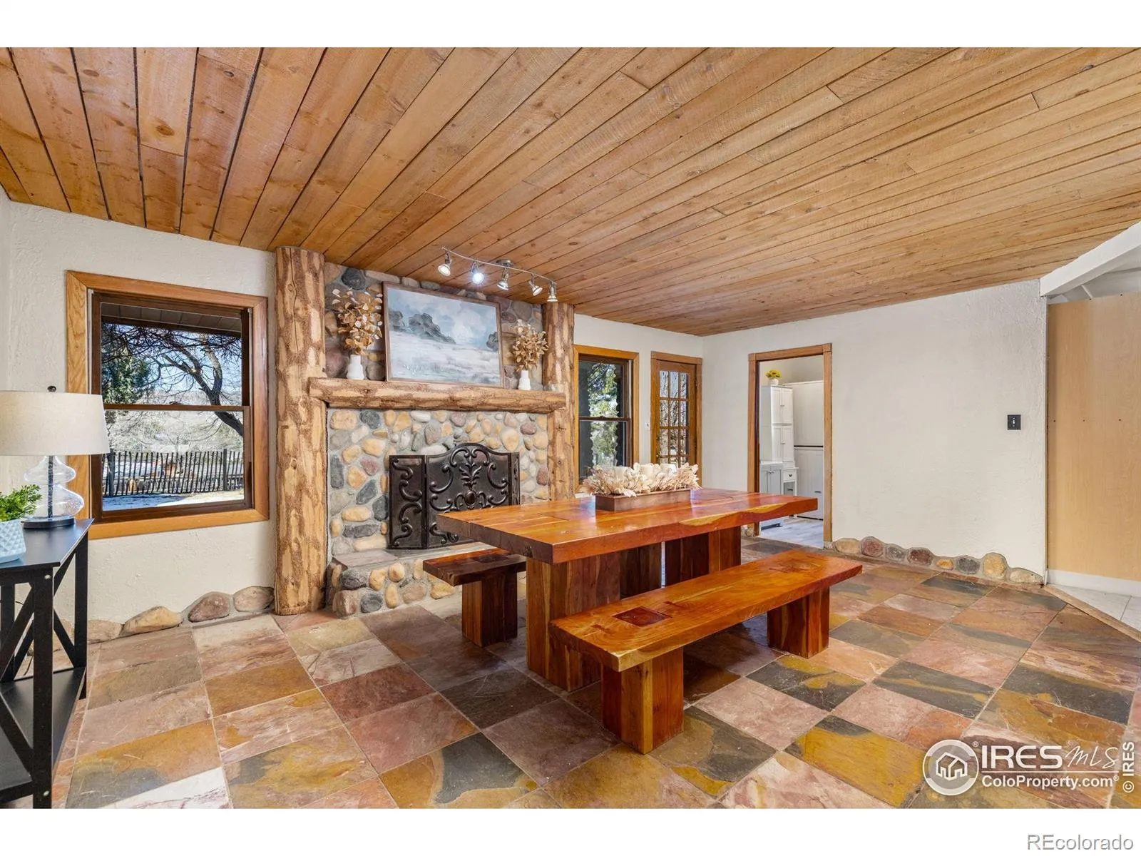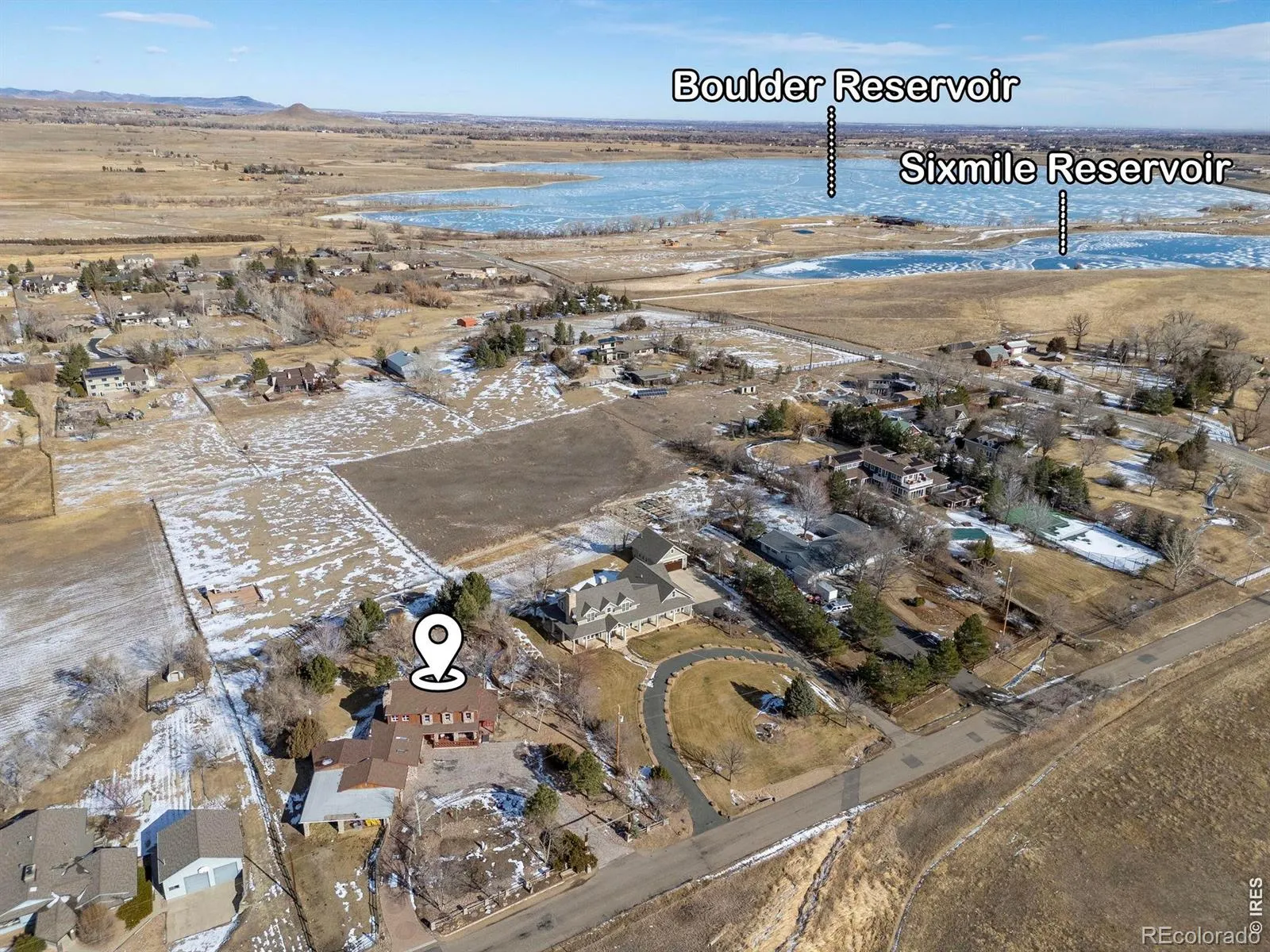 Wake up to unobstructed views of the Flatirons and Colorado’s iconic foothills from nearly every window of this extraordinary 5-bedroom estate. Set on 2 acres across from protected open space, this rare property offers breathtaking scenery, exceptional privacy, and an unbeatable location just minutes from downtown Boulder and within walking distance of the Boulder Reservoir. A circular cobblestone driveway welcomes you to a home that feels warm and inviting from the moment you step inside. Thoughtfully updated over the years, every space reflects care, character, and craftsmanship. The custom kitchen features marble sourced from Italy and Vermont, marble flooring, and a statement island framed in rustic decommissioned ship wood. The show-stopping entry and foyer showcase river rock tile and reclaimed barn wood beams, setting the tone for the home’s natural elegance. The cozy living room is lined with windows framing stunning mountain sunsets. Additional highlights include a main-level office with built-ins, a dining room with a wood-burning fireplace framed in river rock and a log beam mantel, and a studio/workshop with a private entrance. The basement is ideal for entertaining, perfect for game nights or gatherings. Outdoors, the backyard is designed for enjoyment with mature landscaping, vibrant seasonal color, and a tranquil pond and water feature. The property is ready for horses, livestock, or chickens, with existing shelters, fencing, and heated water lines. This rare location offers the perfect balance of nature, privacy, and convenience-peaceful and tucked away, yet close to everything that defines Boulder living.