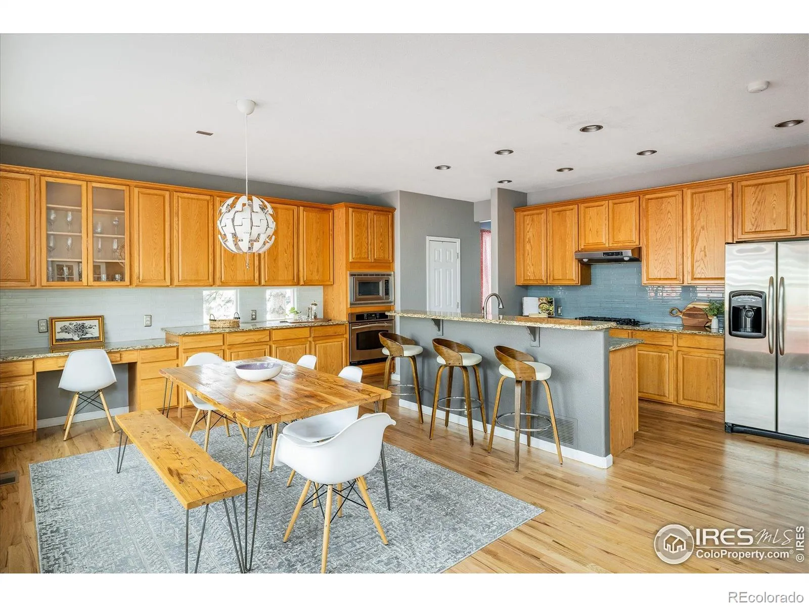 Tucked in the coveted Renaissance neighborhood, this stunning home offers breathtaking views of Longs Peak and abundant natural light. Refinished hardwood floors flow throughout the main level, complementing an inviting two-story foyer with a grand staircase. Enjoy relaxing and entertaining in a two-story living area showcasing a dramatic wall of windows and a cozy tiled fireplace. The gourmet kitchen boasts granite countertops, stainless steel appliances and a gas cooktop, perfect for culinary enthusiasts. A formal dining room and a private home office with French doors enhance the home’s elegance. The second level features four spacious bedrooms and three baths, including a luxurious primary suite. Outside, enjoy easy access to Boulder County Open Space, scenic trails and nearby parks. Additional storage is found in an attached garage. Offering proximity to schools and a short drive to Longmont’s historic Old Town, this home blends convenience and comfort in an unbeatable location. Major improvements include new windows, a furnace and A/C installed in 2023, two large hot water heaters replaced in 2022, a new roof in 2021, and the installation of a radon mitigation system and sump pump. The sellers kindly request 24 hours’ notice for showings.