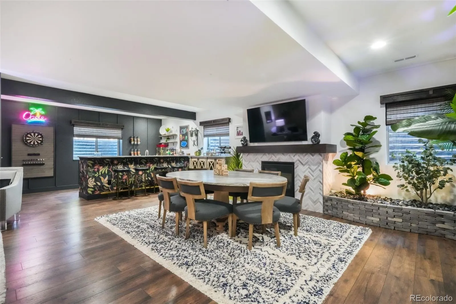 This truly exceptional open concept ranch style home exudes model home vibes, with a plethora of custom finishes throughout. The custom front steps & covered front porch with upgraded metal railings set the tone for a property that stands out in every detail. The four car garage, complete with upgraded doors and coated floors is a dream. The entryway leads to a front bedroom featuring accent woodwork with access to a beautiful hallway bathroom. In the heart of the home, you’ll find a one of a kind speakeasy, featuring a custom bar with wine & beverage fridges creating a space that’s both functional & a conversation piece. The kitchen features stainless steel appliances, a large island with single basin sink, pantry, & an expansive dining area overlooking the mature trees. The living room centers around a cozy gas fireplace while oversized sliding glass doors blur the line between indoor & outdoor living. The primary suite is a retreat, showcasing a custom wood ceiling, tile accent wall, & an abundance of natural light. The ensuite bathroom impresses with a double vanity, walk in shower with striking herringbone tile, private water closet, generous walk in closet & direct access to the laundry room complete with custom cabinetry. This space also connects to the main living area & provides access to the garage. The basement is a literal oasis, perfect for entertaining guests or relaxing with family. It features a second gas fireplace, custom wet bar with beverage fridge, & greenery thoughtfully integrated into the design, creating a lively yet cozy atmosphere. There are three additional bedrooms, one with an ensuite bathroom, plus a hall bath. The under stair space has been transformed into a micro office. The private backyard is a paradise, complete with a covered composite deck, stairs to the beautifully landscaped grounds with a built in fire pit. With central AC, whole house ventilation, radon mitigation and countless custom touches, this property is a true gem.