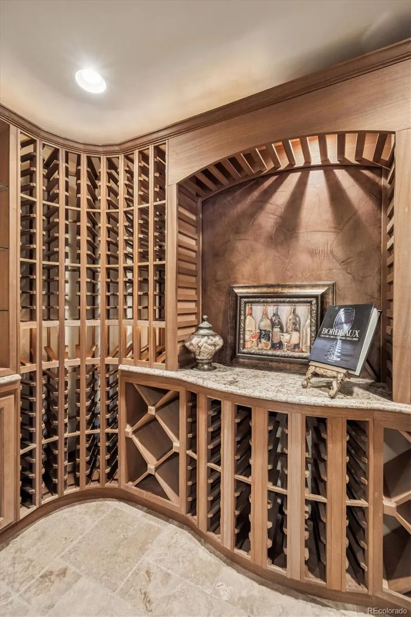 Stunning Saddle Rock home perfectly positioned on the 18th hole, offering breathtaking golf course views & exceptional indoor-outdoor living. Bright & open floorplan featuring formal living & dining rooms, ideal for entertaining. Dramatic living room showcasing a soaring two-story ceilings & striking see-through fireplace shared w/ the family room, creating a warm & inviting atmosphere. A private main-floor study includes built-in bookshelves, perfect for working from home. The gourmet kitchen offers abundant maple cabinetry, granite countertops, a large center island w/ seating & prep space, & a sunny breakfast nook overlooking the backyard & golf course. All black stainless-steel appliances are included. The main level also features a powder bath & convenient laundry room w/ sink & cabinetry. Upstairs, the spacious primary suite is a true retreat w/ a private balcony, fireplace, expansive walk-in closet w/ organizers, & a luxurious five-piece bath. The 2nd bedroom includes its own private full bath, while 2 add’l bedrooms share a full hall bath, all w/ closet organizers. The finished basement is ideal for entertaining, guests, or multi-generational living, featuring a great room w/ fireplace, wet bar w/ refrigerator, microwave & dishwasher, a 5th bedroom, workout room, wine cellar, & a 3/4 bath w/ steam shower. Enjoy Colorado outdoor living in the beautifully landscaped backyard w/ a maintenance-free deck, spacious patio, built-in BBQ, & outdoor fireplace, all overlooking serene golf course views. Add’l features include newly refinished hardwood floors, 2 furnaces, 2 A/C units, and 2 water heaters for enhanced comfort & efficiency. Located in a quiet & desirable Saddle Rock neighborhood, this home is close to top-rated Cherry Creek schools (including walkable Grandview High School), Southlands shopping & dining, DTC access, outstanding HOA amenities, & miles of walking and biking trails. A rare Saddle Rock golf course opportunity—don’t miss this exceptional home.