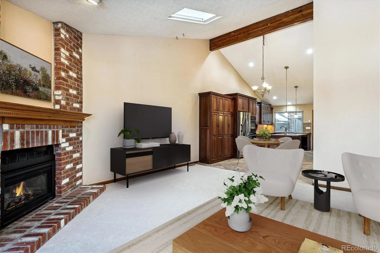 Welcome home to Popular Summit Park—where a rare ranch-style townhome gives you the comfort of true main-level living in a private end-unit setting. From the moment you walk in, the home feels open, bright, and welcoming, with a vaulted ceiling, a beautiful bay window, and five skylights that fill the space with natural light. The gourmet kitchen has been completely remodeled and redesigned, featuring gorgeous cherry cabinets and silestone quartz countertops, double-trivection ovens, a large center island with a sink, and tons of cabinet space, creating a warm space that’s perfect for everyday living and easy entertaining. You’ll appreciate the brand-new carpet throughout, the fully remodeled bathrooms, and the peace of mind that comes with all windows and doors replaced, plus a newer, updated electrical panel. The layout is both spacious and practical with convenient main-level laundry, three large bedrooms, and a relaxing primary suite featuring a walk-in closet, a large wheelchair-accessible shower, and a private access door to the covered patio—ideal for quiet mornings or unwinding at the end of the day. The finished basement adds valuable bonus space and plenty of storage, and the complete appliance package is included so you can move right in. Enjoy the convenience of a two-car garage with storage cabinets, guest parking across from the unit, and a community where the maintenance fee includes water, plus great amenities like two pools and two tennis courts. With a newer roof and siding already in place and an outstanding location close to Cherry Creek Reservoir, light rail station, I-225, I-25, the Denver Tech Center, golf courses, Buckley Air Force Base, Anschutz Medical Center, and DIA, this is a hard-to-find opportunity to own a beautifully updated, move-in-ready home in one of the area’s most connected locations