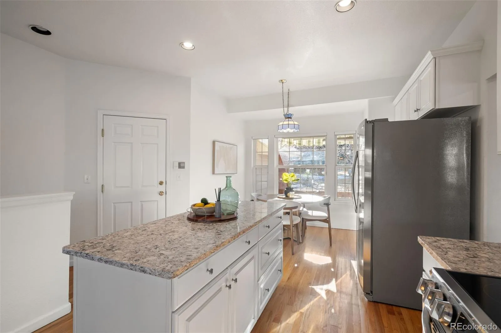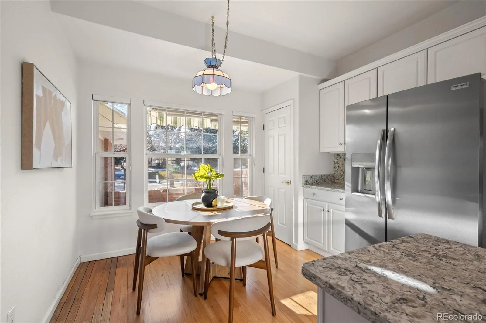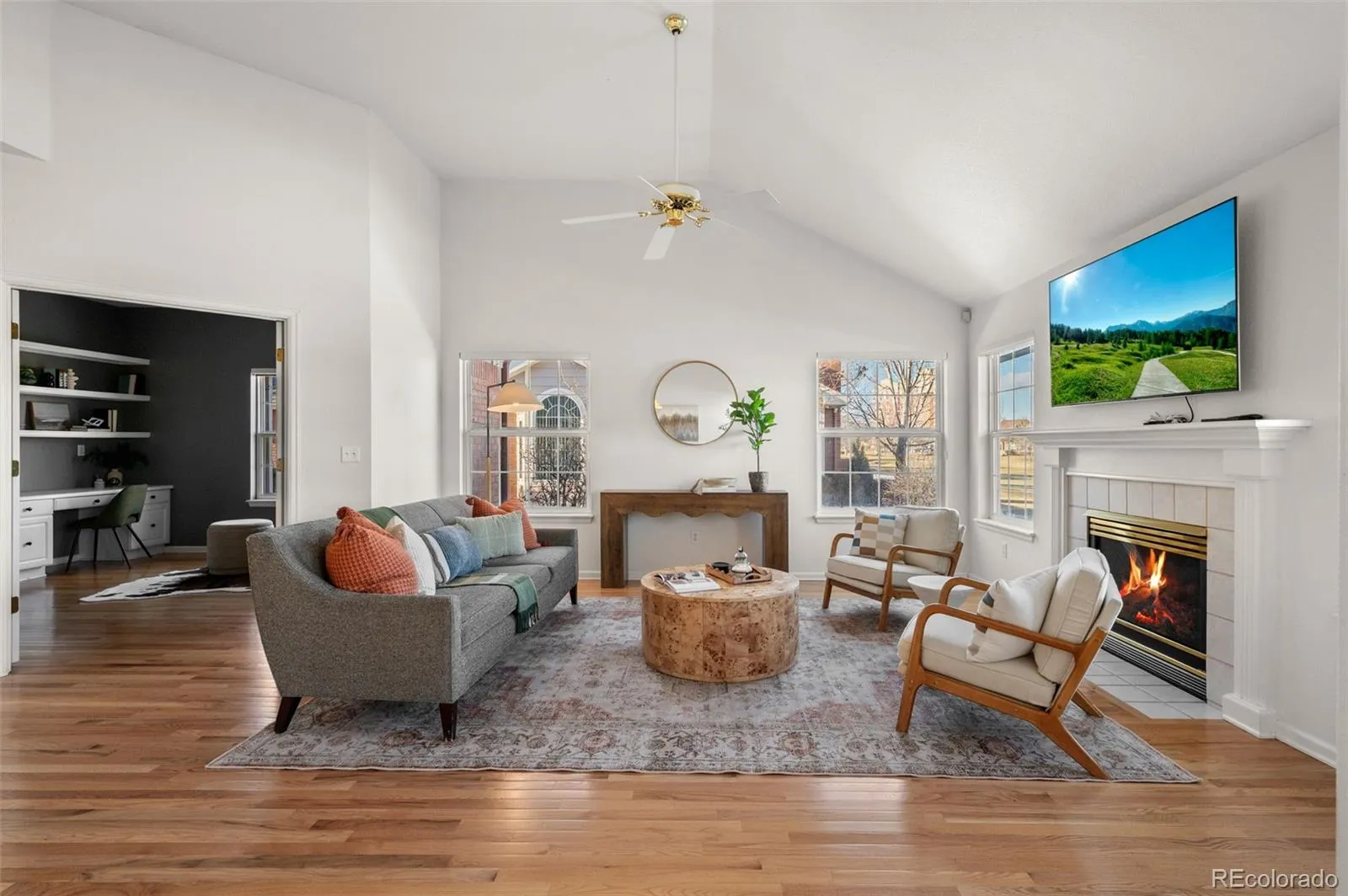 Beautiful ranch-style home in Littleton’s highly sought after Riverwalk Community! This charming home backs directly onto the Littleton Golf Course, perfect for the golf and outdoor enthusiasts. Walk inside to discover beautiful hardwood floors, vaulted ceilings, and an abundance of natural light that fills the open-concept living space. On chilly Colorado days, cozy up next to the gas fireplace and enjoy the peaceful ambiance. The kitchen is a chef’s dream, featuring granite countertops, a brand-new smart induction stove, new Frigidaire refrigerator, and new microwave, and dishwasher. With an open layout and a dining area that overlooks the golf course, this home is ideal for entertaining family and friends. The spacious primary suite offers a walk-in closet and a luxurious five-piece en-suite bathroom complete with a jacuzzi tub. A dedicated home office features french doors, built-in shelving, and a functional desk space—perfect for remote work or creative pursuits. The second bedroom includes newer carpeting and a private full bath, making it an ideal guest retreat. Downstairs, the finished basement provides a flexible space that can be customized to suit your needs—whether it’s a second living area, craft room, or potential expansion into the unfinished portion. Enjoy LOW-maintenance living in a community that features a stunning clubhouse with a spa, outdoor pool, sauna, and hot tub. Never have to worry about maintaining a yard, or shoveling your snow. All of this, and just a short walk or bike ride to downtown Littleton, the Platte River Trail, and a wide variety of restaurants and shops. Come see this one of a kind home for yourself.