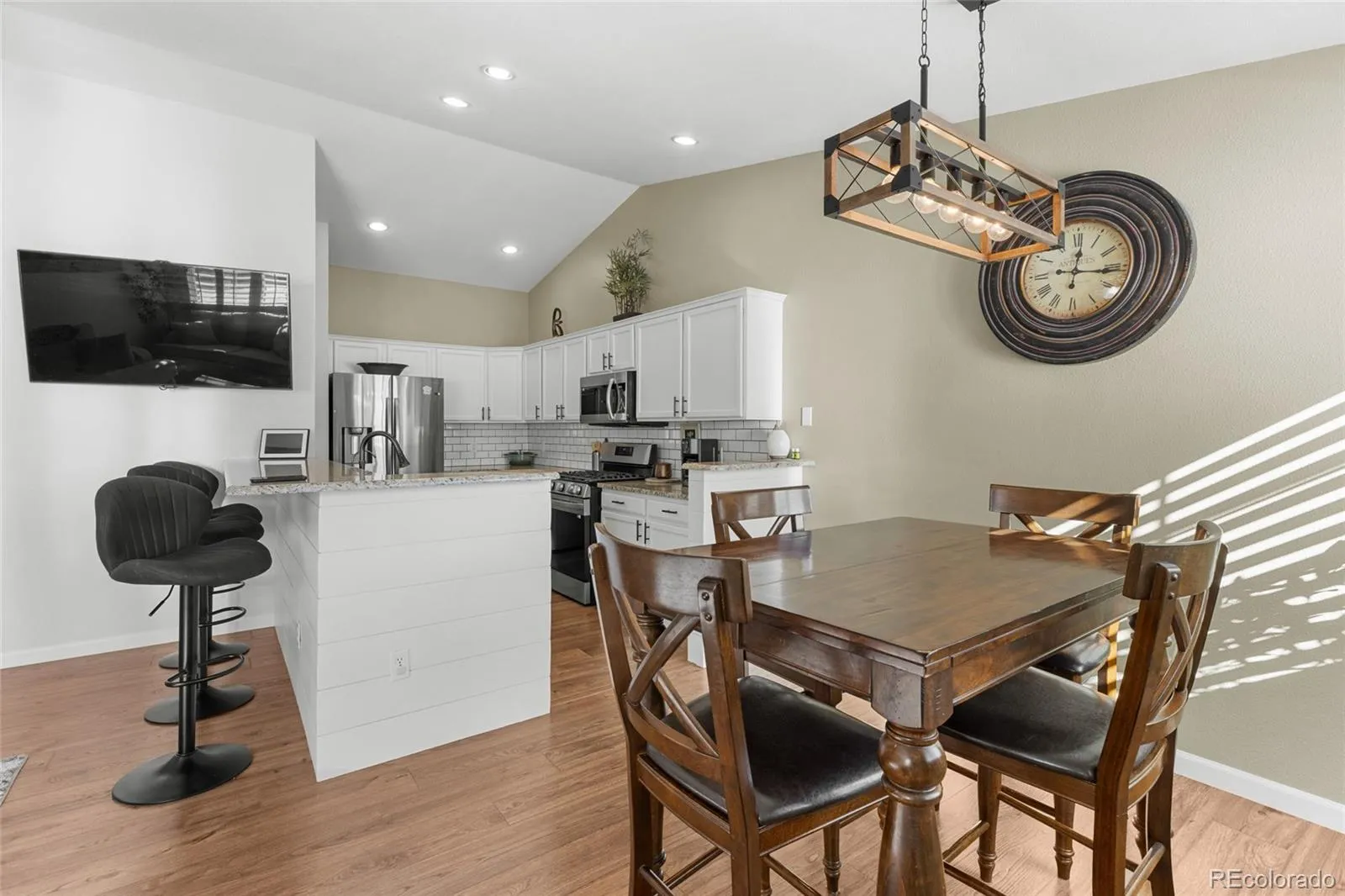 Welcome home to this rare ranch home that lives large with generous finished space, four bedrooms, and three bathrooms, thanks to a fully finished basement that truly feels like additional living space or a mother-in-law suite. Step inside and you’ll immediately notice the soaring vaulted ceilings in the living room and an open layout that flows comfortably into the dining area and kitchen, making the home feel bright, inviting, and easy to live in. The primary suite features a bay window, a spacious walk-in closet with a custom closet system, and a private full bath with excellent storage. A second main-floor bedroom and an additional full bath provide a practical setup for guests or a home office.