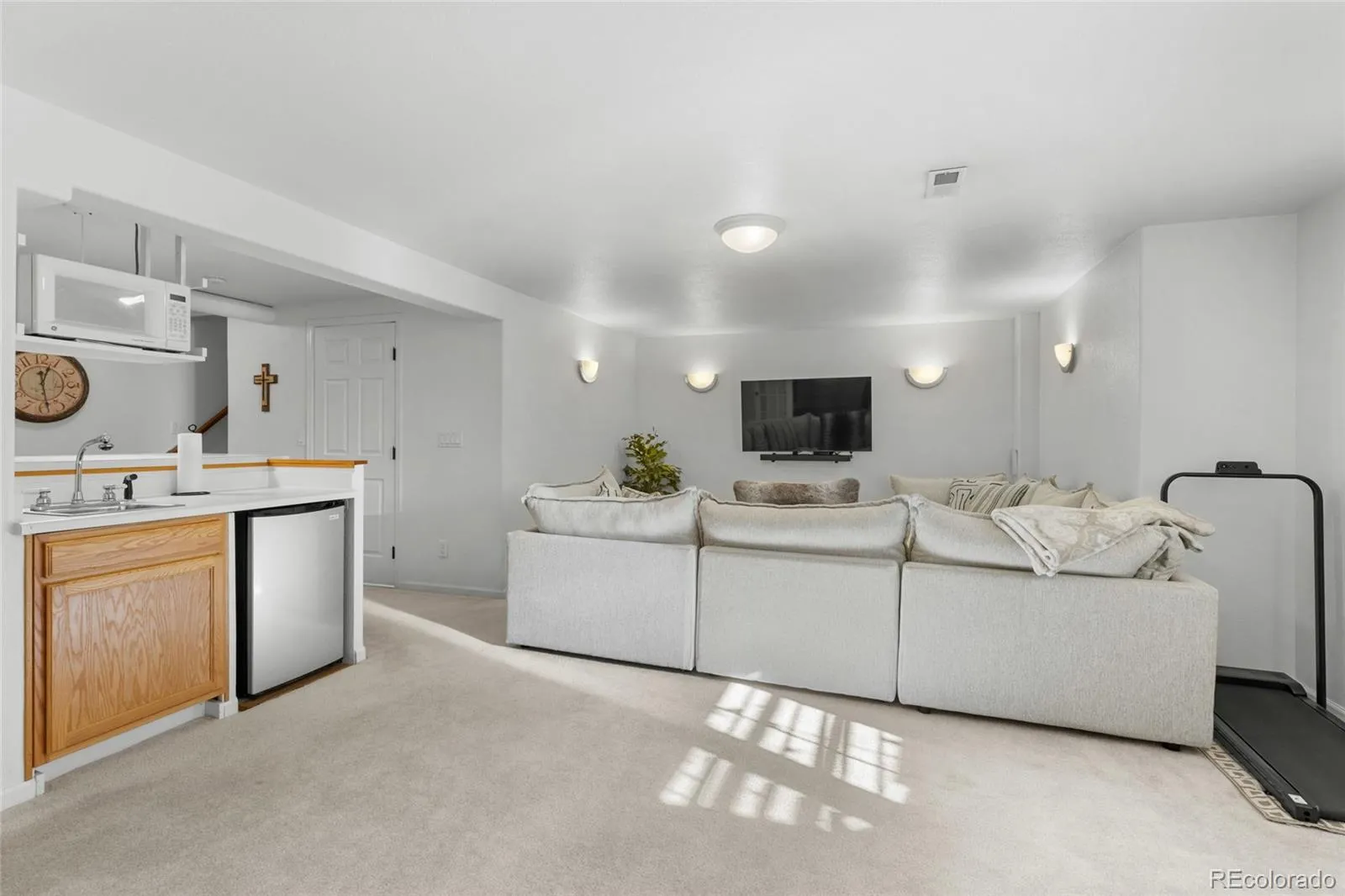 Downstairs, the finished basement is a standout with a spacious family room accented by sconce lighting, plus an impressive wet bar island complete with a sink, disposal, beverage refrigerator, microwave, dishwasher, and generous cabinetry. The basement stays light and bright with egress windows and offers two additional bedrooms, including a large bedroom with a walk-in closet, plus a conveniently located three-quarter bath. You’ll also appreciate the unfinished storage area with a utility sink, ample shelving, and an included freezer.