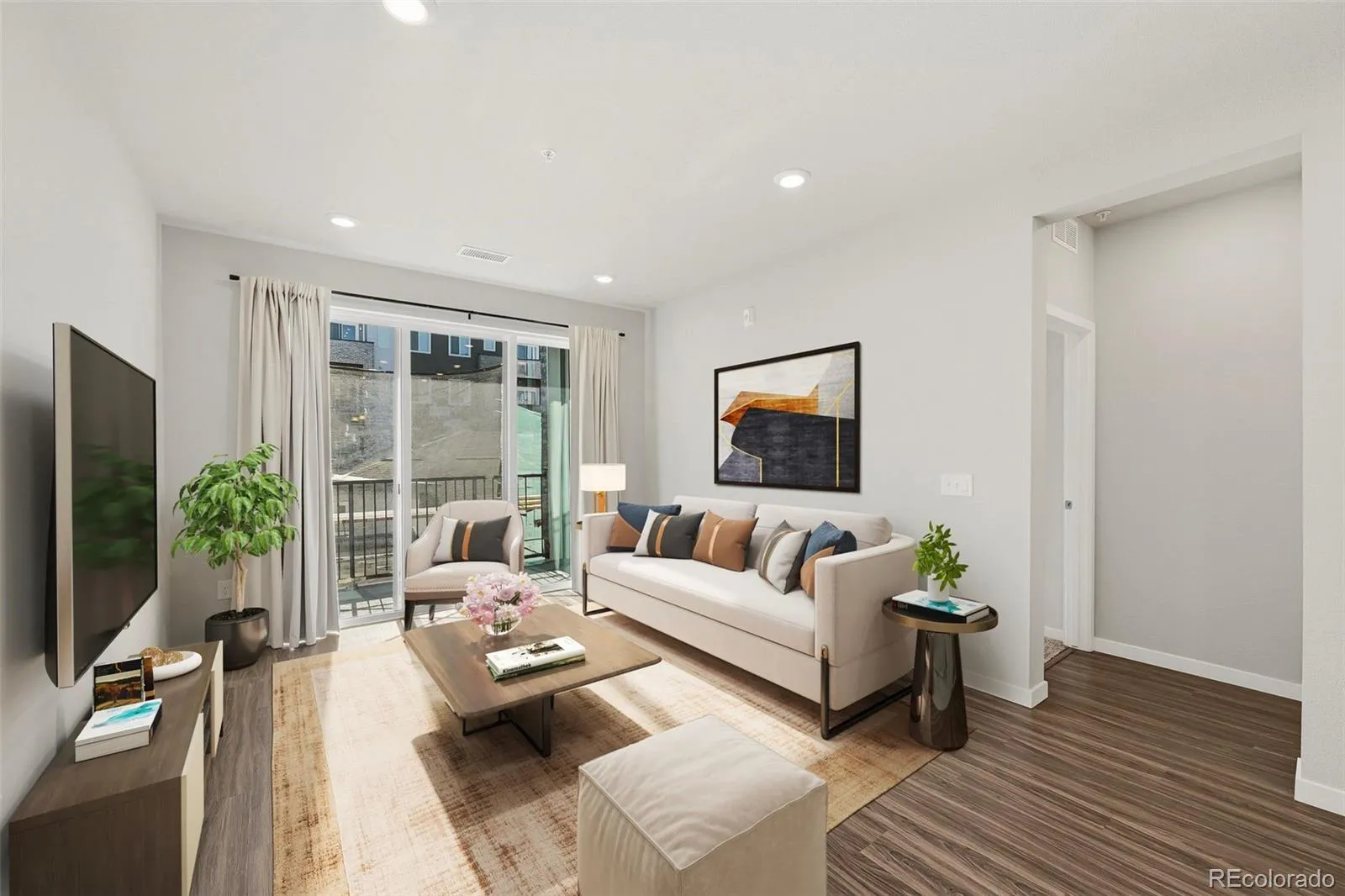Set in the heart of Littleton Village, this nearly new luxury 2-bedroom, 2-bath home offers effortless living in one of the area’s hottest communities. Thoughtfully designed and impeccably maintained, the home is truly move-in ready including a brand new dishwasher amongst other new appliances. // Stepping in you’re greeted by the open-concept kitchen with quartz countertops, stainless steel appliances, and a generous island, ideal for everyday living or entertaining. High ceilings, south-facing windows and a seamless floor plan create a bright, airy feel, while in-unit laundry (new washer ’24) adds everyday convenience. // The separate-sides bedroom layout provides privacy and peace. The primary bedroom includes a primary suite with dual vanities and large walk-in closet. The secondary, spacious bedroom is a perfect flex room (office, crafts, etc) and includes an en-suite bathroom and large closet. // Step outside to your private, south-facing balcony—the perfect spot to enjoy Colorado sunshine year-round. Residents also enjoy exceptional amenities, including a high-end fitness center, a stylish rooftop lounge with fire pit and BBQ, secure entry, elevators, and an indoor community garage with EV charging. Additional perks include a storage locker, covered bike storage, playground, dog park and green space just across the street, plus snow removal and trash service included. The building and HOA are Pet-friendly as well. // With modern finishes, minimal wear-tear (new dishwasher, HVAC serviced and new garbage disposal), no stairs and low-maintenance ownership, this condo is an ideal opportunity for first-time buyers, those moving up from apartment living or investors seeking a high-quality, low-hassle property.