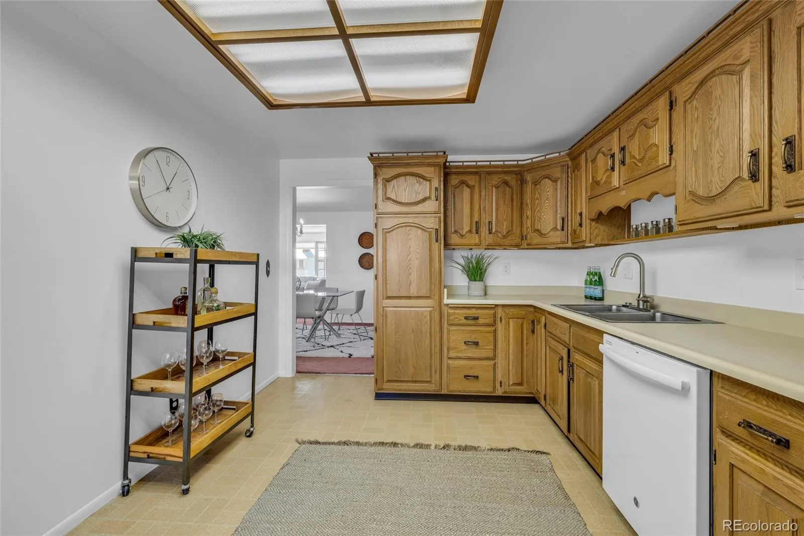 Located in an established southeast Denver neighborhood, this well-cared-for home offers a functional layout, timeless appeal, and a wonderful opportunity for today’s buyers. The bright, south-facing front of the home features a large picture window that fills the main living space with natural light, creating a warm and welcoming first impression. Main-floor features two bedrooms and two bathrooms, including a generously sized primary suite with its own ensuite bath – hard to find in this style home! Just off the kitchen, you’ll find a cozy family room that adds warmth and flexibility to the living space—perfect for everyday living, movie nights, or casual gatherings. The kitchen offers a practical, easy-to-live-in layout that has been well maintained over the years. As a bonus, the walls have been freshly skim-coated and painted crisp white, giving the home a clean, bright, move-in-ready feel. Downstairs, the basement provides ample storage along with additional potential for future living space. Whether you envision a home office, gym, guest area, or recreation space, this level offers flexibility to grow with your needs. A third bedroom space is partially finished, and rough-ins are already in place for a third bathroom. Recent exterior improvements include a newer roof and heated gutters, offering added peace of mind for the next owner. Outside, the backyard is a true highlight, featuring a lovely deck and a spacious, private setting—ideal for entertaining, relaxing, gardening, or enjoying Colorado’s beautiful seasons. Lovingly owned by the same family since 1972, this home reflects pride of ownership and thoughtful care throughout the years. Conveniently located near parks, trails, shopping, dining, and major commuter routes, it offers easy access to everything you need while still feeling tucked into a residential setting. Whether you’re a first-time buyer or someone with vision, this home presents a unique opportunity to create something special.