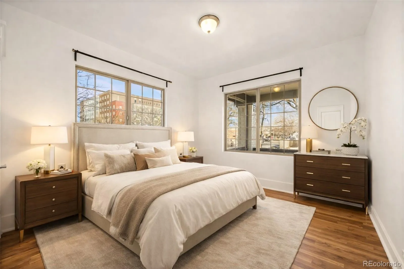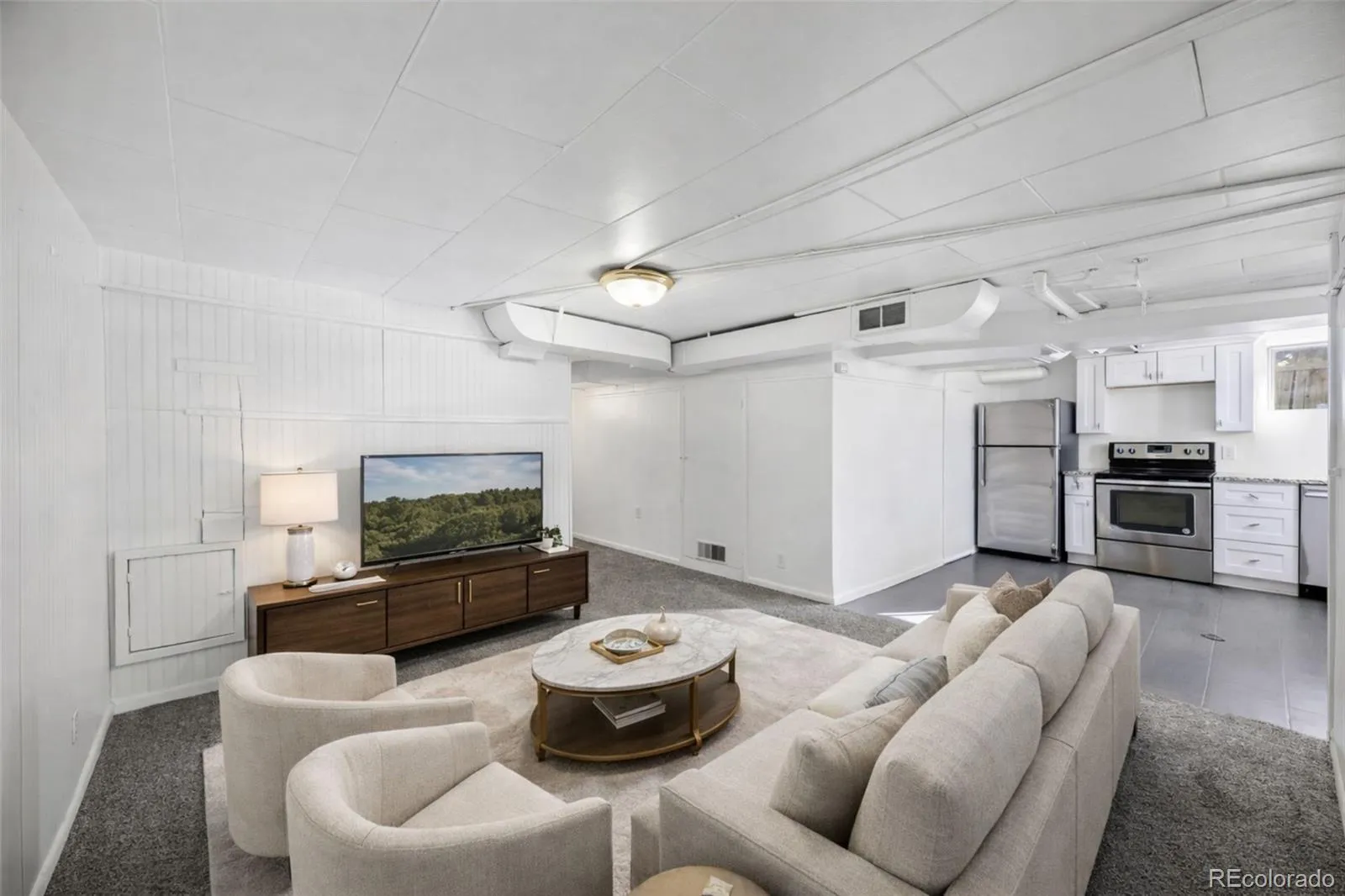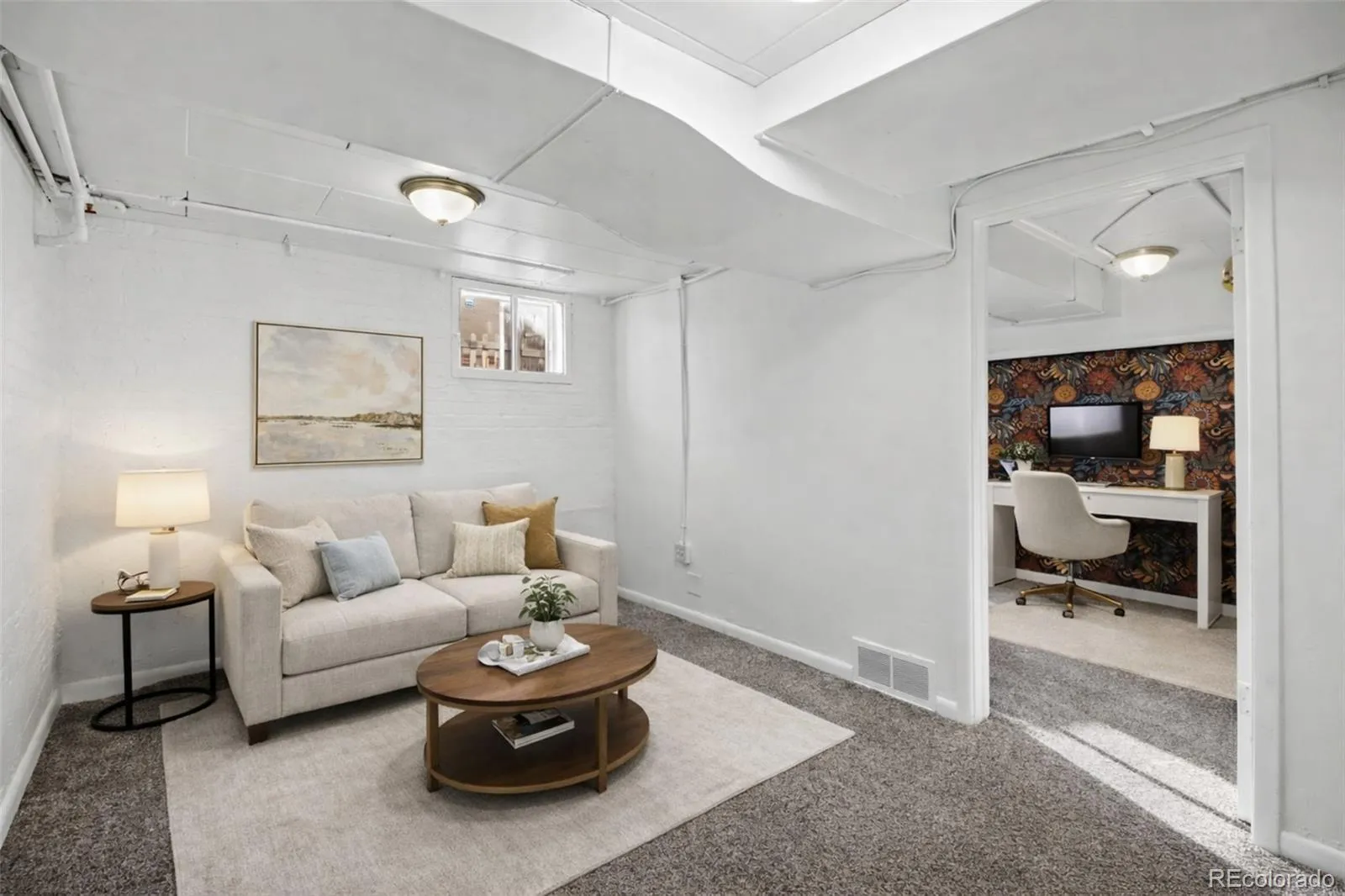 Welcome to this original 1923 Bungalow style home, rich with timeless character and thoughtfully refreshed for modern living. A large covered front porch sets a welcoming tone, while new interior and exterior paint adds a clean, updated feel. The new roof provides peace of mind. The main level features original wood floors, casement windows, and a striking brick Craftsman-style wood fireplace surround anchoring the living space. Rare antique Pilkington privacy glass faces south, filling the living area with soft natural light while preserving privacy. The kitchen showcases built-in storage, highlighted by vintage golden quilted glass cabinetry and stone countertops, blending historic charm with everyday function. There is a main floor primary and a storage attic for convenience. The lower level is smartly designed with a privacy door at the top of the stairs and a separate rear stair entry, making it ideal as a Basement suite with kitchenette, Airbnb, multi-generational living, or Mid Term Rental, while still allowing everyone back yard access. The lower level includes a full eat-in-kitchen with appliances, living room, bedroom, full bath, and washer/dryer, offering excellent versatility. Outside, enjoy a large, sunny, fenced private yard, perfect for relaxing or entertaining. Parking is exceptional with a 2-car garage, four additional driveway spaces, and a gated RV parking spot. Ideally located three blocks to the Perry Light Rail Station and Sloan’s Lake, one block to bus access, and just one block to the Alamo Drafthouse, restaurants, and nearby shopping—this home combines classic Denver architecture with unbeatable convenience.