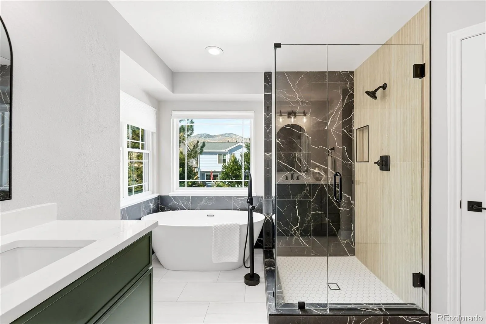 Nestled in the heart of Ken Caryl Valley, this stunning four bedroom, four bath home has been thoughtfully reimagined with extensive renovations throughout. Beautiful new floors flow through the main living spaces, complemented by fresh interior paint, new handrails, and designer lighting. At the center of the home lies an exceptional chef’s kitchen designed to impress, from the high-end Dacor range and oven to the Bosch dishwasher that makes cleanup a breeze. A generously sized island anchors the space, offering the perfect setting for entertaining, while new modern cabinetry and abundant storage strike a flawless balance between style and practicality. The kitchen opens to the family room, where a gas fireplace and plantation shutters create an inviting living space. The spacious primary suite is a serene retreat with vaulted ceilings and a spa inspired bathroom with a luxurious soaking tub, expansive shower, custom tile work, dual vanities, and refined finishes. Outdoor living beckons with a heated paver patio, where a gas fire pit and built-in heaters set the stage for year-round enjoyment. An outdoor kitchen with a built-in grill and mini refrigerator makes hosting effortless, whether for lively summer gatherings or intimate evenings beneath the stars. The finished basement is ready to be tailored to your lifestyle, featuring a rec room with a wet bar, ideal for a pool table or home theater, plus a bonus room perfect as a workout space or a craft room. Major systems have been updated, including a tankless water heater, furnace, and air conditioner, plus exterior paint in October 2025. This incredible neighborhood offers access to thousands of acres of private open space, 45+ miles of scenic trails, sweeping views, abundant wildlife, and community amenities including pools, tennis, pickleball and basketball courts, an equestrian center, and youth camps. This fully remodeled, move-in-ready home is a true showstopper… nothing left to do but make it yours.