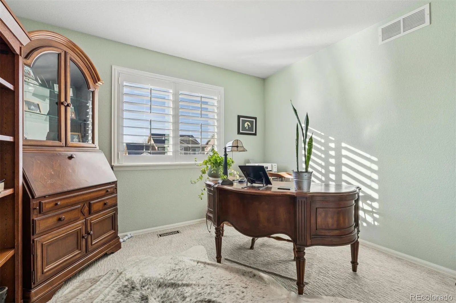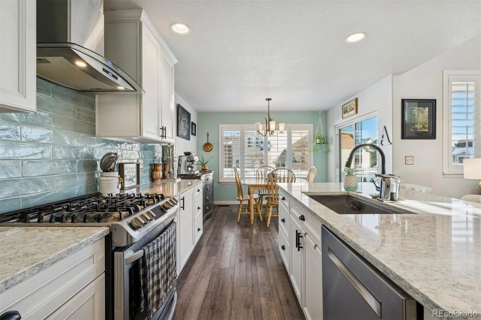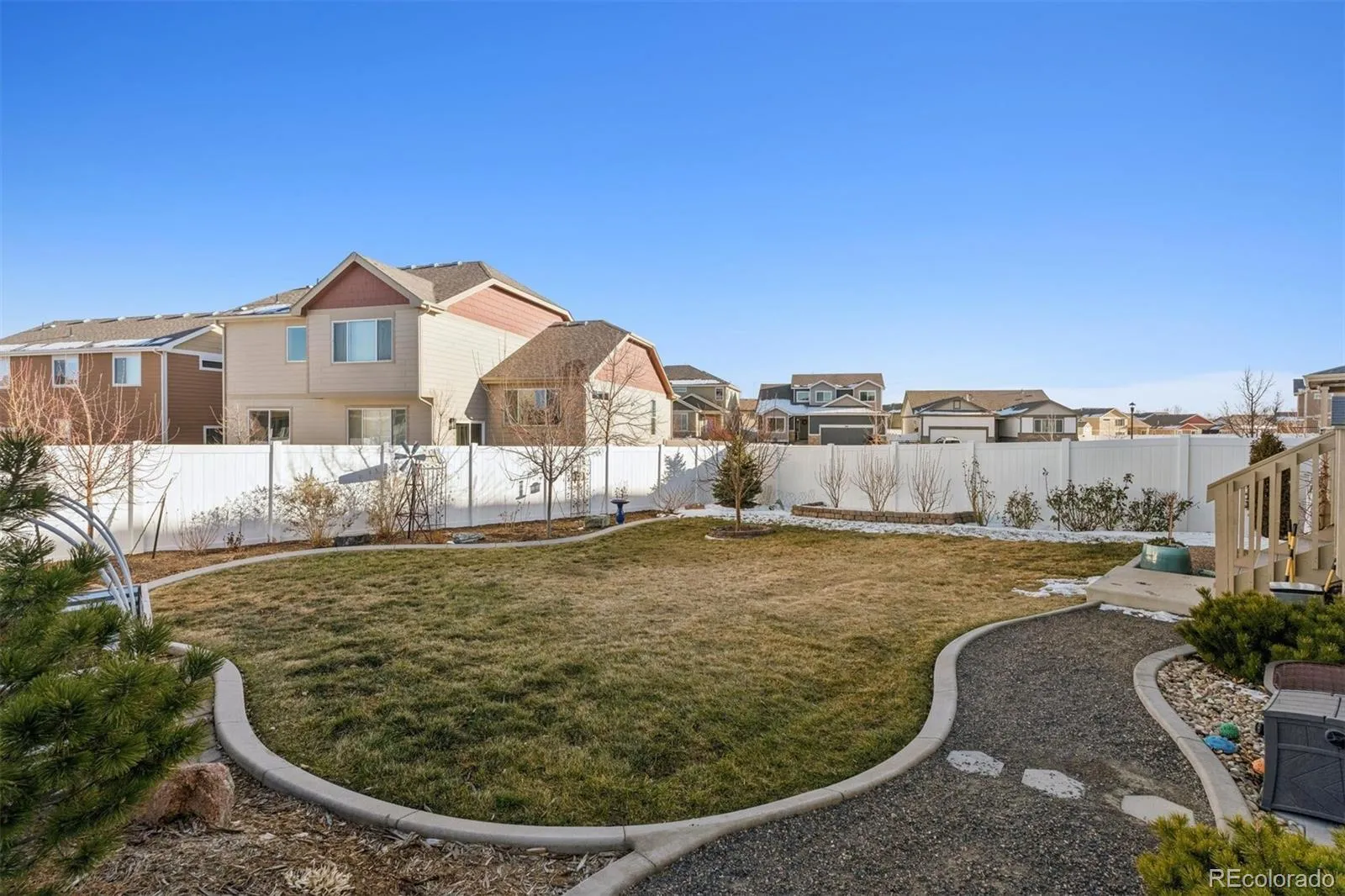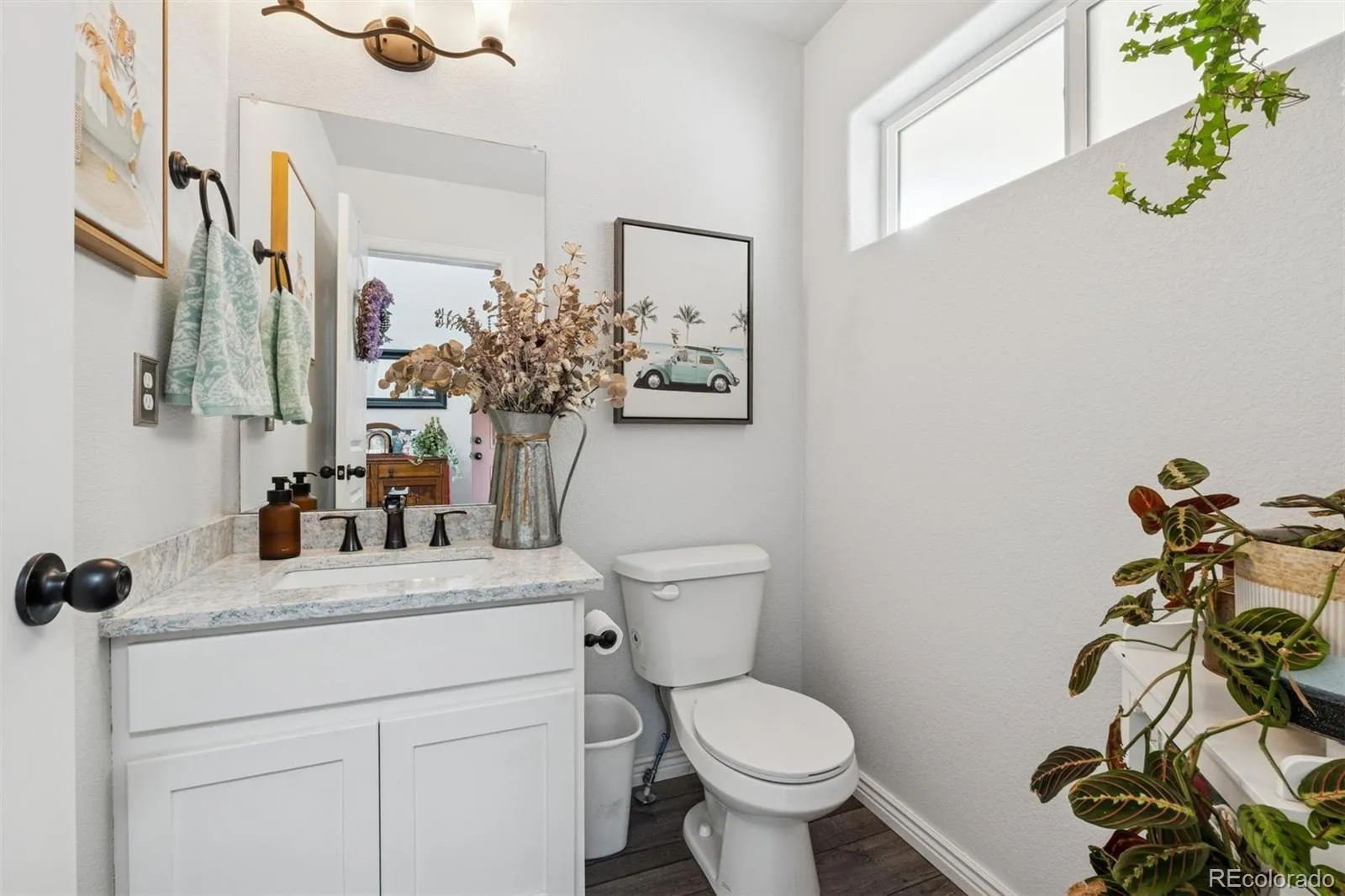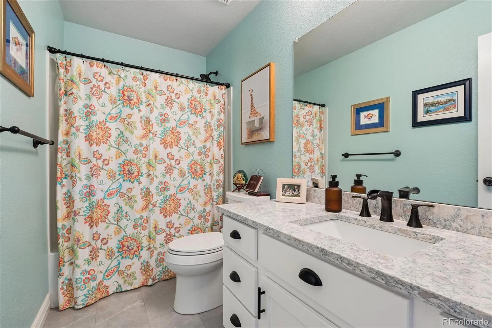 Beautifully updated 3-bedroom, 3-bath home featuring new flooring, elegant plantation shutters, and fresh finishes throughout. The kitchen shines with new cabinets, quartz countertops, a center island, and a gas range/oven-perfect for entertaining. Both the primary bath and guest bath have been upgraded with all new tile floors for a crisp, modern feel. The full unfinished basement includes a bath rough-in, offering room to expand or customize. Outside, enjoy a meticulously manicured, fully fenced yard with garden beds and clean concrete edging that elevates the outdoor space. Located just minutes from downtown Loveland with trails nearby, this home blends comfort, style, and convenience.