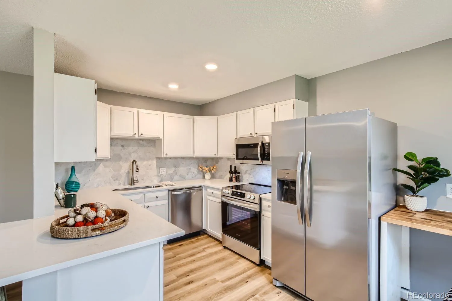 Natural Retreat with Urban Access! Updated 2 Bed – 2 Bath Condo loaded with natural light backing to the 9th hole of Heather Ridge Golf Course. Easy access to Shopping, Restaurants, various Transportation Hubs, nearby Overland Campus and local Schools, University of Colorado Anschutz Medical Campus, Rocky Mountain Regional VA Medical Center, and various other Medical Campuses, Hospitals and specialty Care Facilities, Aurora Metro Center and various other Community Centers, all insulated with the lush natural landscape of Heather Ridge Golf Club Greenbelts, Accessible Outdoor Parks and Recreation area(s), and Jewell Natural Wetlands Area. Lock & Leave lifestyle offers minimal maintenance and clever convenience — Brand New Custom Privacy Blinds Included, Newer SS Appliance Package, Luxury Vinyl Plank, Carpet in Bedrooms, Countertops, Vanities, Closet Built-ins for storage, Interior paint, and more. In-Unit, private-use Clothes Washer and Clothes Dryer. Unit includes one Covered parking space, and one open air parking space, both are deeded. HOA Fee Includes Utilities and Heating.
