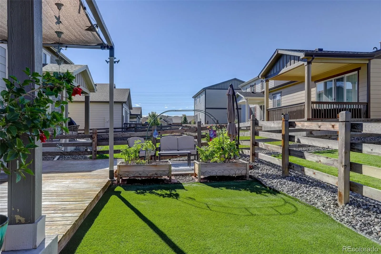 This beautifully cared-for two-story home in Copperleaf checks every box with a versatile layout, stylish finishes, and an exceptional location. Offering four bedrooms and three bathrooms, the thoughtful floor plan includes a main-level bedroom and bath—ideal for guests, multi-generational living, or a private home office. The main floor features modern luxury vinyl plank flooring and an open-concept design that keeps everyone connected. At the heart of the home is a gorgeous kitchen with quartz countertops, a large island, crown-topped cabinetry, and a classic tile backsplash, all flowing seamlessly into the living and dining areas—perfect for entertaining or everyday living. Upstairs, the spacious primary suite offers a private retreat, complete with a well-appointed bath featuring Corian countertops and dual sinks. A secondary hall bath is equally functional and stylish, also showcasing Corian counters and double sinks—ideal for busy mornings. Ceiling fans throughout, a generous laundry room, a recently cleaned and certified furnace, and a two-year-old roof add comfort and peace of mind. A crawl space provides valuable extra storage. The outdoor space is a true standout, featuring low-maintenance artificial turf, a covered patio, and a shaded deck extension—plus an additional patio seating area—creating multiple inviting spaces to relax and entertain. Even better, the home sits just across from open space, with a community park conveniently located at the end of the street.