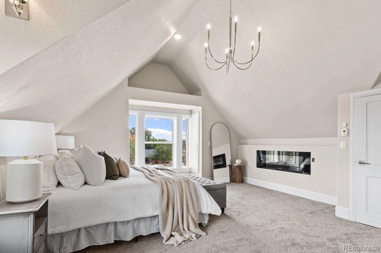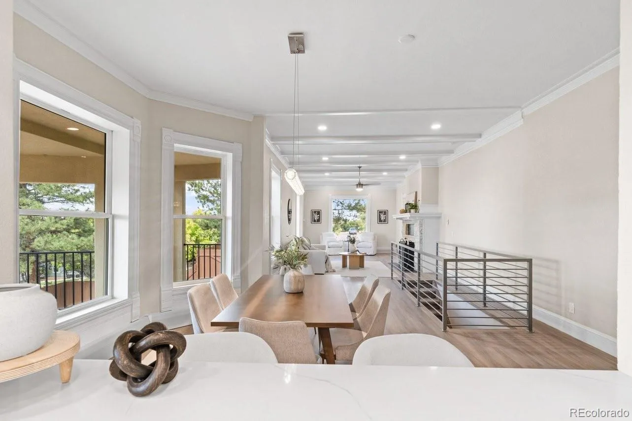 views galore. The beautifully restored raw marble fireplace takes center stage, illuminated by an abundance of natural light pouring in through the newly installed windows. Soaring beamed ceilings, elegant crown molding, and multiple entertainment areas create the perfect setting for unforgettable gatherings. The gourmet kitchen is a culinary dream come true, equipped with top-of-the-line stainless steel appliances, a gas range, and double oven. Additional features include quartz countertops, soft-close cabinets, and a stunning island perfect for food preparation and storage. The kitchen seamlessly transitions to a covered balcony, where breathtaking mountain views await. A breakfast nook and formal dining area, complete with a glamorous LED pendant light, provide the perfect spaces for everyday meals and special occasions. The primary bedroom is a serene retreat, boasting high vaulted ceilings, large windows, and a calming neutral color palette. The sleek primary bathroom features a modern walk-in shower, frameless doors, and ample space for relaxation. A freestanding tub invites you to unwind and rejuvenate. With brand-new, state-of the-art air conditioning units, this incredible home is summer-ready, ensuring unparalleled comfort for you and your loved ones. Multiple walk-out covered patios beckon you to enjoy the beautiful outdoors. This exceptional residence is close to