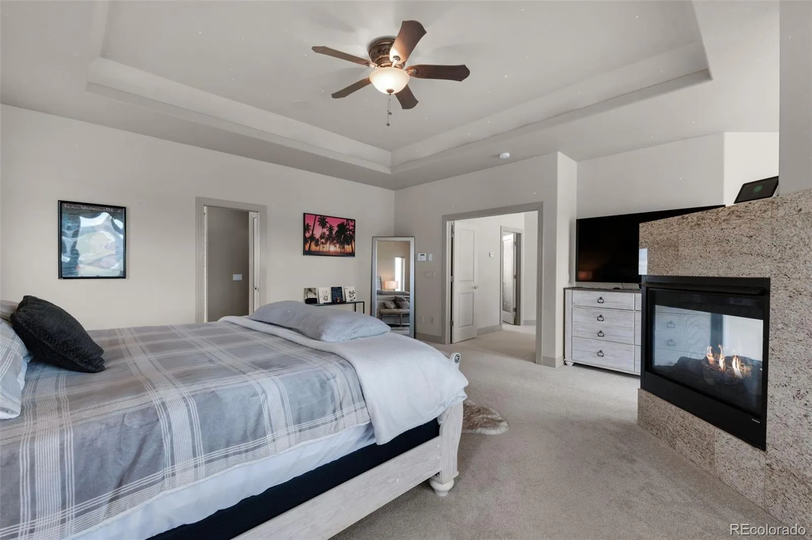This expansive ranch-style home features true main-level living with an open floor plan, vaulted ceilings, large windows, central air conditioning and multiple gas fireplaces. The main level showcases a private primary suite designed as a retreat, complete with its own fireplace, sitting area with mountain views, spacious walk-in closet and a spa-inspired five-piece bath with jetted tub, dual shower and dual vanities.