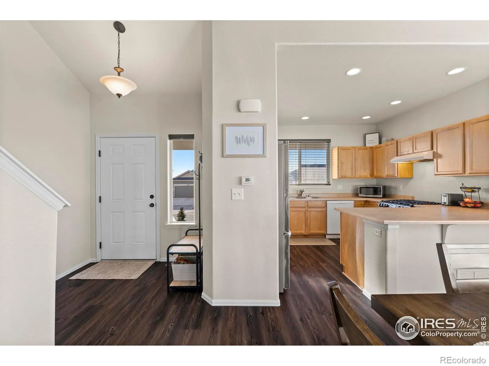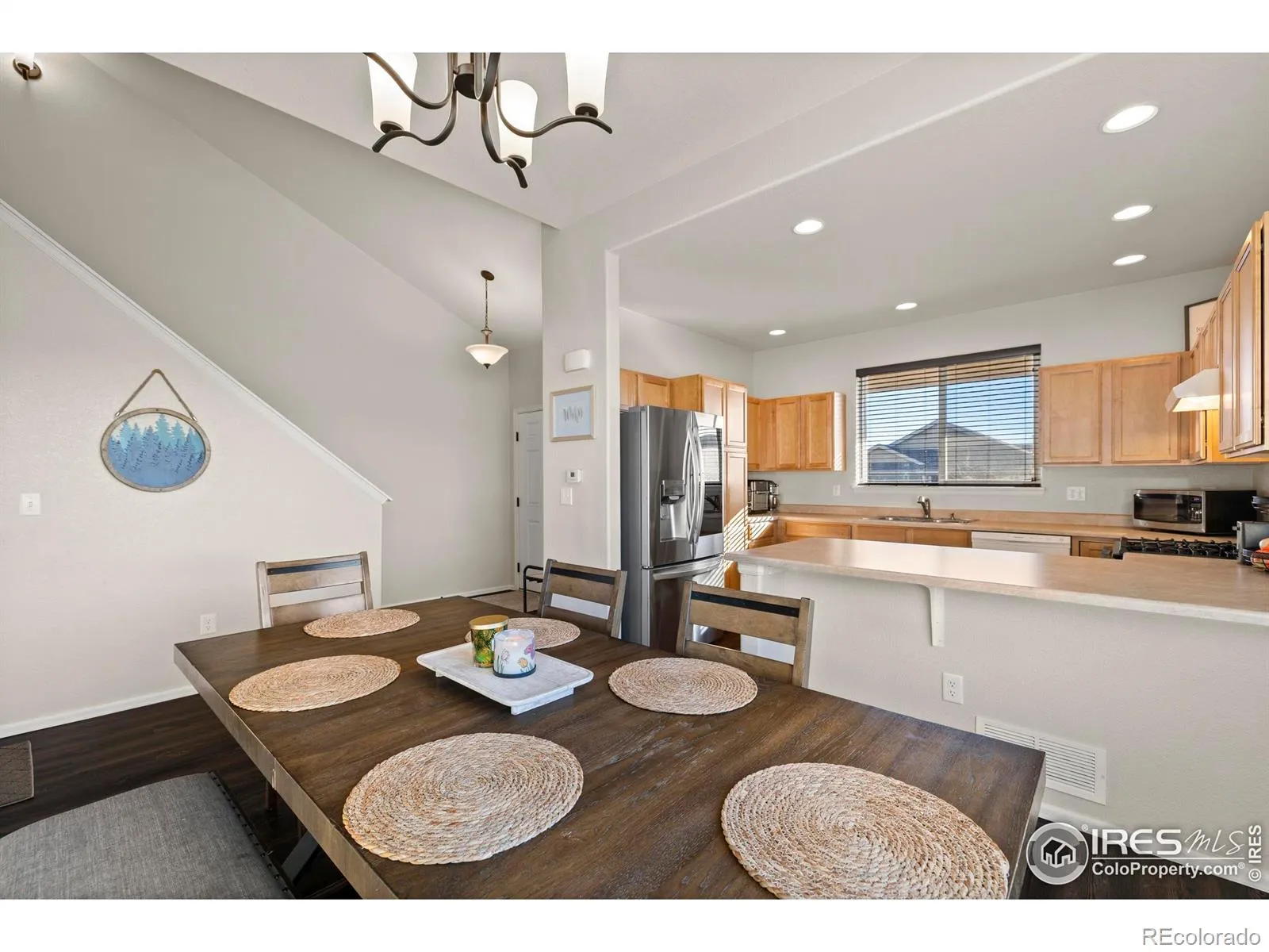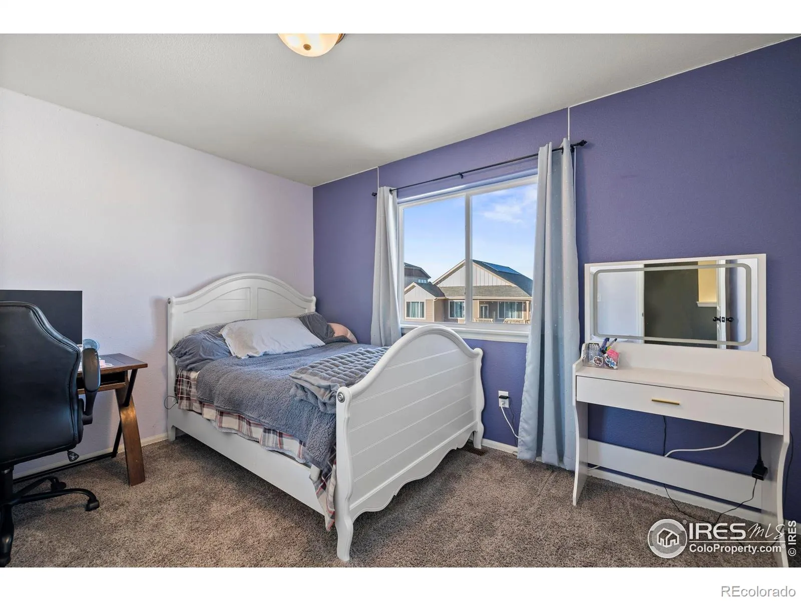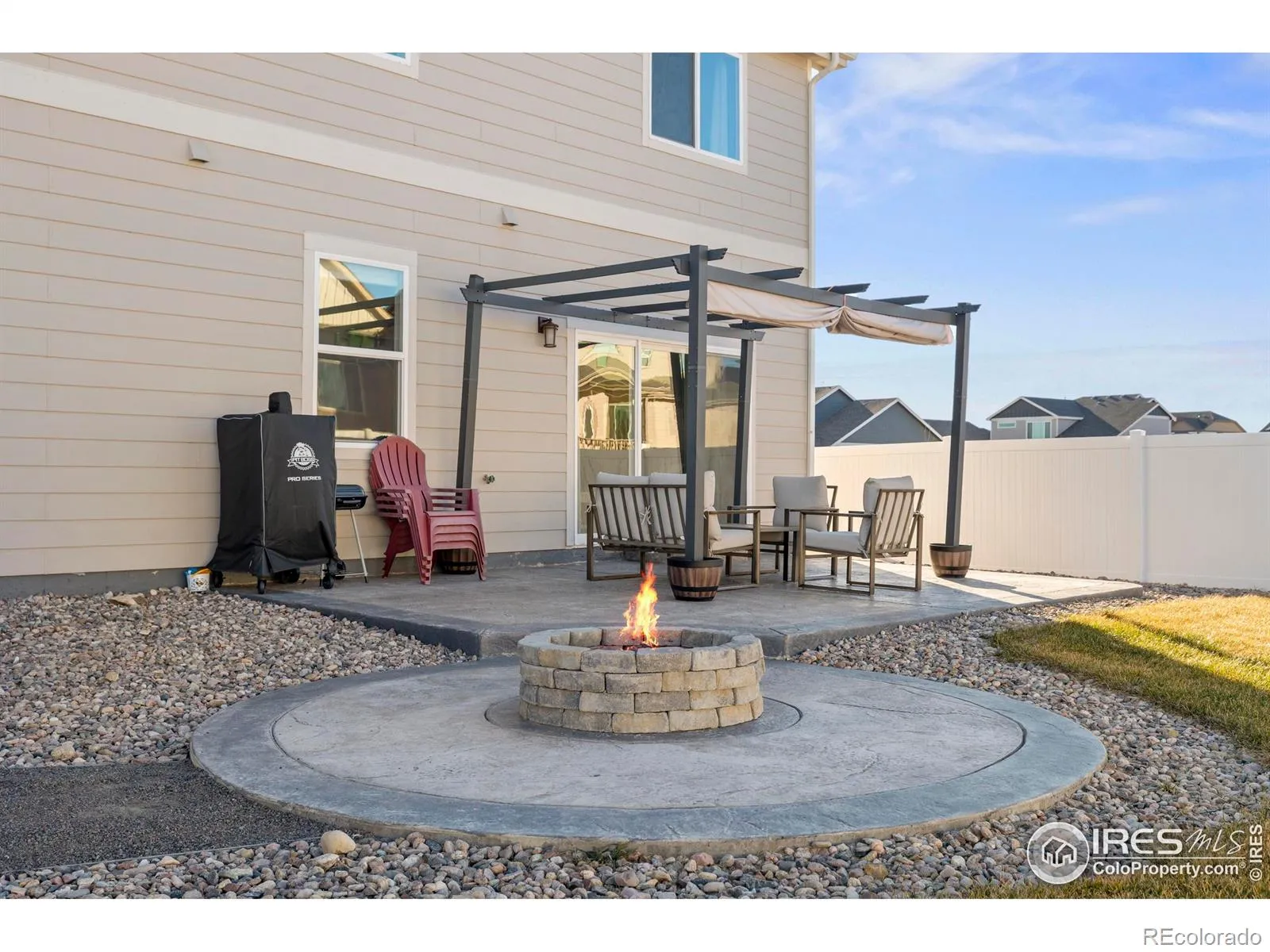 This home is truly Better than New! What makes us say that? Well, the owner has already done a lot of the hard work! Upgrades already in place include landscaping, fencing, window coverings, plus a beautiful custom back patio with built in firepit area that rivals any other in the neighborhood. Skip the build time, this home is move-in ready with immediate possession. Located in an established neighborhood, pride of ownership is obvious in this home. Spacious open-concept floor plan with room for everyone to enjoy their own space. Bright, airy rooms designed for family comfort. Large 3 car garage as well as expansive fenced in backyard ideal for summer BBQ’s or roasting marshmallows at night over the built in cozy firepit. Conveniently located with easy access to shopping, I-25, and Highway 34, this property offers both comfort and accessibility. The vacant lot next door is .5 acres owned by the HOA.