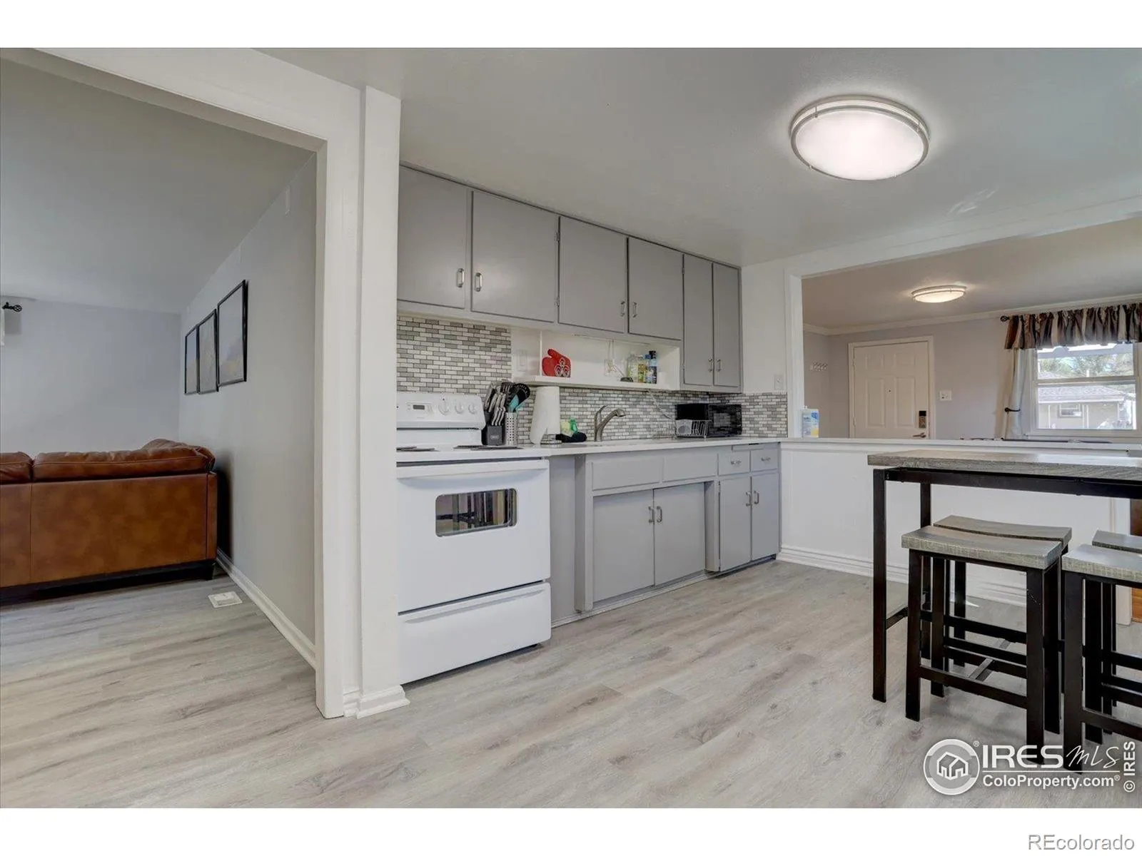Welcome to 6940 West 55th Place – Move-In Ready Perfection in Arvada! Discover single-level living at its finest in this beautifully renovated 2-bedroom, 1-bath gem offering 1,006 square feet of thoughtfully designed living space. This turnkey home has been meticulously updated throughout and comes fully furnished with all kitchenware and cookware – simply bring your suitcase and start living! Interior Highlights: Step inside to an open, free-flowing floor plan featuring gleaming hardwood floors that flow through the living room, dining room, and both spacious bedrooms. The modern kitchen is a chef’s delight with a breakfast bar, stunning quartz countertops, generous pantry storage, and all appliances included. Luxury vinyl plank flooring extends into the expansive family room, creating a perfect space for relaxation and entertaining.The gorgeously updated bathroom showcases custom tile work, designer tile floors, a pedestal sink, and a full bath/shower/tub combo. Throughout the home, you’ll appreciate the modern custom light fixtures, sophisticated gray and white paint palette, and the classic touch of crown molding in the bedrooms and living room. Energy-efficient double-pane windows are dressed with higher-end window coverings and stylish drapery. Practical Features: Both bedrooms are generously sized with ample closet space, and one bedroom features convenient built-ins. A separate laundry room adds functionality to this well-designed home. Prime Arvada Location: Enjoy the perfect blend of suburban tranquility and urban accessibility! Located just 15 minutes from the G Line light rail station in Old Town Arvada, you’re only five stops from downtown Denver. Big-box shopping and diverse restaurants are nearby, and easy I-70 access opens the door to downtown Denver or weekend adventures in the Rocky Mountains. Don’t miss this rare opportunity to own a completely updated, move-in ready home in one of Arvada’s most convenient locations!