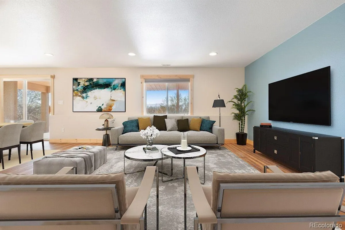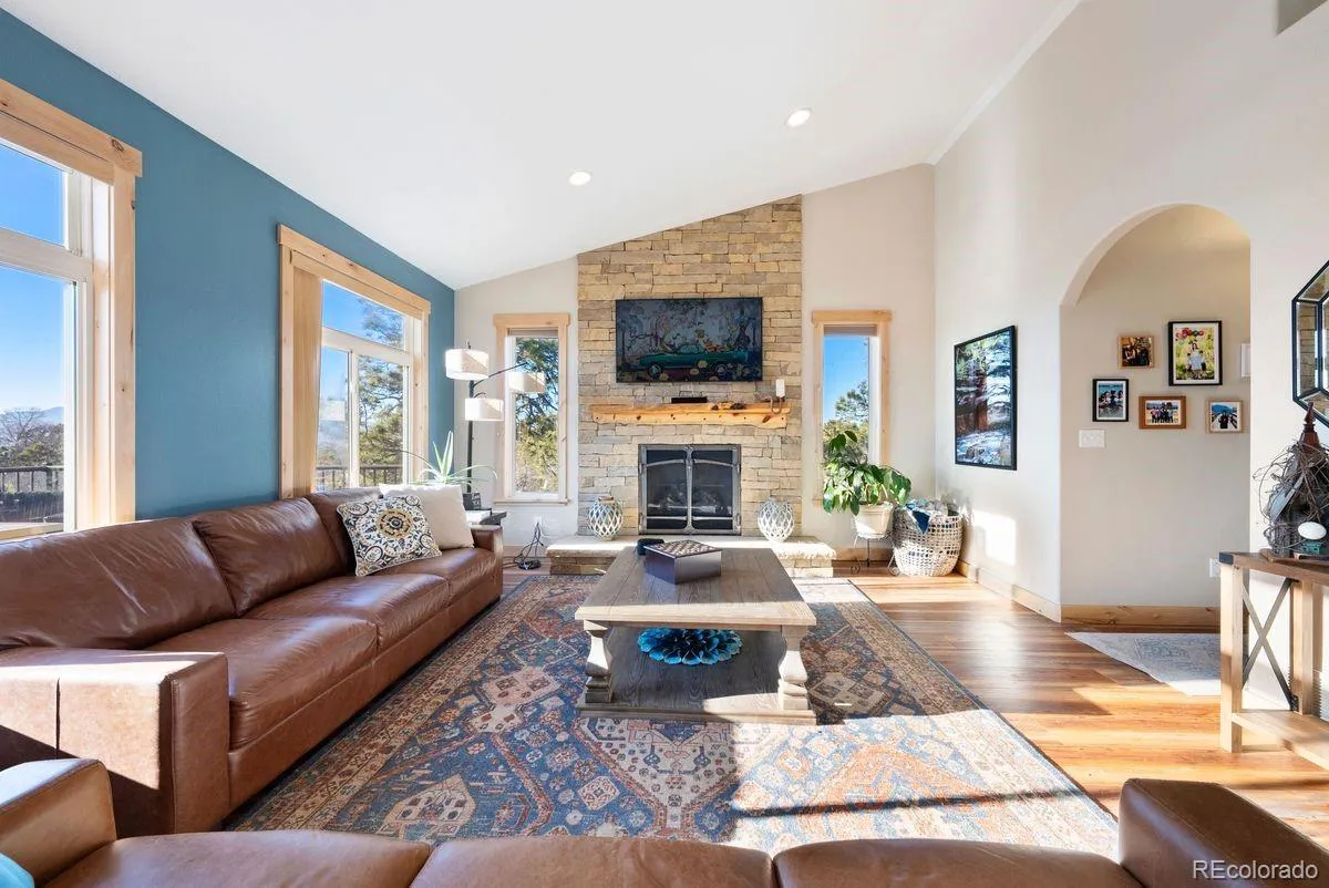 The most sought after and desirable location in Western Black Forest w/ 5 treed and meadow acres, tremendous sweeping views of Pikes Peak, the front range and city lights, a custom built 4,000 rancher w/ walk-out lower level, 3,100+ sq ft RV garage w/ heated workshop, 1,400+ sq ft barn w/ 4 stalls, a second 4 stall barn. The best of both worlds living on beautiful close-in acreage at the edge of the city w/ convenient access to everything you need. Beautifully remodeled home. High end kitchen remodel w/ high quality cabinetry, a very rare slab granite with copper veins, marble backsplash, under cabinet lighting, massive entertaining island, 2 sinks, copper farmhouse sink, high end Miele appliances, a built-in espresso machine, custom hood, cabinetry paneled Miele refrigerator. New interior doors, hardware and trim throughout. Luxury vinyl floors. 5 bedrooms (3 on the main level), newly remodeled primary bath, 4 total baths, central A/C, 13 car garage. Jaw dropping views from all southwest facing windows and the new 42×16 composite and metal deck. New lower level stamped concrete patio and fenced dog yard. New oversized 4 panel sliding door system in dining room w/ double opening. High end fireplace and stone surround in great room. No covenants or HOA. Huge RV garage workshop w/ electric, a heated workshop, 3 large oversized overhead doors – room for RV’s, boats & more! Two barns – one barn w/ 4 stalls, water, electric, hay storage, runs and room to add more stalls. Secondary 4 stall barn. Only minutes from Northgate, the Air Force Academy, Flying Horse Signature Golf Course. Close to Black Forest Regional Park. Quick access to Highway 83, Powers and I-25 making an easy commute to Colorado Springs or Denver. Award winning School District 20. Perfect mixture of Ponderosa Pines, Aspens, Scrub Oak and pasture. Fully fenced and gated acreage. Rarely does a property w/ this location, unbelievable views and amenities come on the market. Zones for horses and other animals.