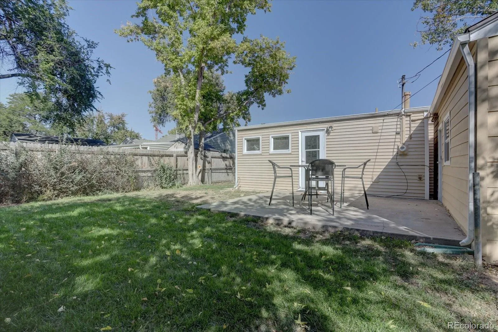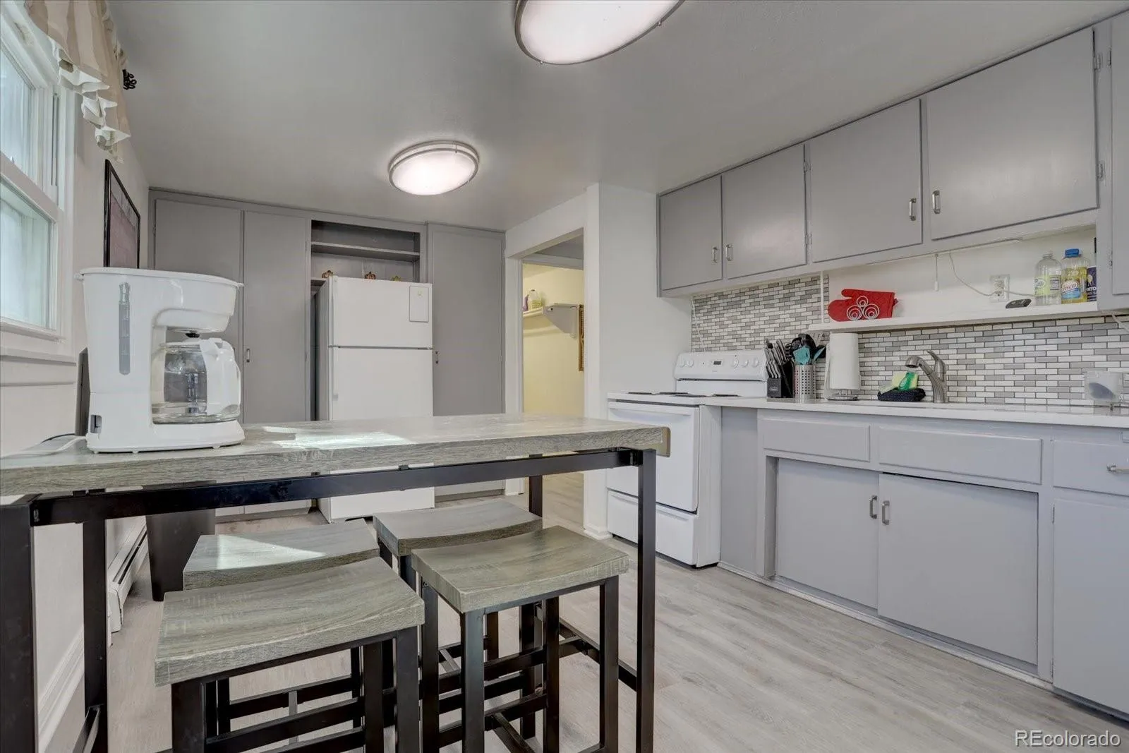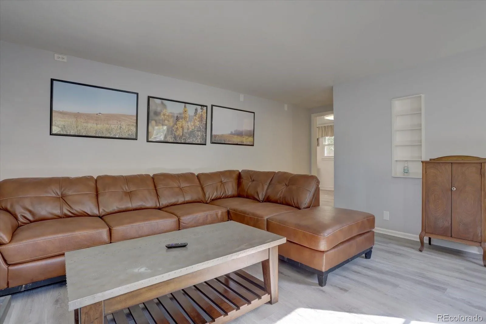 Welcome to 6940 West 55th Place – Move-In Ready Perfection in Arvada! Discover single-level living at its finest in this beautifully renovated 2-bedroom, 1-bath gem offering 1,006 square feet of thoughtfully designed living space. This turnkey home has been meticulously updated throughout and comes fully furnished with all kitchenware and cookware – simply bring your suitcase and start living! Interior Highlights: Step inside to an open, free-flowing floor plan featuring gleaming hardwood floors that flow through the living room, dining room, and both spacious bedrooms. The modern kitchen is a chef’s delight with a breakfast bar, stunning quartz countertops, generous pantry storage, and all appliances included. Luxury vinyl plank flooring extends into the expansive family room, creating a perfect space for relaxation and entertaining.The gorgeously updated bathroom showcases custom tile work, designer tile floors, a pedestal sink, and a full bath/shower/tub combo. Throughout the home, you’ll appreciate the modern custom light fixtures, sophisticated gray and white paint palette, and the classic touch of crown molding in the bedrooms and living room. Energy-efficient double-pane windows are dressed with higher-end window coverings and stylish drapery. Practical Features: Both bedrooms are generously sized with ample closet space, and one bedroom features convenient built-ins. A separate laundry room adds functionality to this well-designed home. Prime Arvada Location: Enjoy the perfect blend of suburban tranquility and urban accessibility! Located just 15 minutes from the G Line light rail station in Old Town Arvada, you’re only five stops from downtown Denver. Big-box shopping and diverse restaurants are nearby, and easy I-70 access opens the door to downtown Denver or weekend adventures in the Rocky Mountains. Don’t miss this rare opportunity to own a completely updated, move-in ready home in one of Arvada’s most convenient locations!