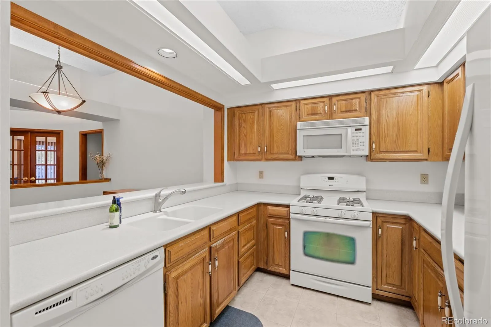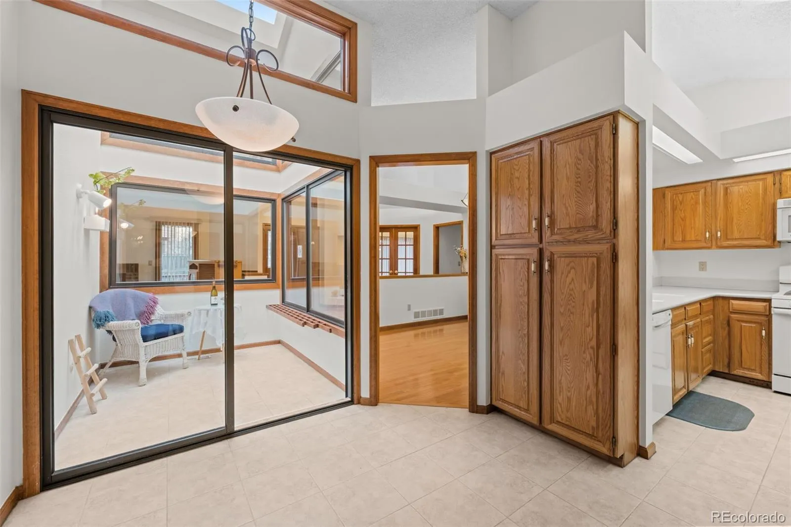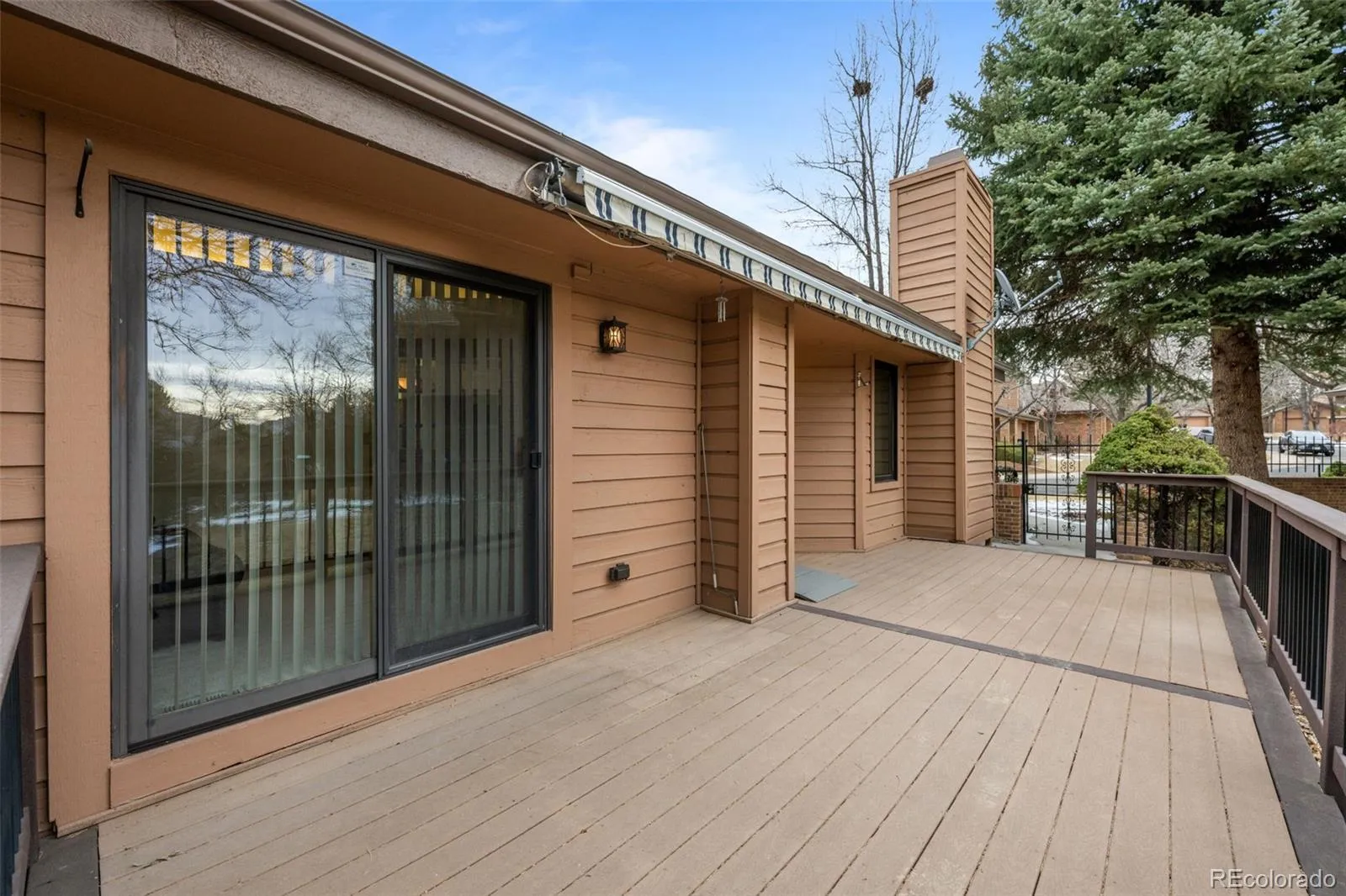 Spacious 3-Bedroom ranch style home in Tamarac Hills–convenient to shopping, Bible Park, Highline Canal, and transportation.** Easy access to DTC and downtown.**Freshly painted and with 3 skylights and lots of windows, this home is light, bright, and welcoming.**If you don’t need 3 bedrooms, the one with French doors makes a great office/den.**The large Trex deck overlooks one of the larger, private, fully-fenced yards in Tamarac Hills.**It is located toward the end of a cul-de-sac. A 20×22 carpeted bonus room occupies about one-fourth of the full basement, with another 800 SQ FT available to finish as you wish. It includes rough-in plumbing for a bath and an egress window if you want to add a bedroom–with plenty of storage space remaining.**The skylights have a sensor, which will close them when it rains, and there is information in the kitchen pantry for how to close the skylights manually.**The glass enclosed room off the kitchen was used for growing plants indoors. The neighbors in #8 had a similar room which they enclosed and made it into a large pantry.**With a pool, tennis courts, and small park-like common areas, Tamarac Hills feels like a private refuge from the bustle of the nearby businesses.**Take a quiet walk inside the community or cross the street to the Highline Canal and Bible Park.