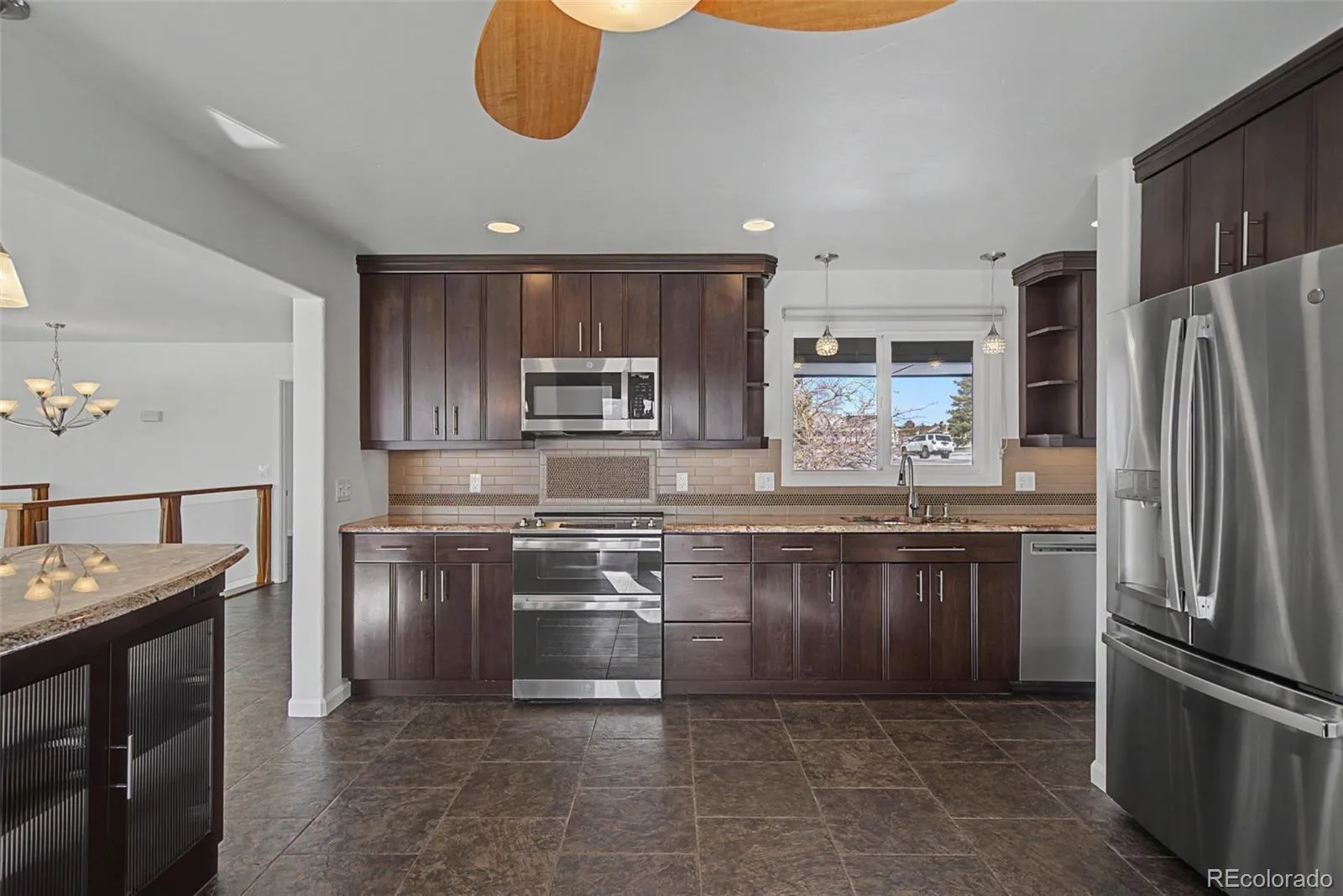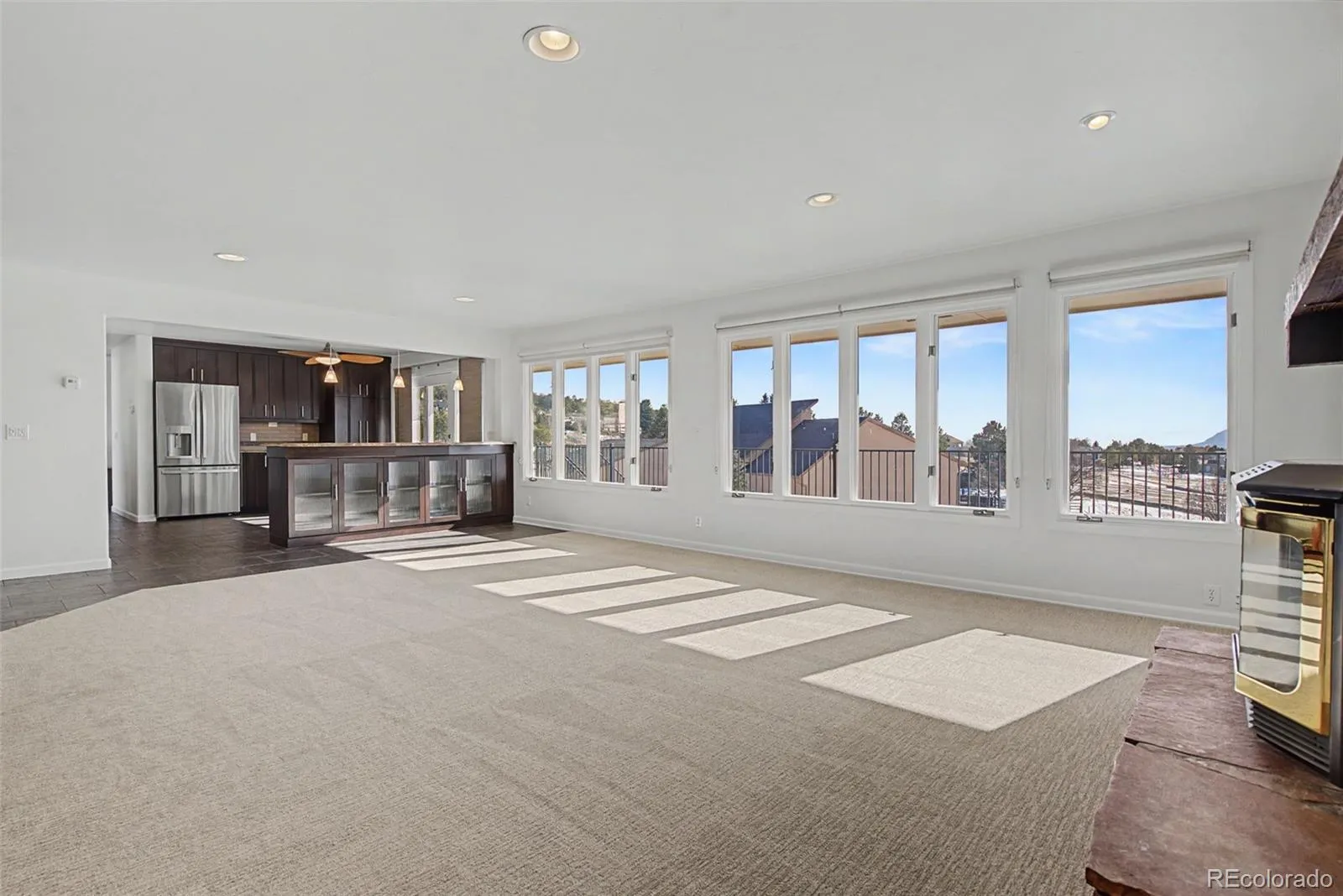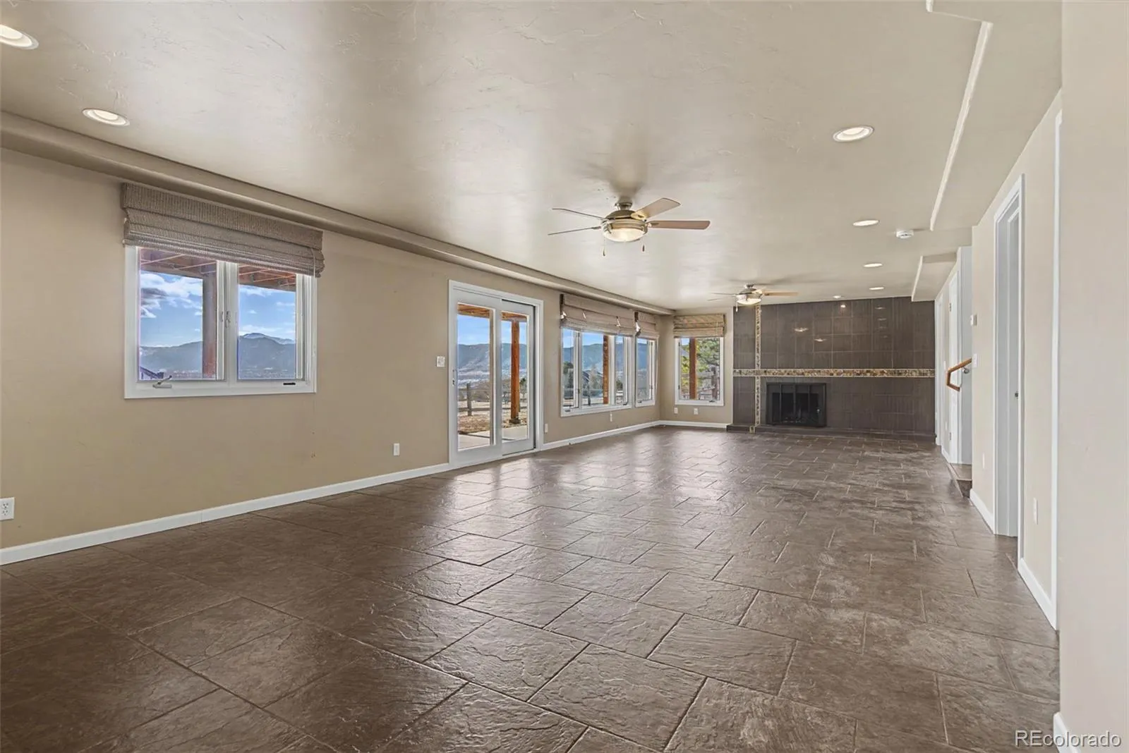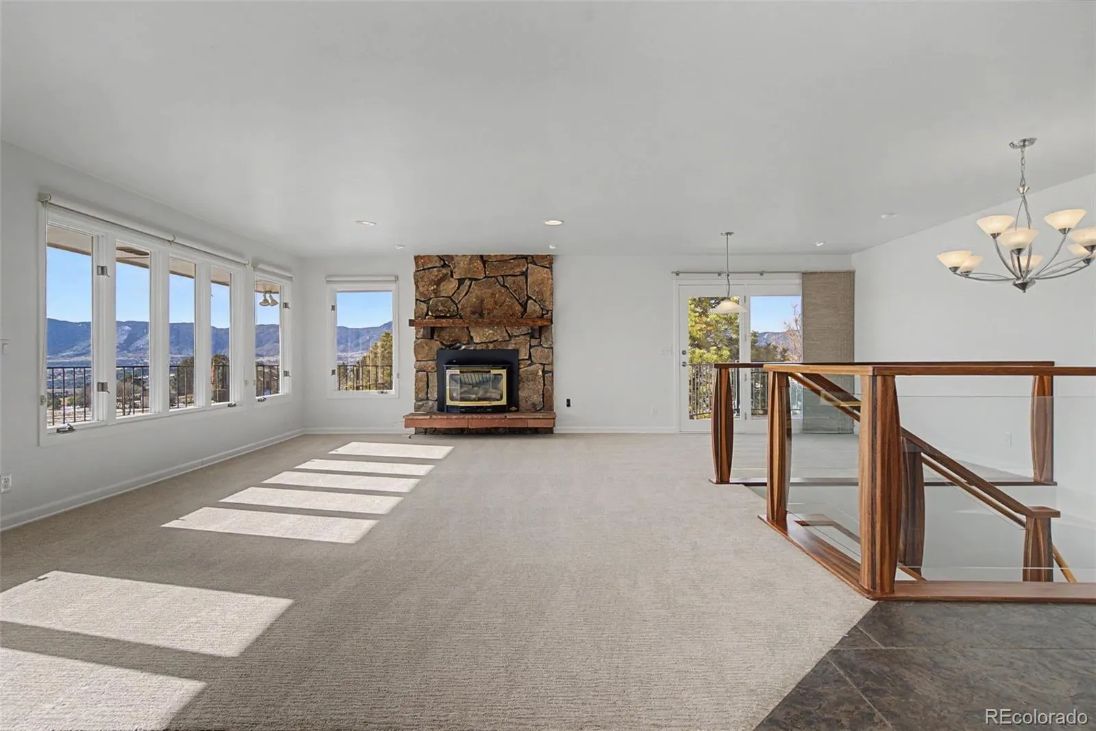 Mountain views top nearly every Colorado buyer’s wish list — and this Woodmoor rancher delivers them in spectacular fashion. Situated on a beautifully treed 0.8-acre lot backing to open space, this custom home offers an exceptional blend of privacy, comfort, and front-range scenery. The open, light-filled main level features brand-new carpeting, a gas fireplace, and an impressive wall of windows framing Pikes Peak. The updated kitchen includes extensive cabinetry, a pantry with pull-out drawers, stainless steel appliances, granite countertops, and a walk-out to the expanded composite deck — perfect for outdoor dining and entertaining. The main-level primary suite offers private deck access, a wall A/C unit, a walk-in closet, and a beautifully refreshed 5-piece bath. The lower level is designed for versatility, with a spacious recreation room featuring a wood-burning fireplace, walk-out access to the enlarged patio, and more of those signature mountain views. A guest suite with kitchenette/bar, private garden walk-out, walk-in closet, and en-suite full bath creates an ideal space for visitors or multigenerational living. A third bedroom and an updated bath with frameless glass shower complete the level. Additional highlights include efficient in-floor radiant heat, a 2024 roof, a mudroom with cabinetry and granite counters, a main-level powder room, a workshop area in the oversized garage, and a radon mitigation system. Located close to schools, shopping, and offering easy access to I-25 and the USAFA, this home combines Colorado living at its finest with everyday convenience.