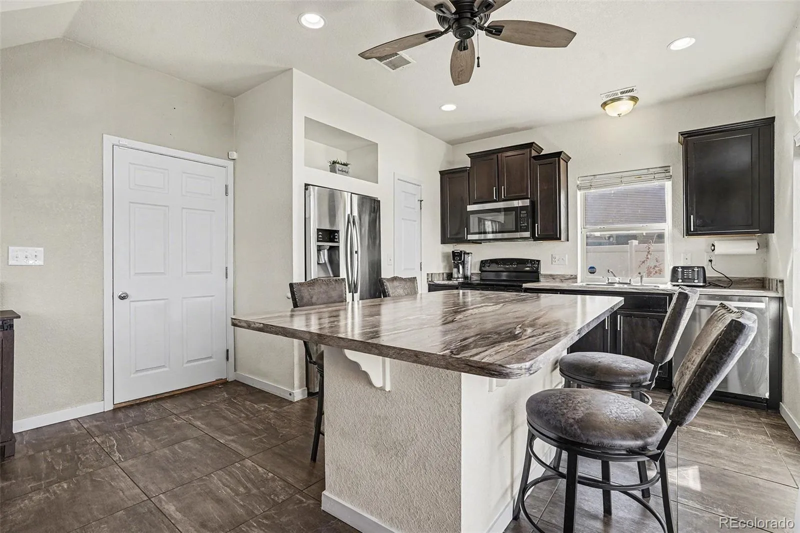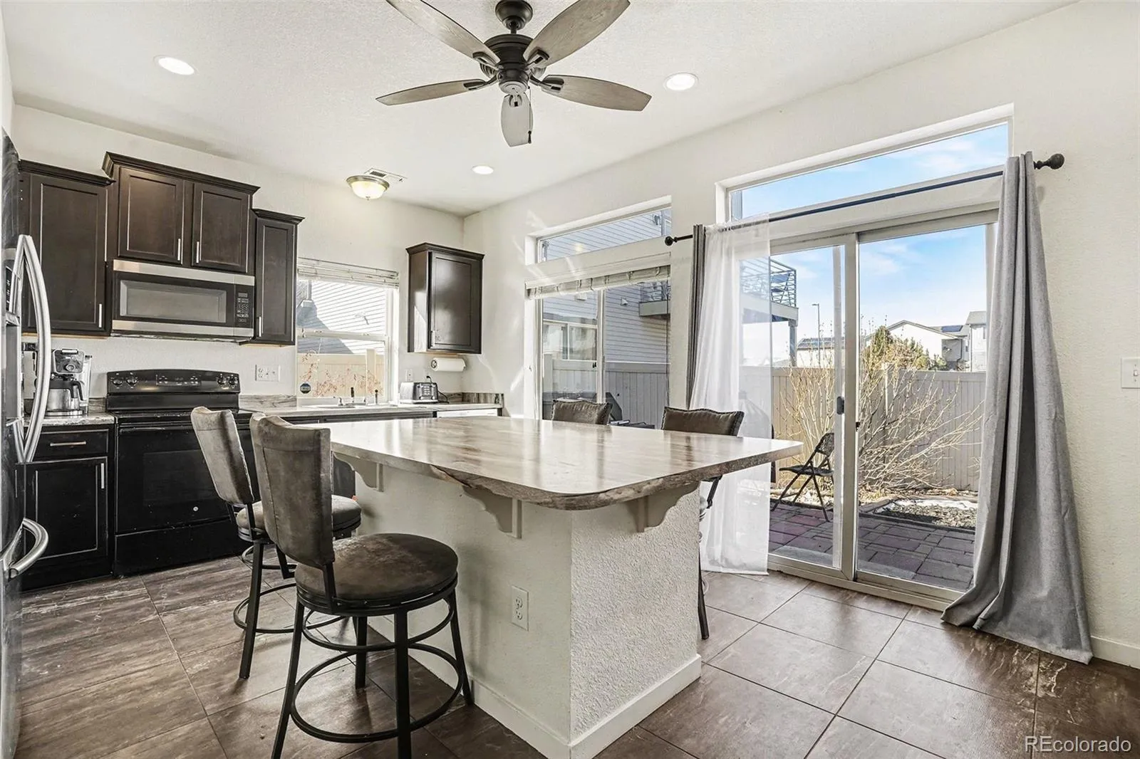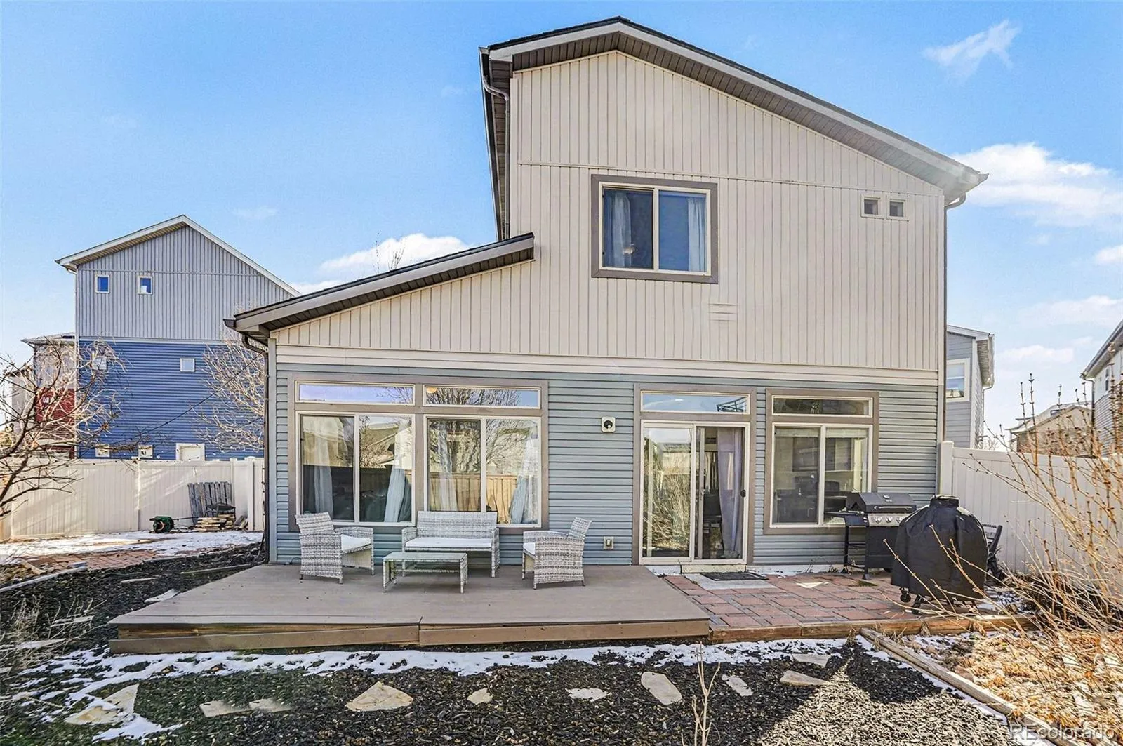 2 Story w/ Updates including New Carpet, Staggered Mocha Cabinetry w/ Brush Nickel Pulls, Elongated LVT Floors, Stainless Steel Refrigerator, Eat In Island, Microwave & Dishwasher, Modern Paint & Ceiling Fans, Fenced Yard w/ Paver Patio and Deck, Close to Airport, Central Park, Green Valley Ranch Golf Club, King Soopers, Eateries Nearby, The Gaylord Hotel, & Buckley Space Force Base. Directly across the street, the Green Valley Ranch Recreation Center offers an incredible array of amenities and community-focused programs. The facility features a fully equipped fitness area with cardio machines, weight training, group exercise classes, and a gymnasium, as well as a game room, meeting rooms, and multipurpose spaces available for rent. In November 2024, a brand-new indoor aquatic center opened, complete with a lazy river, lap pool, leisure pool, waterslide, water features, and family changing rooms. Outdoor amenities include a baseball field, soccer field, and basketball courts, providing year-round recreation opportunities. The center also has two indoor pickleball courts and offers youth-focused services such as free meals and complimentary memberships through the MY Denver Card program, along with significant discounts for qualifying local residents.