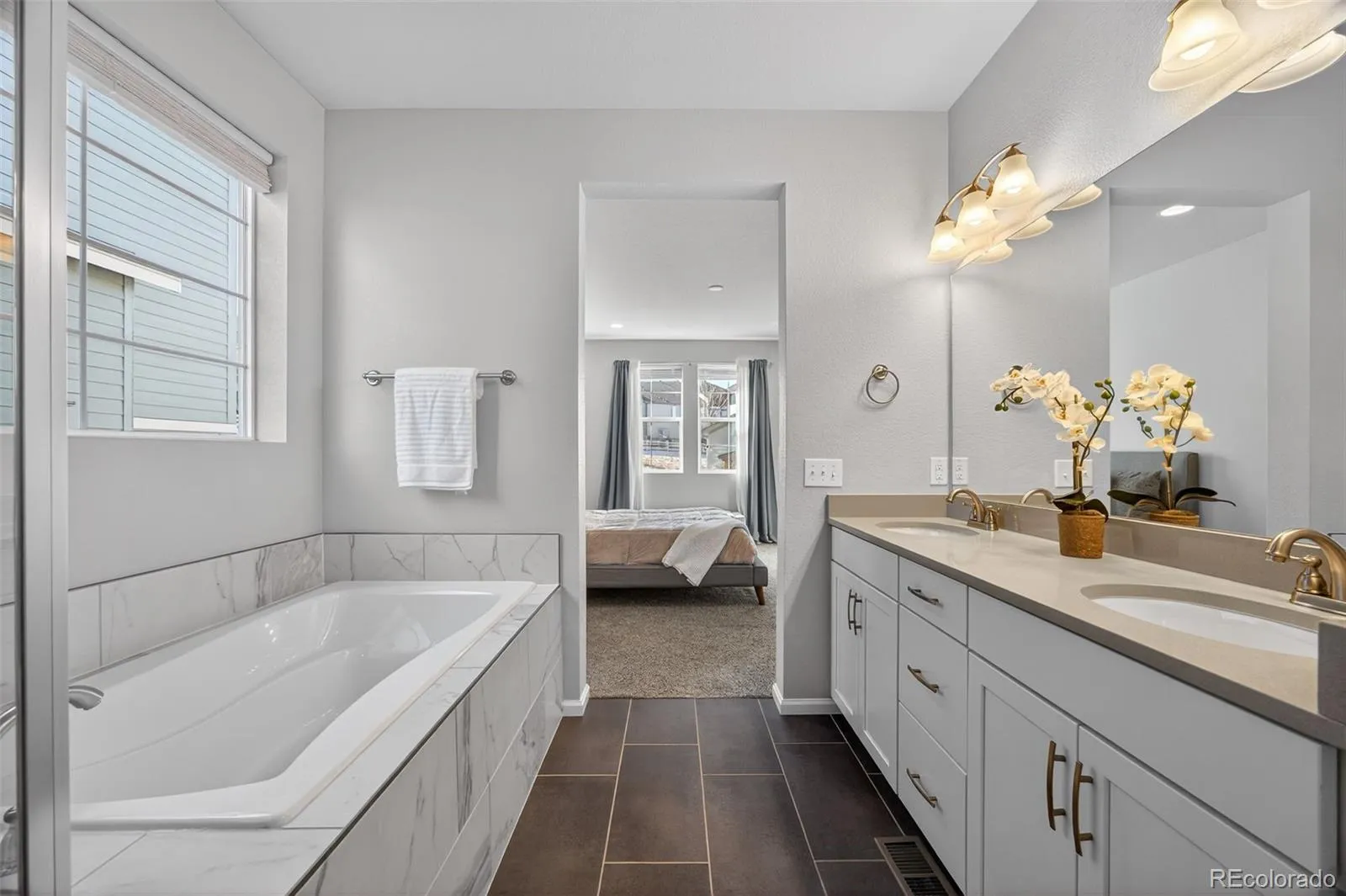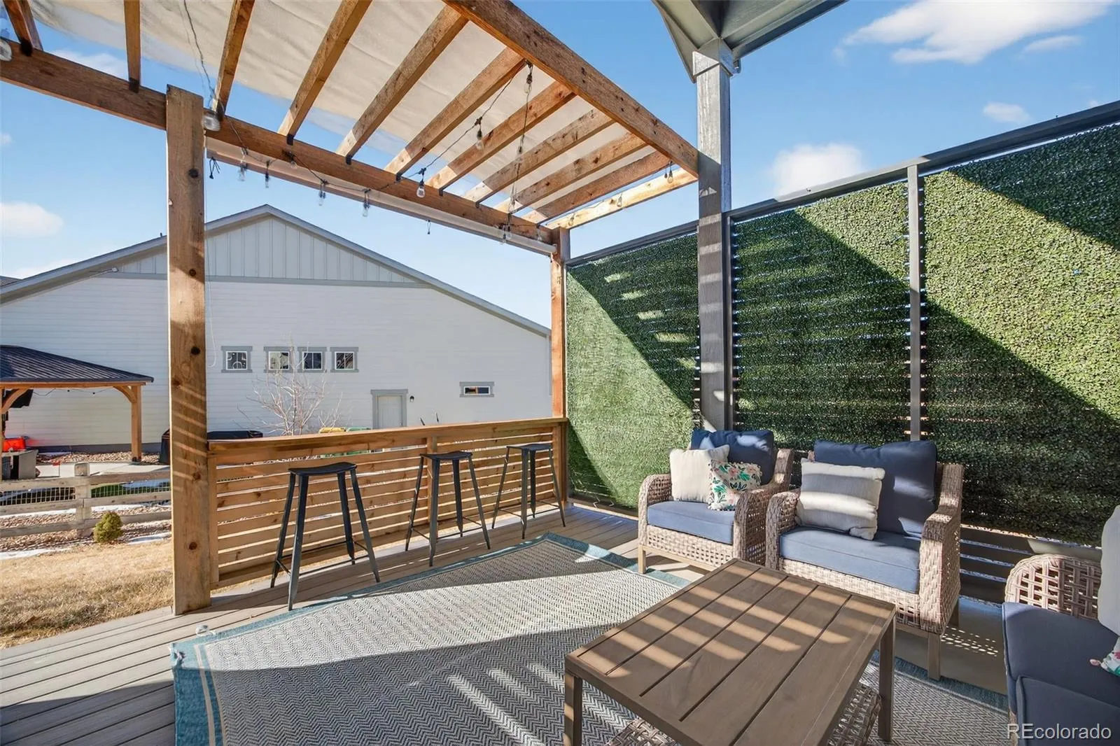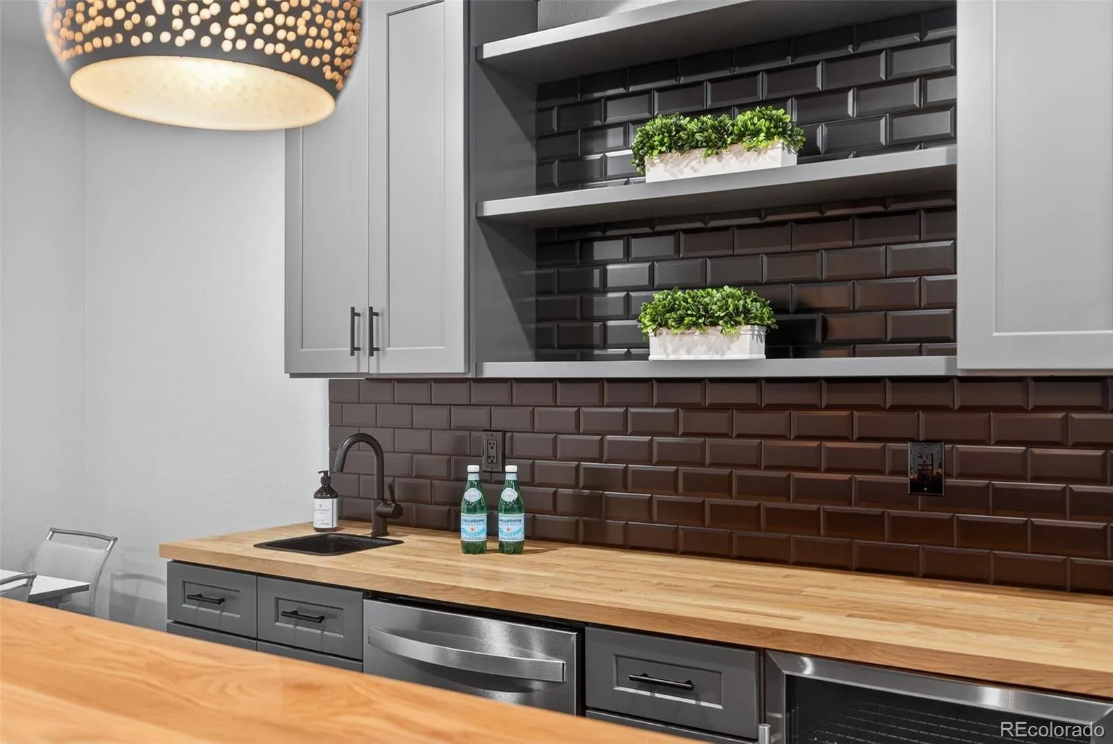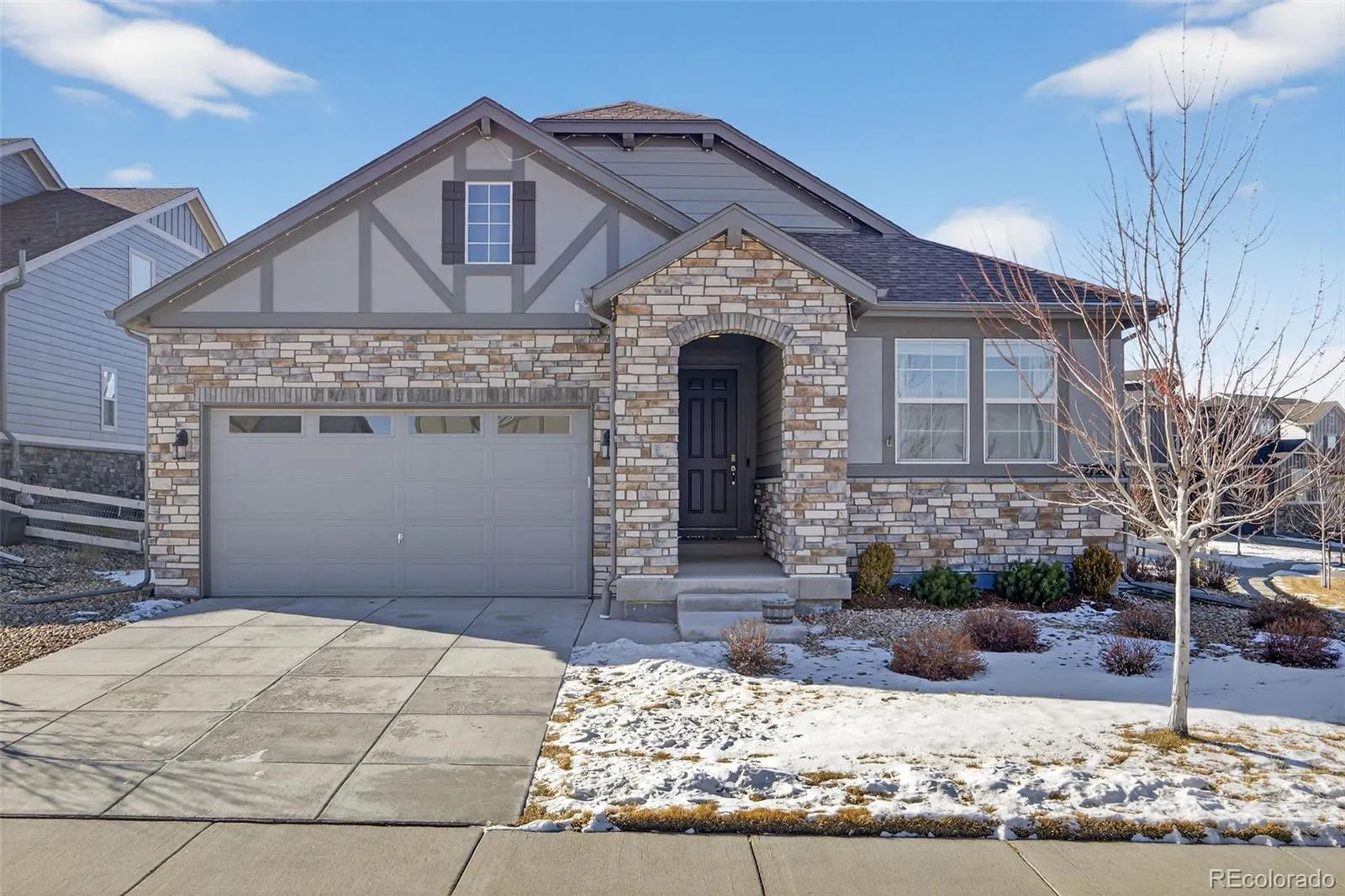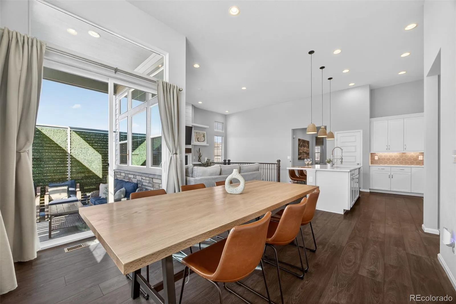 This beautifully appointed 4-bedroom, 3-bath ranch home in Southshore sits on a private corner lot and showcases exceptional design and inviting character. Enjoy true one-level living complemented by an expansive, custom-finished basement. On the main floor, an open layout brings together luxury vinyl plank floors, high ceilings, and plenty of natural light. The kitchen is a true highlight, offering a large center island, stylish pendant lighting, quartz counters, and a gas range, all flowing seamlessly into a roomy dining space perfect for gatherings. A custom fireplace surrounds the living room as a striking focal point. The oversized primary suite includes a five-piece bath with a spacious soaking tub, quartz dual counter tops, and an expansive walk-in closet. On the main floor, you will find two additional bedrooms, a full bath, and a laundry room. The fully finished basement continues the home’s elevated design with an electric fireplace, custom wet bar, complete with pendant lighting, a beverage fridge, and a full-size dishwasher. Downstairs showcases an additional guest bedroom, guest bathroom with quartz counter tops, dual sinks, and a rain shower head. The versatile bonus area—perfect for a home office or potential fifth bedroom— completes the lower level. Step outside to a private, covered seating area enhanced by a pergola and ambient exterior lighting—an ideal space for relaxing or entertaining. Radon Mitigation System installed. The home is conveniently located near the Aurora Reservoir, and Southshore offers an impressive array of amenities, including two community clubhouses, multiple pools, a private boating lake, a dog park, and miles of scenic trails. Residents also enjoy easy access to the reservoir’s swim beach and can walk to nearby Cherry Creek School District elementary, middle, and high schools.