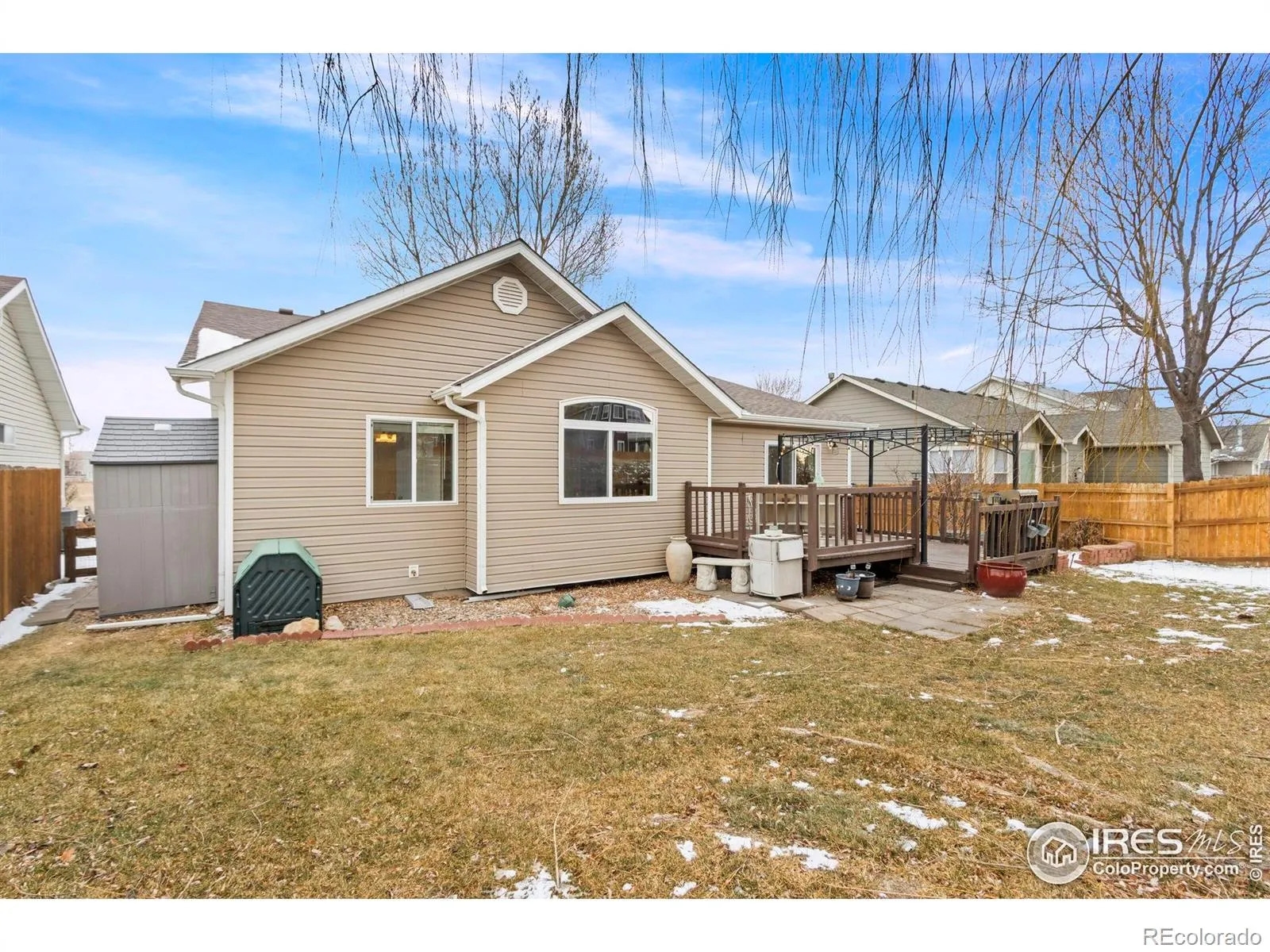 Tucked away on a quiet street in NE FTC, 1027 Elgin Court offers the perfect blend of comfort, function, and location. This well-maintained ranch-style home delivers easy single-level living with an open, inviting layout designed for both everyday life and entertaining. Inside, vaulted ceilings and abundant natural light create an airy feel throughout the main living space. The open floor plan flows seamlessly from the living room into the kitchen, dining area and family room, making gatherings effortless. Cherry hardwood floors, a cozy gas fireplace add warmth and character, while the practical layout provides flexibility for work-from-home needs, guests, or growing households. The kitchen features ample counter space, an island for casual meals, a spacious pantry for storage, and sightlines to the dining and family room areas-ideal for hosting or staying connected while cooking. Three comfortable bedrooms offer privacy and versatility, including a spacious primary ensuite that feels like a retreat at the end of the day. A private, 5 piece bathroom with jetted tub and walk in closet complete the primary bedroom. Step outside to enjoy a tiered deck overlooking the fenced backyard perfect for summer barbecues, morning coffee, or relaxing evenings. The back of the property abuts a green belt with trail and outdoor recreation is always within reach. The manageable yard offers room to play or garden with raised garden beds, lawn sprinkler and Tuff Shed. The fence is freshly stained and a mature willow tree provides shade. 2 apple trees planted for future enjoyment. Located just minutes from Old Town Fort Collins, CSU main campus, breweries, trails, and everyday conveniences, this home combines a peaceful residential setting with quick access to the best of Fort Collins living. Whether you’re looking for move-in-ready simplicity, a smart long-term investment, or a home that supports an active Colorado lifestyle, this home checks all the boxes.