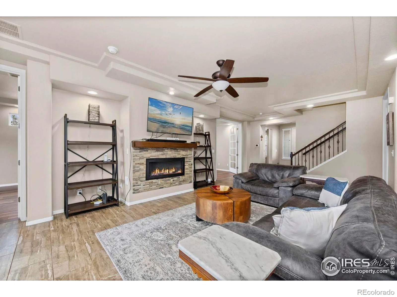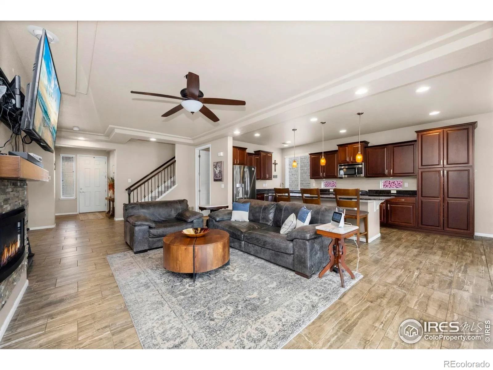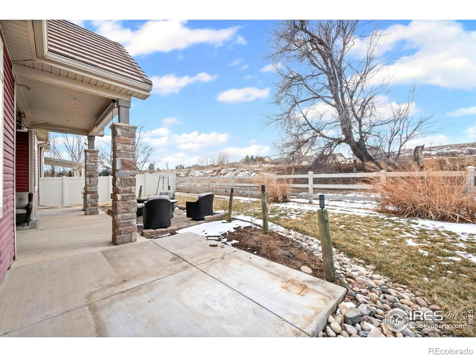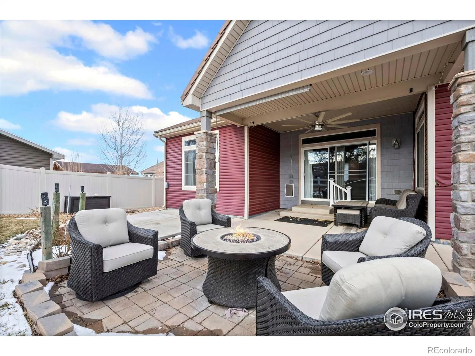 This impressive two-story home enjoys a quiet cul-de-sac setting that offers a calm, tucked-away feel while still being connected to everything that makes the area so desirable. Step inside and feel at home right away in the open main living area, where wood-grain ceramic tile flooring flows throughout, creating a clean, cohesive space that’s easy to enjoy and even easier to maintain. The kitchen takes center stage with stainless steel appliances, granite countertops, and a massive island that delivers generous prep space, storage, and a natural spot for casual gatherings. The split-bedroom design places two bedrooms on the main level along with a dedicated office area featuring French doors. This thoughtful layout allows for privacy while keeping key spaces easily accessible. The primary suite offers a peaceful place to unwind, complete with an ensuite bathroom and a spacious walk-in closet. Upstairs, a family-area loft adds extra living space alongside an additional bedroom and bathroom. This level can easily function as a second bedroom suite, offering flexibility and privacy, with mountain views from the bedroom windows adding a charming touch. The fully fenced backyard features an extended patio with a hot tub hookup, mature trees for shade and privacy, and a storage shed. Backing to a neighborhood trail and greenbelt, the home offers scenic walking paths that lead directly to Thompson River Ranch’s wide range of amenities. Enjoy access to an outdoor pool, clubhouse, parks, and even a disc golf course all just steps away. This home delivers a lifestyle that feels easy, inviting, and ready to enjoy from day one!