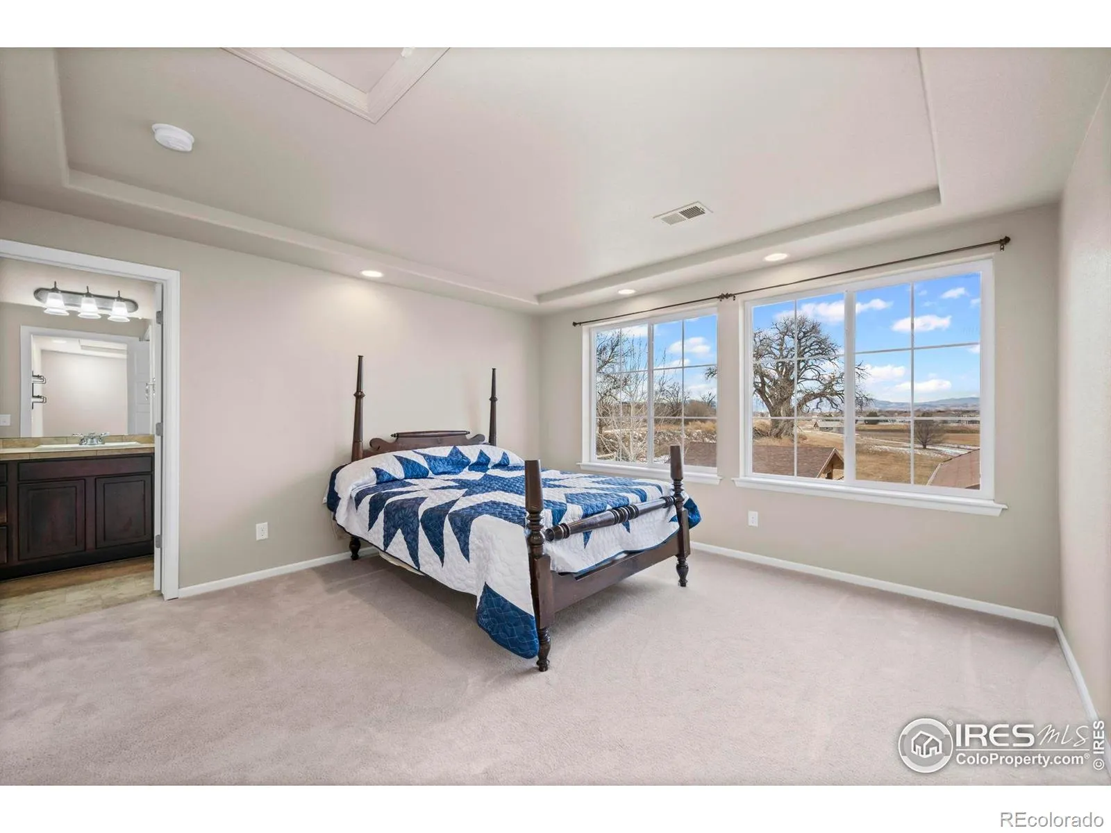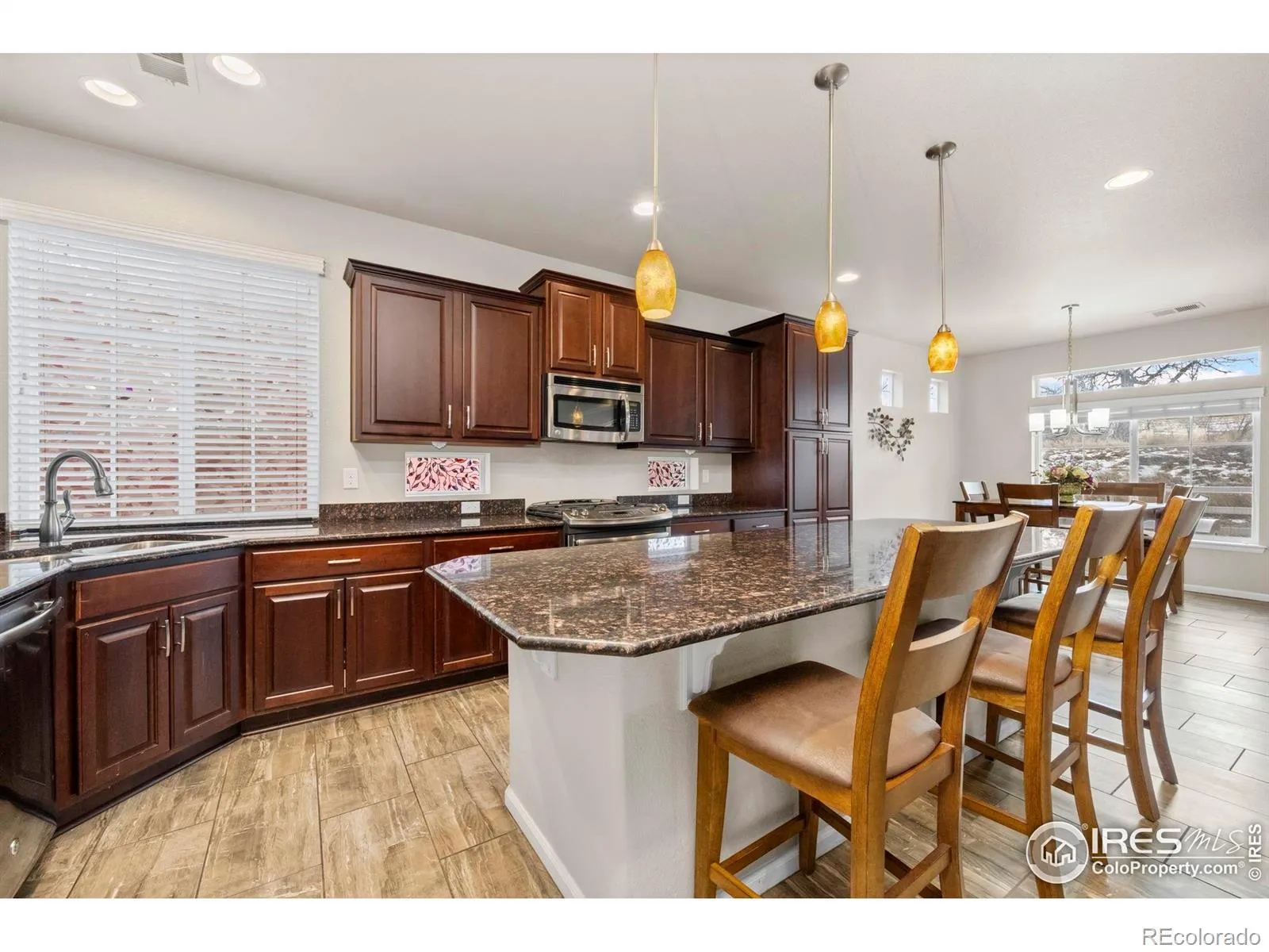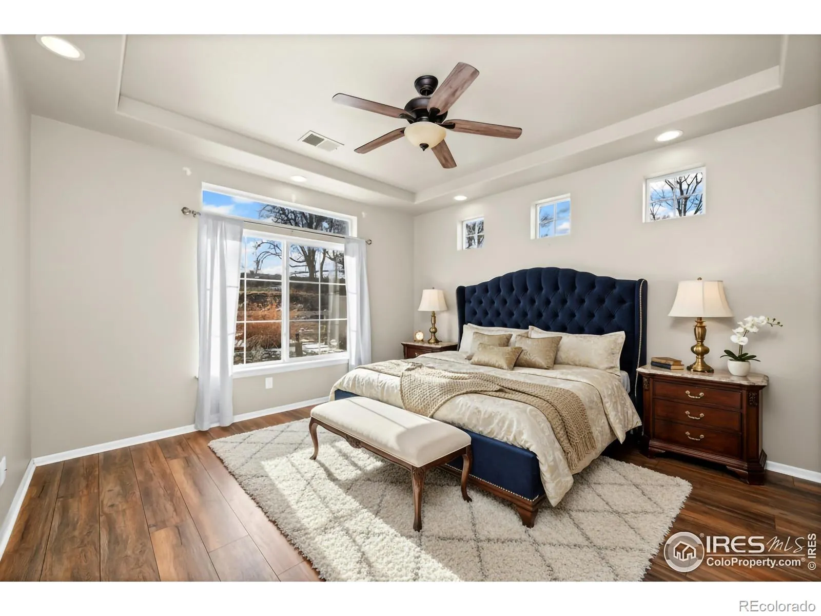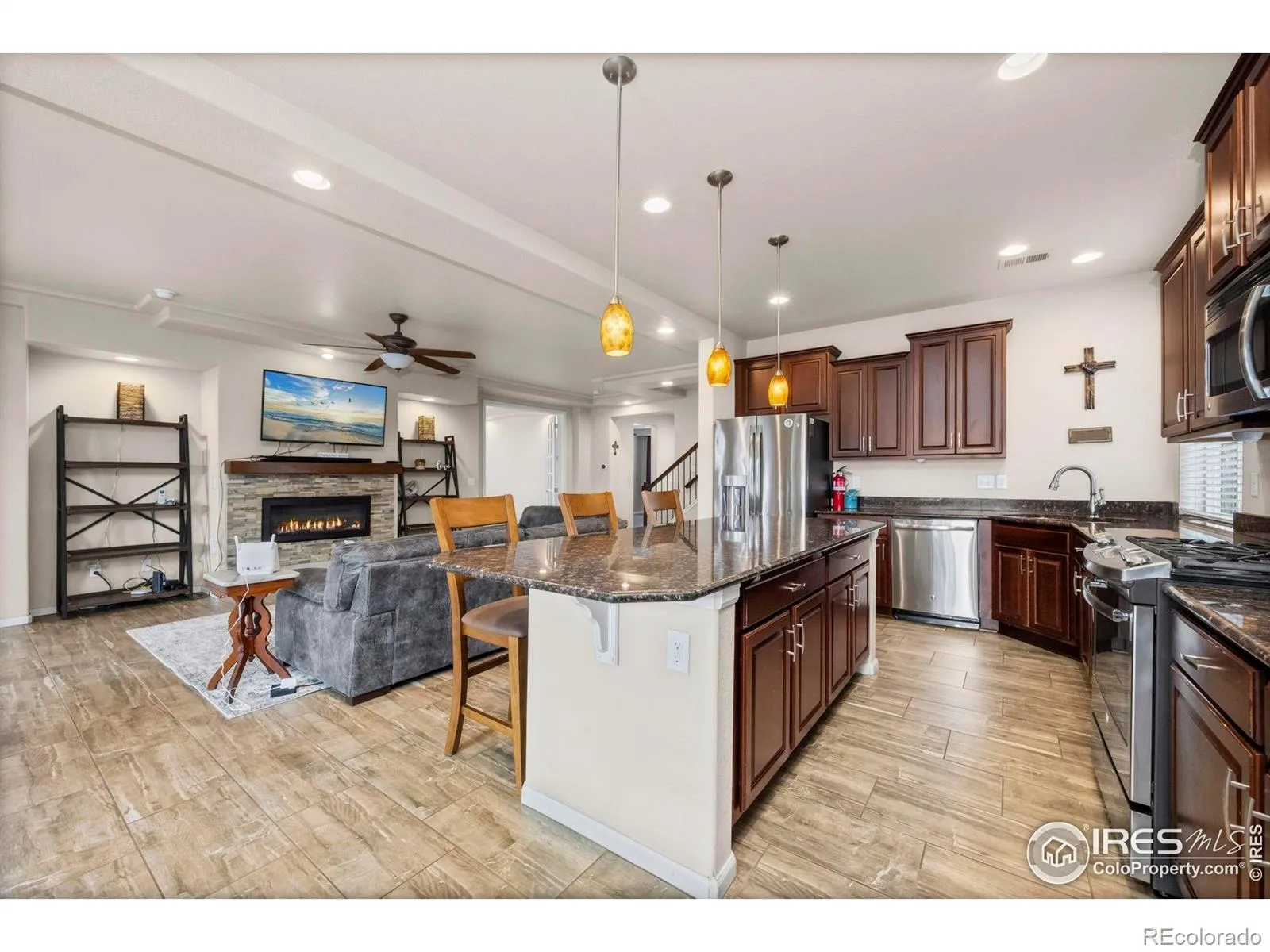 This impressive two-story home enjoys a quiet cul-de-sac setting that offers a calm, tucked-away feel while still being connected to everything that makes the area so desirable. Step inside and feel at home right away in the open main living area, where wood-grain ceramic tile flooring flows throughout, creating a clean, cohesive space that’s easy to enjoy and even easier to maintain. The kitchen takes center stage with stainless steel appliances, granite countertops, and a massive island that delivers generous prep space, storage, and a natural spot for casual gatherings. The split-bedroom design places two bedrooms on the main level along with a dedicated office area featuring French doors. This thoughtful layout allows for privacy while keeping key spaces easily accessible. The primary suite offers a peaceful place to unwind, complete with an ensuite bathroom and a spacious walk-in closet. Upstairs, a family-area loft adds extra living space alongside an additional bedroom and bathroom. This level can easily function as a second bedroom suite, offering flexibility and privacy, with mountain views from the bedroom windows adding a charming touch. The fully fenced backyard features an extended patio with a hot tub hookup, mature trees for shade and privacy, and a storage shed. Backing to a neighborhood trail and greenbelt, the home offers scenic walking paths that lead directly to Thompson River Ranch’s wide range of amenities. Enjoy access to an outdoor pool, clubhouse, parks, and even a disc golf course all just steps away. This home delivers a lifestyle that feels easy, inviting, and ready to enjoy from day one!
