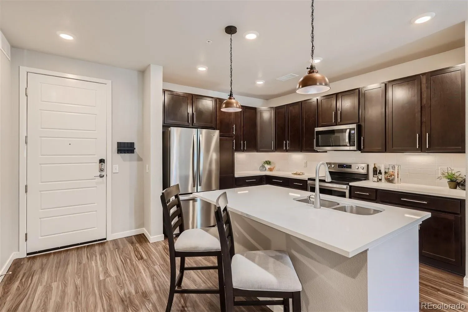 Don’t wait one more day! Perfectly blending location, convenience, and style, this home has everything you’ve been searching for. Step inside and prepare to be wowed by the heart of this home: a stunning kitchen that’s as functional as it is beautiful. Picture yourself cooking, entertaining, or just enjoying your morning coffee here. With sleek stainless steel appliances, gorgeous quartz countertops, chic pendant lighting, and a cozy nook perfect for a bar, coffee station, or wine corner, this space truly has it all. The kitchen flows seamlessly into a spacious living room, which opens to your own private, covered patio – ideal for relaxing or hosting guests. Just off the kitchen, you’ll find a generously sized laundry room complete with a full-sized washer and dryer for ultimate convenience. The primary suite is a true retreat, featuring a luxurious five-piece ensuite bath with upgraded fixtures and leading into a massive walk-in closet outfitted with custom shelving. The second room could be perfect as a guest room, home office, or creative space, with a large full bath just steps away. This home surely checks every box. Don’t miss your chance to make it yours! The community has a fitness center, parks, playground, set in an incredible location, just steps from Starbucks, Social Bar & Lounge; close to Littleton Adventist Hospital, Streets of SouthGlenn, and easy access to I-25 and E-470 for trips to the mountains, Denver, DIA and more!
