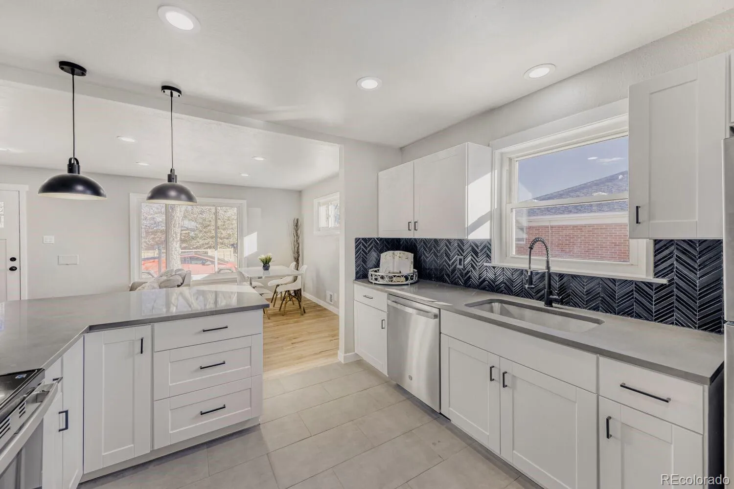 The list of updates includes a new driveway, updated windows, new quartz countertops, kitchen cabinets and tile, updated bathrooms, fresh paint, matte-black hardware, and newer sandalwood-toned flooring throughout. A new 50-gallon water heater adds extra peace of mind.
