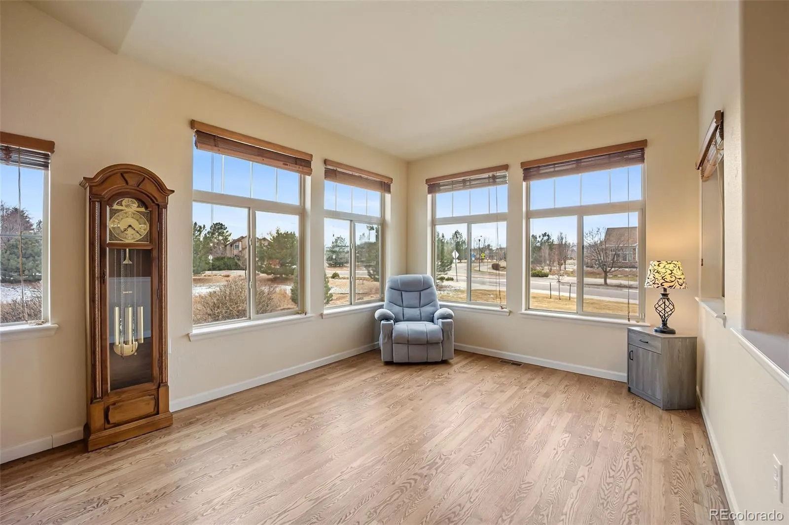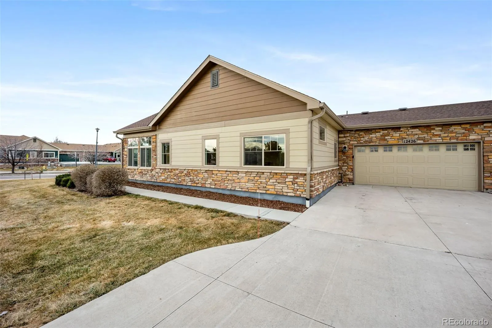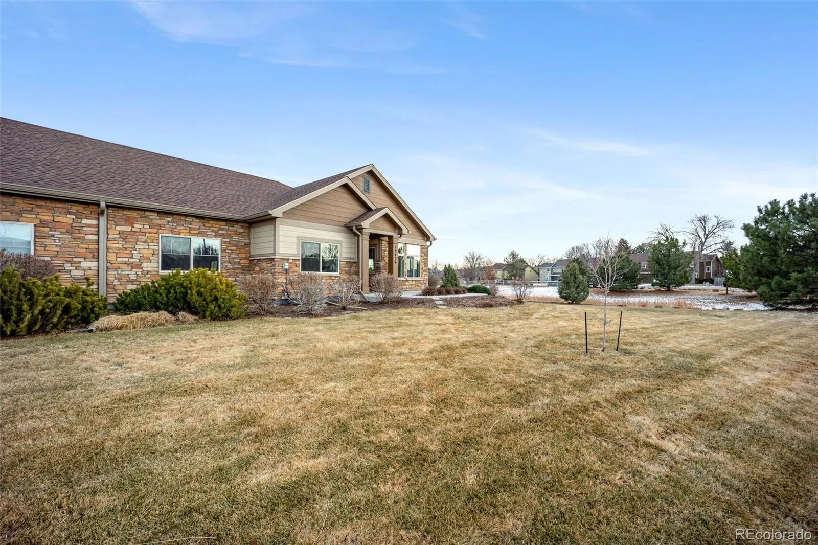 Welcome home to this impeccably maintained property within the desirable Eastlake Lifestyle Community! You’ll instantly be drawn to all the natural light and the open layout floor plan allowing for ultimate convenience with everything at your fingertips, not to mention plenty of storage. This home has a new roof and is handicap accessible w/36-inch doors & elevated outlets throughout. The hardwood floors in the main living area create a welcoming, warm touch, while the office off the main living space could easily accommodate a third bedroom. The flow throughout the home is natural and accommodating to include a walk-through from your primary closet into the oversized laundry room allowing for ease with laundry tasks, while your entry off the garage places you near your kitchen for ease with unloading groceries. The sizable kitchen has beautiful black stainless appliances, granite counters, an island/peninsula large enough to easily accommodate 4 stools, as well as a pantry. Both bathrooms are complemented by granite countertops as well, while another upgrade you’ll easily take notice of within the primary bedroom is the decorative tray ceiling. The oversized 2-car garage is a woodworker’s dream with plenty of custom cabinetry and counter space. If woodworking isn’t calling your name, you’ll enjoy utilizing the cabinetry for additional storage, and the epoxied garage floors make for easy cleanup. This unit is within very close walking distance to the clubhouse which includes a kitchen, fireplace, area for residents to gather for games, and a stunning outdoor pool, just to name a few of its attributes. You’ll love the convenience to walking trails, the Eastlake Nature Preserve, multiple parks, as well as multiple stores, restaurants and all within 3 miles to the convenience of Interstate 25. Whether you are looking to downsize or just attain simpler living with no need to worry about exterior maintenance, you won’t want to let this stellar property pass you by!