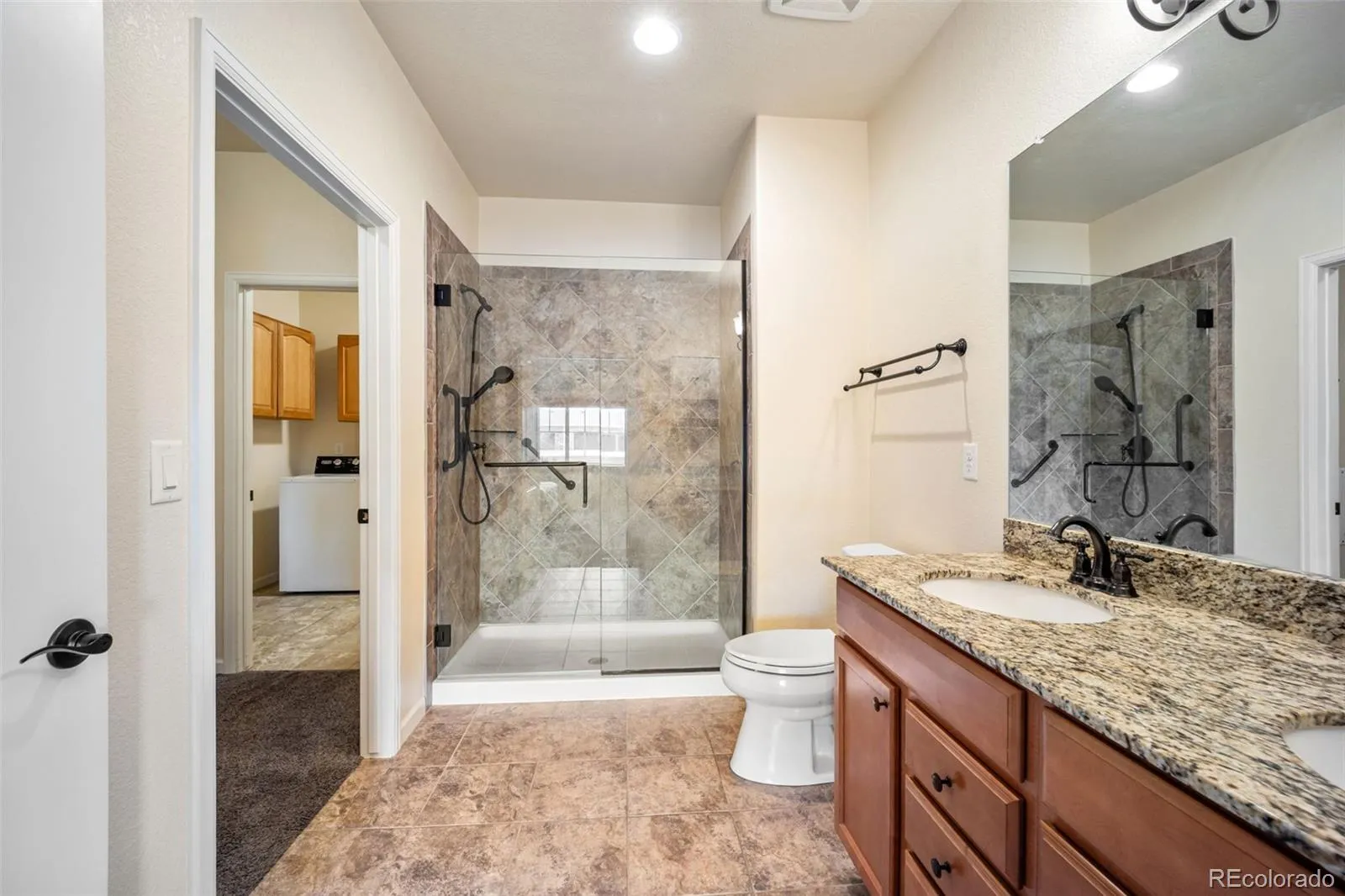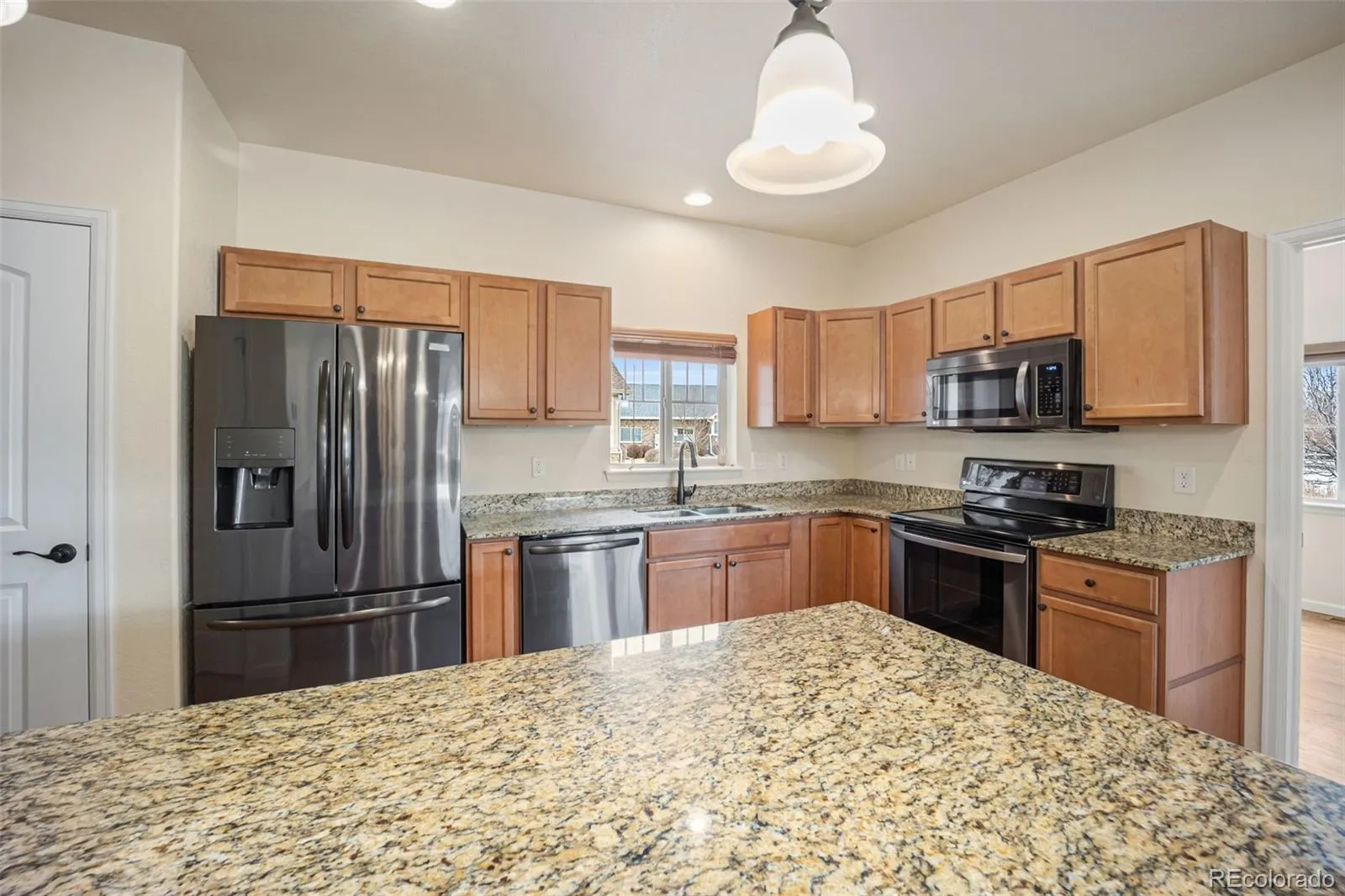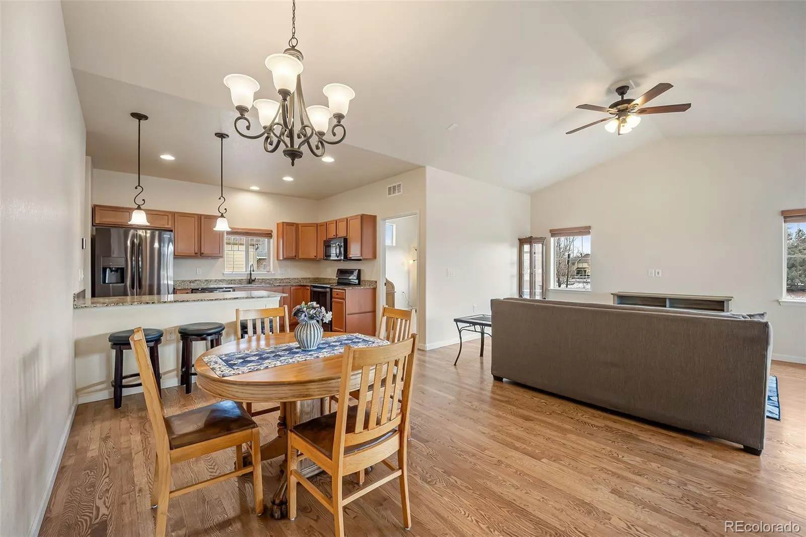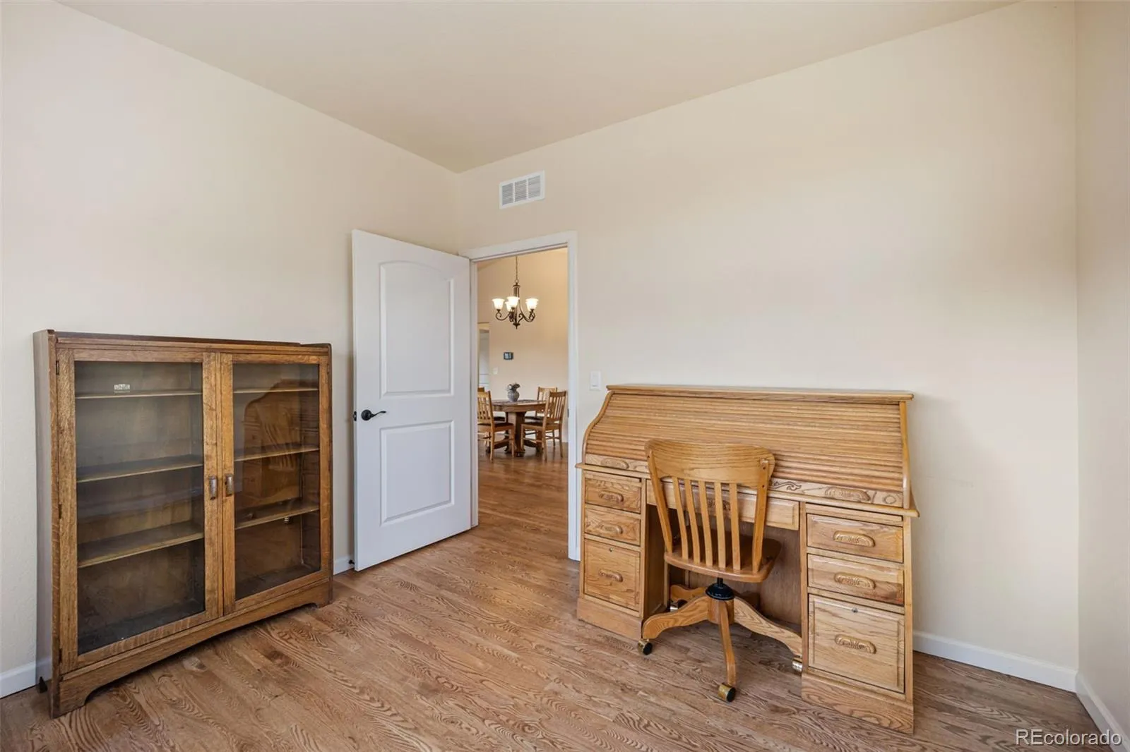 Welcome home to this impeccably maintained property within the desirable Eastlake Lifestyle Community! You’ll instantly be drawn to all the natural light and the open layout floor plan allowing for ultimate convenience with everything at your fingertips, not to mention plenty of storage. This home has a new roof and is handicap accessible w/36-inch doors & elevated outlets throughout. The hardwood floors in the main living area create a welcoming, warm touch, while the office off the main living space could easily accommodate a third bedroom. The flow throughout the home is natural and accommodating to include a walk-through from your primary closet into the oversized laundry room allowing for ease with laundry tasks, while your entry off the garage places you near your kitchen for ease with unloading groceries. The sizable kitchen has beautiful black stainless appliances, granite counters, an island/peninsula large enough to easily accommodate 4 stools, as well as a pantry. Both bathrooms are complemented by granite countertops as well, while another upgrade you’ll easily take notice of within the primary bedroom is the decorative tray ceiling. The oversized 2-car garage is a woodworker’s dream with plenty of custom cabinetry and counter space. If woodworking isn’t calling your name, you’ll enjoy utilizing the cabinetry for additional storage, and the epoxied garage floors make for easy cleanup. This unit is within very close walking distance to the clubhouse which includes a kitchen, fireplace, area for residents to gather for games, and a stunning outdoor pool, just to name a few of its attributes. You’ll love the convenience to walking trails, the Eastlake Nature Preserve, multiple parks, as well as multiple stores, restaurants and all within 3 miles to the convenience of Interstate 25. Whether you are looking to downsize or just attain simpler living with no need to worry about exterior maintenance, you won’t want to let this stellar property pass you by!