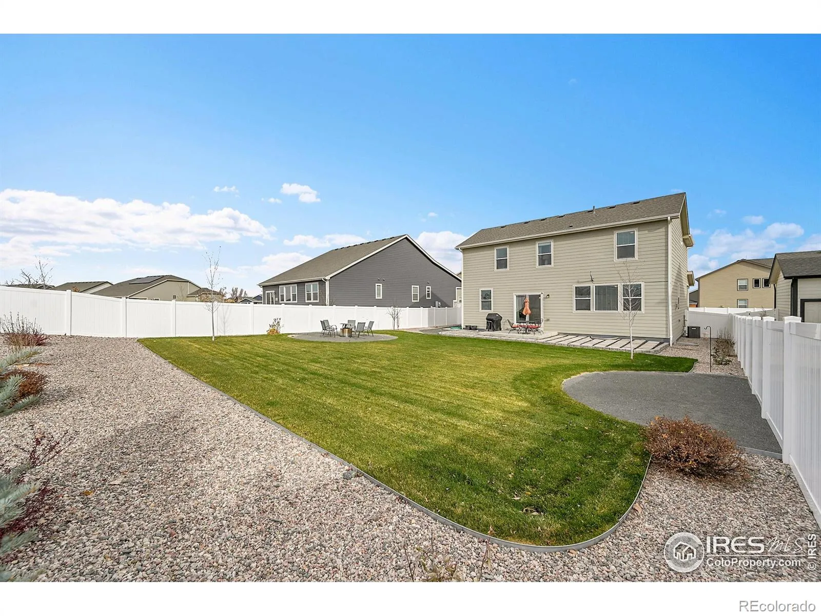 The Meadow Porch House. Perfectly placed in a quiet, friendly neighborhood, this inviting home welcomes you with a xeriscaped front yard and a charming front porch made for slow mornings and evening unwind time. Inside, the open kitchen-family-dining layout creates effortless flow for everyday living and entertaining. The kitchen is a standout with a breakfast bar, gas range with dual ovens, granite countertops, and a generous walk-in pantry. The backyard is truly exceptional-expansive, private, and framed by beautiful mountain views. Backing to open farmland, it offers a serene sense of space rarely found nearby. An attractive permeable paver patio sets the stage for outdoor dining, gatherings, and Colorado sunsets. Upstairs, two secondary bedrooms feel bright and spacious with large closets and natural light. The primary suite captures more of those mountain views and features a massive walk-in closet and a luxe en-suite bath. An unfinished basement offers incredible storage and future potential. With easy access to I-25 and everyday conveniences just minutes away, this is a special opportunity to enjoy comfort, views, and room to grow-all in a coveted location.