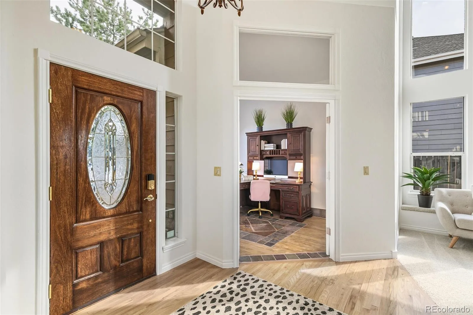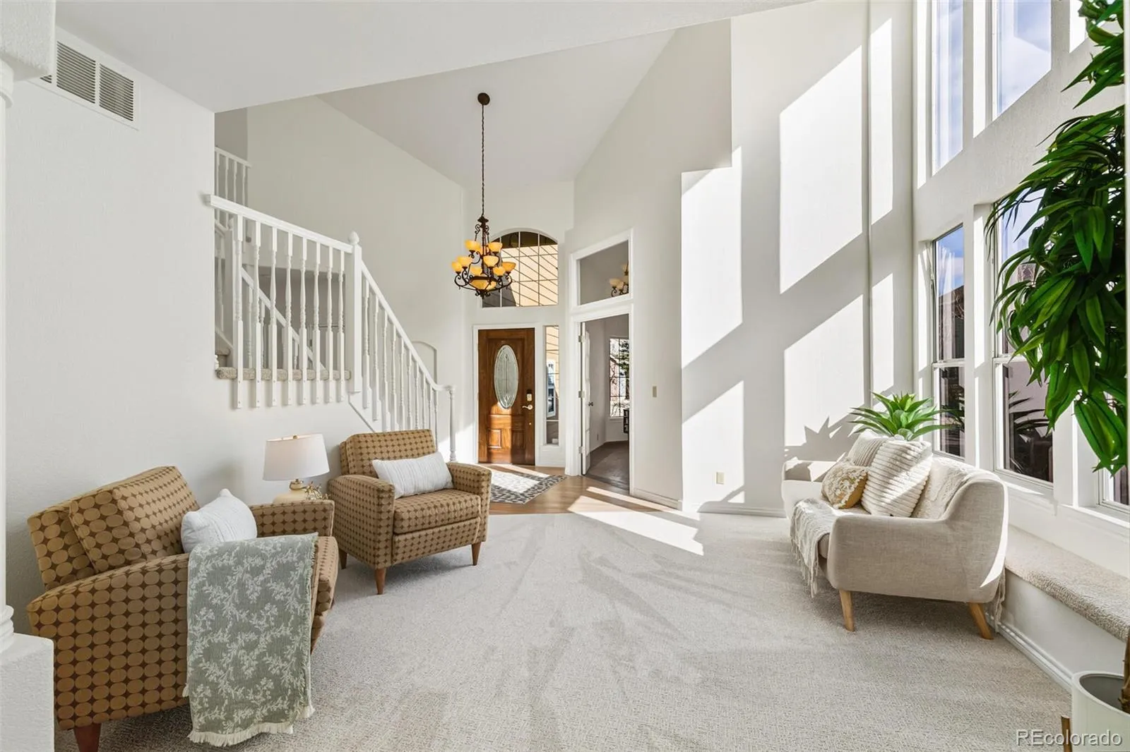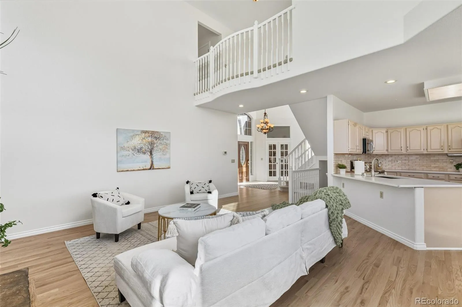 UNBELIEVABLE, UNOBSTRUCTED MOUNTAIN VIEWS, backing directly onto panoramic open space—this is Colorado living at its finest! Wake up every day to sweeping Front Range vistas from an exceptional floor plan that blends comfort, elegance, and move-in-ready updates. Vaulted ceilings, gleaming oak floors, sunny bay windows, and an easy-flowing layout showcase the scenery from nearly every room. The original owner completed a fresh facelift, making this home ready to enjoy immediately. The updated kitchen features quartz counters, abundant cabinetry, and a masterful bay window eating area where you can sip coffee while taking in the views. The kitchen opens seamlessly into an enormous entertainer’s Great Room framed by a dramatic mountain backdrop. At the front of the home, formal living and dining rooms welcome you with a grand staircase, while a spacious main-floor office with bay window creates an ideal work-from-home retreat. A convenient powder bath and laundry room complete the main level. Upstairs, discover 4 bedrooms, including a king-sized primary suite that feels like a private sanctuary. Enjoy incredible floor space, a massive walk-in closet, and a beautifully updated ensuite with an oversized walk-in shower and a rare in-suite washer/dryer. 3 additional bedrooms offer generous closets and share a full hall bath with a dual vanity. The full basement features rich maple flooring and offers endless flexibility—use it now as a gym, hobby space, or playroom, or finish it later for additional living space. A 3-car garage with extra storage adds everyday convenience. Outside, the backyard oasis is designed for relaxing and entertaining with a brick patio, covered pergola, firepit, grilling area, and those iconic open-space views. Just minutes to Coyote Creek Elementary, adjacent Plum Valley pocket park, trails, Chatfield State Park, shopping, dining, and 4 exceptional Highlands Ranch rec centers. Million-dollar views, unbeatable lifestyle—priced just under $1M!