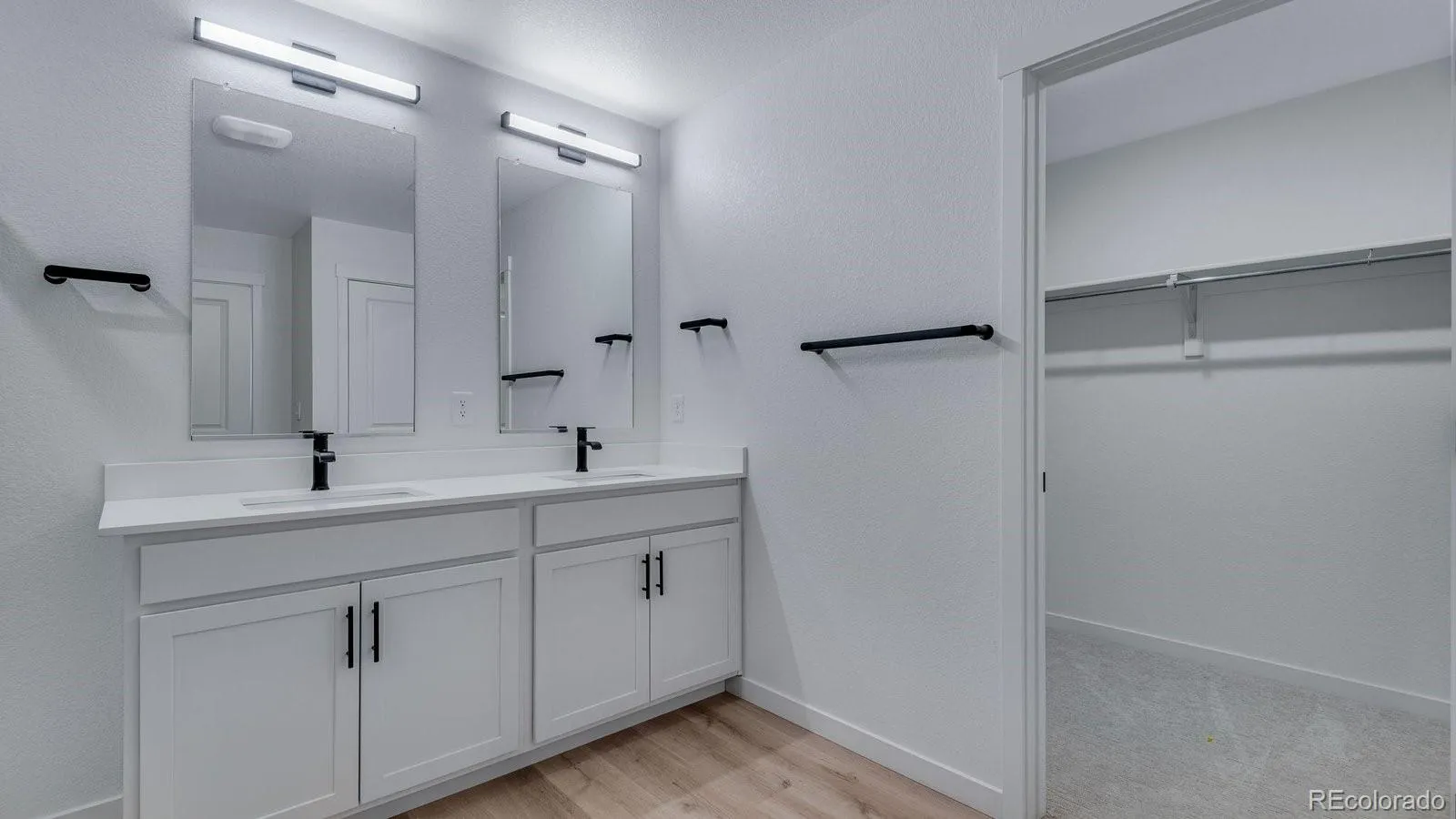 Welcome to this stunning two-story home. This open layout provides a seamless flow throughout the main floor, starting with a covered front porch welcoming you in with a den or flex space. The spacious main level features a bedroom, perfect for guests or multi-generational living. Beautiful designer finishes throughout the home create an inviting, modern atmosphere, including laminate flooring that flows throughout most of the main floor. The functional kitchen is a true highlight, featuring white cabinetry with sleek matte black hardware, stunning quartz counter tops, and a large kitchen island – perfect for meal prep or casual dining. The adjacent walk-in pantry offers plenty of storage space. The great room, with its contemporary fireplace and impressive floor-to-ceiling tile, creates a perfect spot to relax or entertain. On the upper level, you will find the luxurious primary suite, complete with an attached bath that includes a raised vanity and quartz counter tops. Spacious secondary bedrooms offer ample closet space, while the loft provides additional room for relaxation or activities. The upper-level laundry is both convenient and functional. Enjoy outdoor living with a covered front and rear covered deck – ideal for relaxing or hosting guests. This home is within walking distance to community amenities such as a pool, tennis and pickle ball courts, a playground, a basketball court, disc golf, and a recreation field. The home is also equipped with a smart home package, ensuring convenience and connectivity. Don’t miss the opportunity to own this exceptional home! ***Estimated Delivery Date: May. Photos are representative and not of actual property***