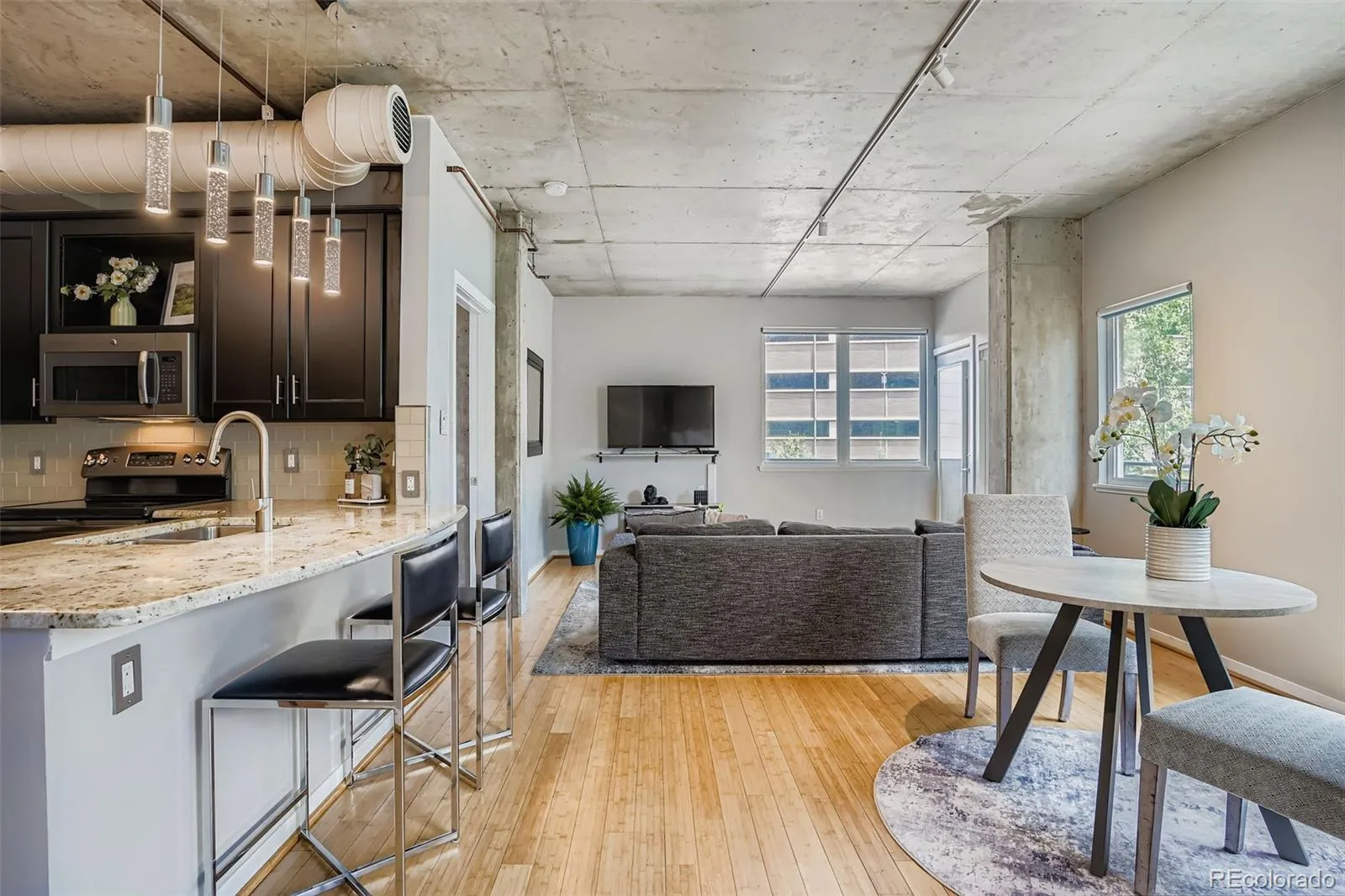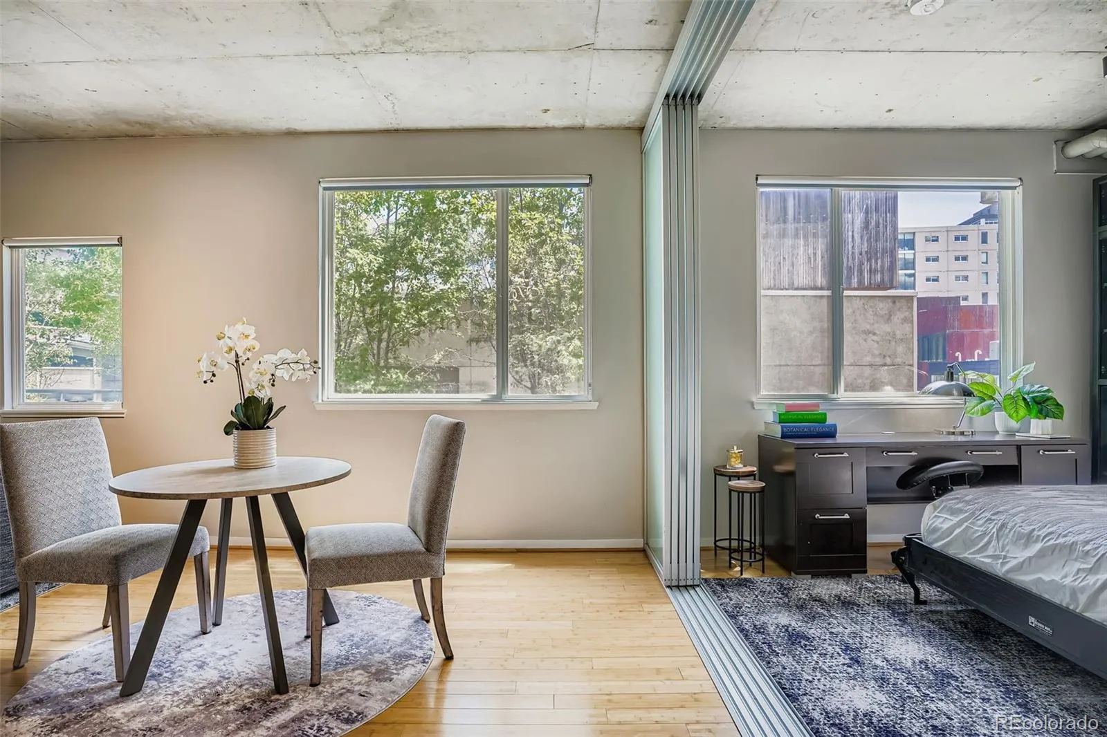Bright and updated 2bd/2ba loft condo at Monarch Mills, now available in the heart of LoDo- just steps from Union Station, 16th Street Mall, Coors Field, Whole Foods, Ball Arena, Elitch Gardens and some of the city’s best parks, nightlife and entertainment. This third-floor residence features an open layout with warm industrial design, wall-to-wall windows, and a private patio. Its unique corner location, buffered by mature trees and set away from the elevator, provides rare privacy and minimal foot traffic. The kitchen is equipped with granite countertops, stainless steel appliances and a wine fridge seamlessly connecting to the living and dining area. The primary suite includes a custom walk-in closet and a spacious ensuite with double sinks. The secondary bedroom offers a versatile setup with an attached full bathroom, murphy bed, coordinating desk, and sliding privacy doors—perfect as a guest room or home office or leave open to flex for more living room space. Additional features include visitor parking, in-unit laundry, deeded parking, and secure building, bike storage and garage access. Located off 15th between Wewatta and Little Raven, 1475 Delgany is tucked off a dead-end street behind the Museum of Contemporary Art, where you can and enjoy free year round access as part of the Riverfront Park Association, a fantastic place to grab a coffee, meet a friend or enjoy a new exhibit! Just a mile to MSU and the Denver Athletic Club! This home also enjoys proximity to I-25 and the light rail for easy commuting and direct access to DIA. All appliances and window coverings are included, furniture negotiable if desired. Long-term rentals are allowed. Quick possession available. Easy to Show! Owner pays Xcel (pays around $50/m) and GoogleWebpass.