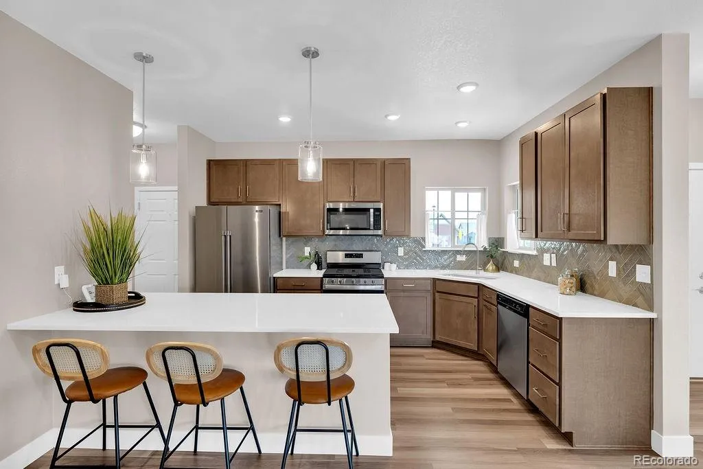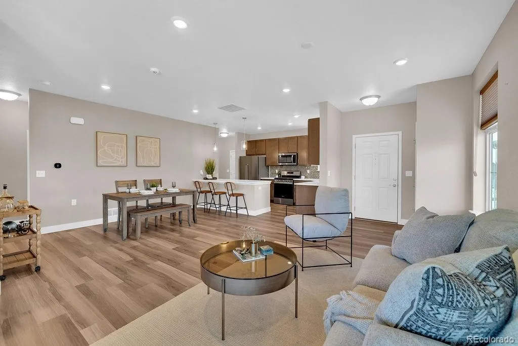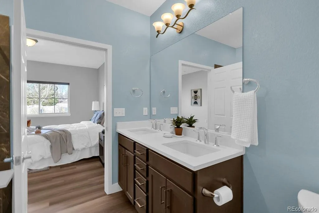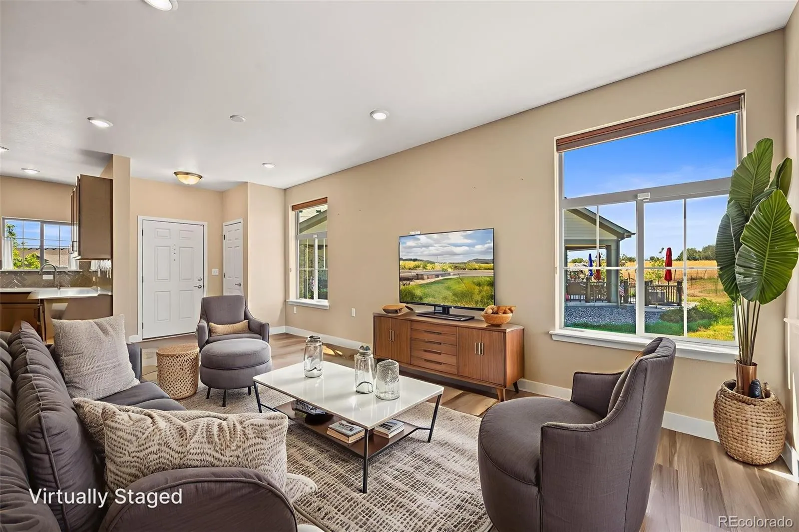 Welcome to this beautifully cared-for 2-bedroom, 2-bath home in the desirable Riversdale Ranch community. Step inside to an open, light-filled floor plan designed for both comfort and connection—perfect for relaxing or entertaining. The modern kitchen offers plenty of cabinetry and counter space, making meal prep easy and enjoyable. The spacious primary suite provides a peaceful retreat with a private en suite bath and large closet. The second bedroom is ideal for guests, a home office, or creative space, paired with a full second bath for convenience. Enjoy outdoor living all day—sip your morning coffee on the welcoming front patio or unwind on the private back patio with mountain views. With no home directly behind you, you’ll love the added privacy. The HOA handles yard care and snow removal, so you can enjoy a truly low-maintenance lifestyle. Wonderful community and just a short walk to nearby parks and trails!