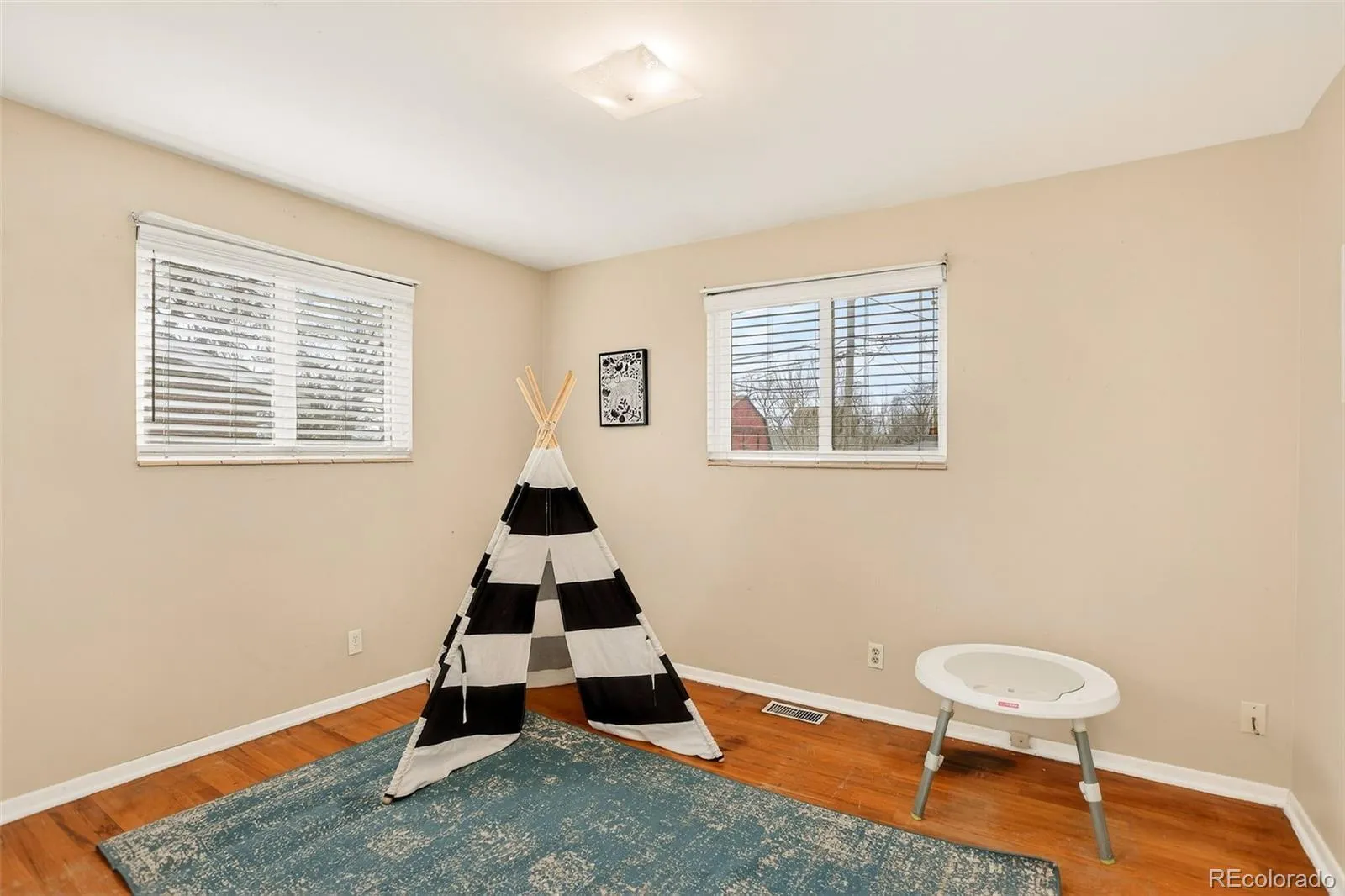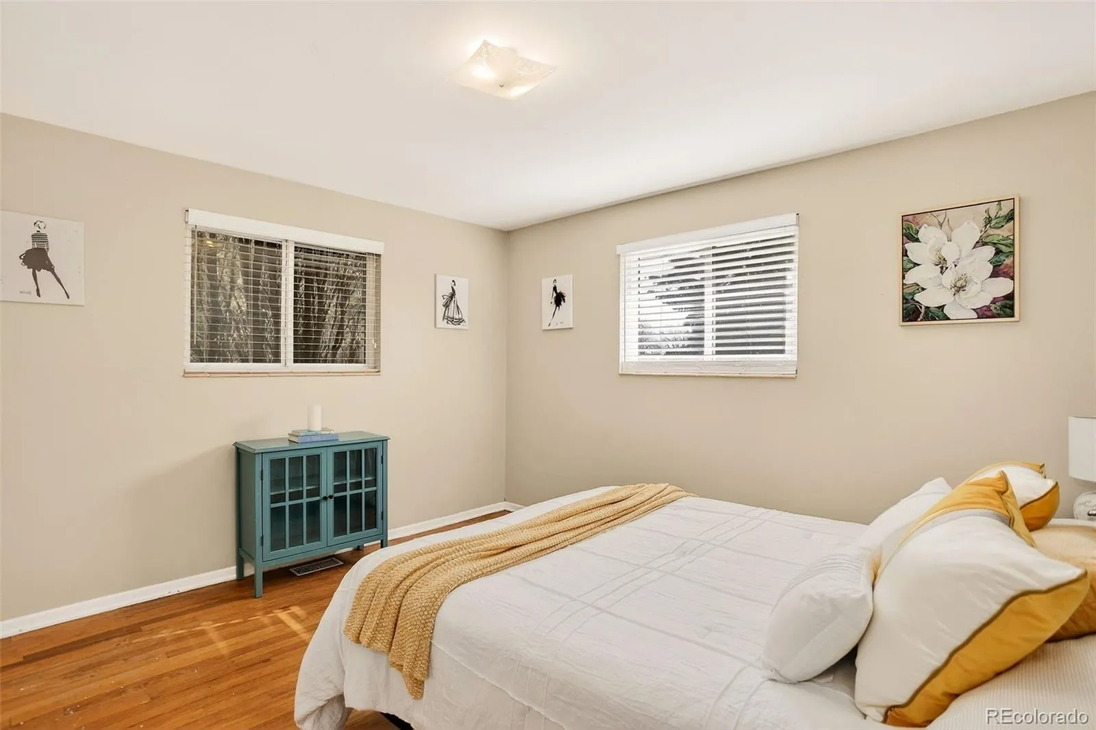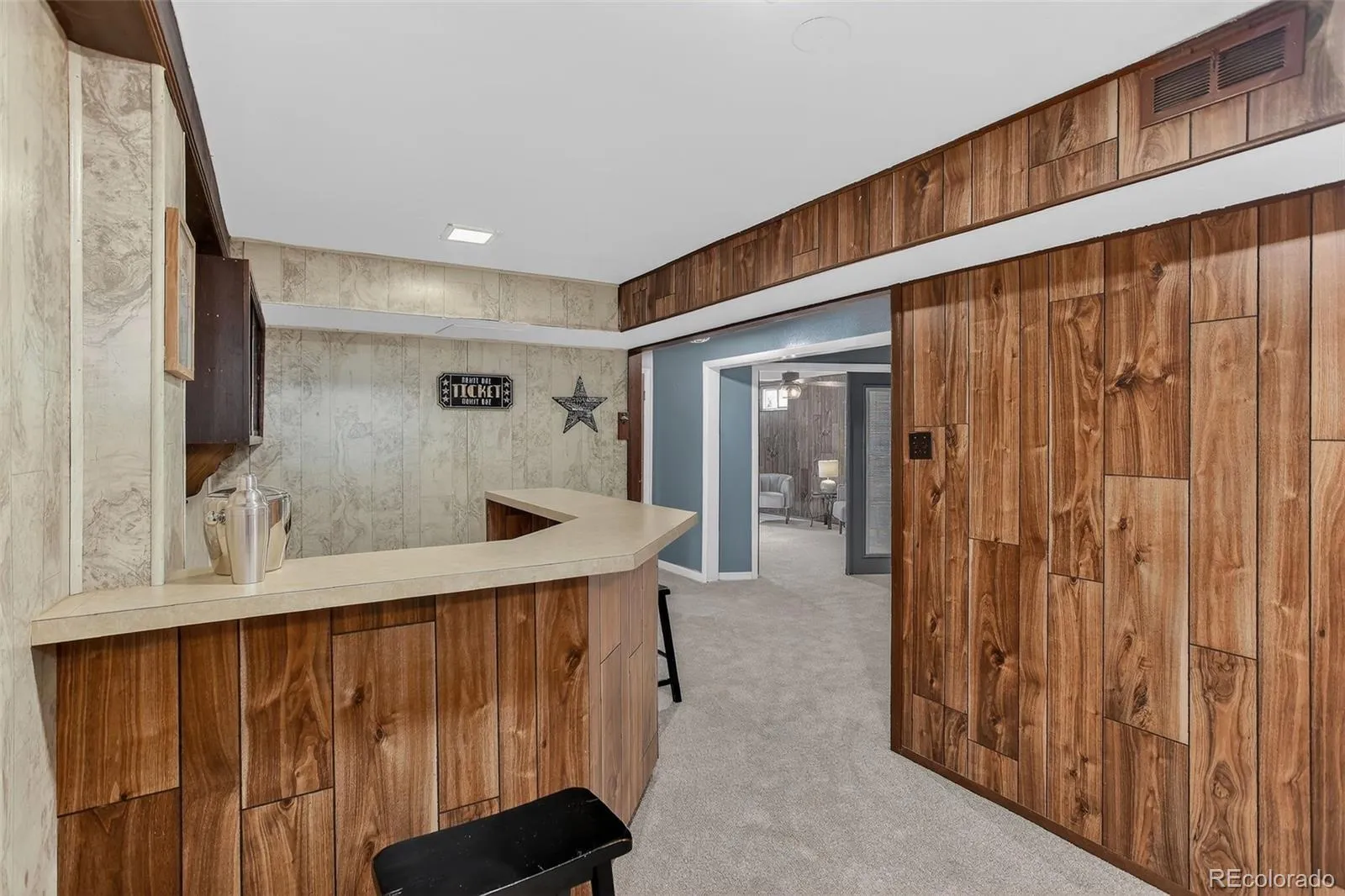 Welcome to this classic mid century brick ranch in South Westminster, offering a sharp and functional floorplan, mountain views, and thoughtful updates. This is a solid, well built home with flexibility, comfort, and long term potential in an established neighborhood with no HOA. The main level features a spacious living room with original wood floors and abundant natural light, ideal for everyday living and entertaining. The finished basement adds valuable living space with a large family room, bar area, cozy fireplace, and a nonconforming fourth bedroom with its own French door entry, perfect for guests, a home office, or additional living space. Ample storage includes a cedar closet and a generous laundry room with room for projects or hobbies.