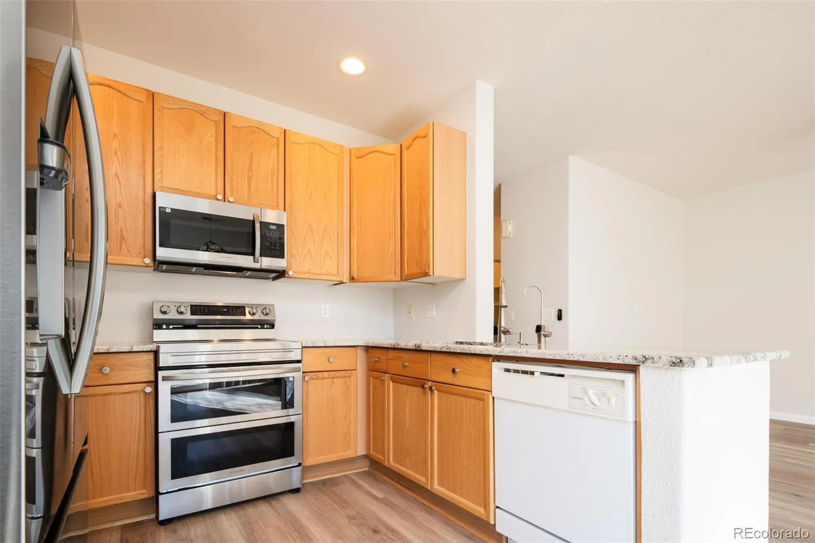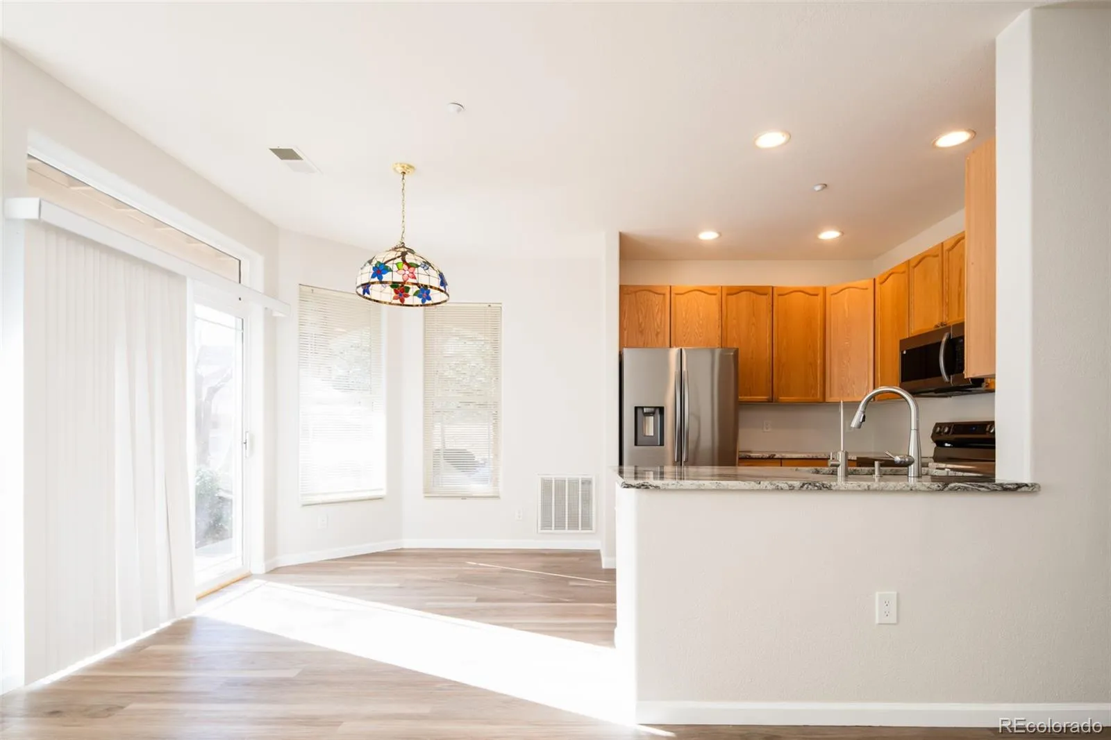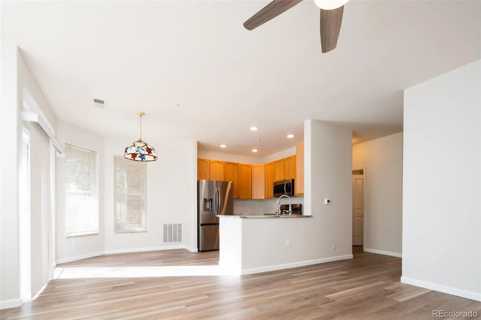 Welcome home to Redstone Ridge Condominiums in Southwest Littleton’s Ken Caryl Community. This beautifully updated, ground-floor 2-bed/2-bath is brimming with modern conveniences and ease. Bedrooms are draped in natural light and paired with custom built-ins in the adjoining closets. The primary boasts a ¾-ensuite bath with two sinks, large shower and linen closet, while the second ¾-bath is great for guests. Among the bedrooms is a well-appointed and spacious laundry room, as well as a desk with cabinets above for organizing life’s demands. The open floor plan features a living room with gas fireplace and cheerful dining area with exterior door to the covered patio for morning coffee and evening conversation during the summer months. Adjacent the dining room is a highly practical kitchen with stainless-steel appliances and plentiful cabinetry. The unit includes a dedicated single-car garage, off-street parking and community amenities, including pool, spa/hot tub, fitness center and clubhouse. Near C-470 for seamless travel into the Mile High City, The Foothills and beyond; this location is within close proximity to local retail, restaurants and everyday conveniences; plus, parks, open space and trails, the Chatfield Reservoir and Denver Botanic Gardens.