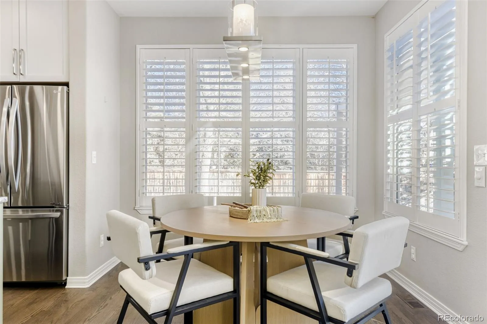 From the moment you step inside, this home feels welcoming and well-maintained. The heart of the home, a fully remodeled kitchen (2023), is both stylish and functional, flowing seamlessly into the main living areas and framed by elegant plantation shutters that elevate everyday living. Sunlight pours across refinished hardwood floors, fresh designer paint, and thoughtfully upgraded lighting that gives every space a warm, inviting glow.